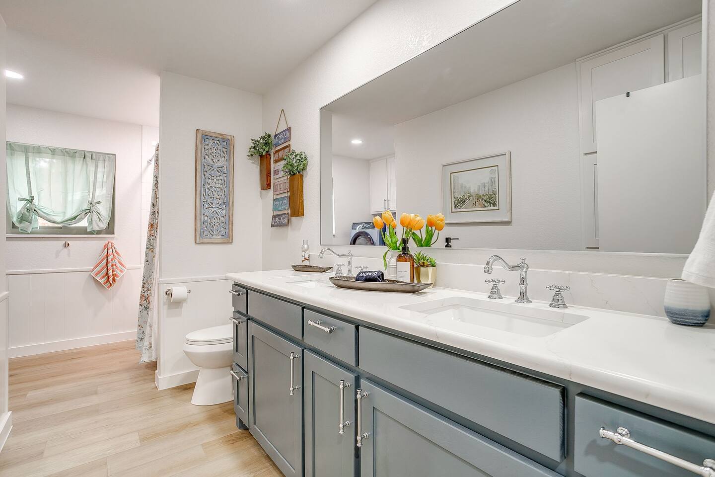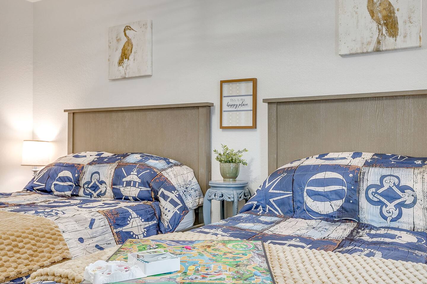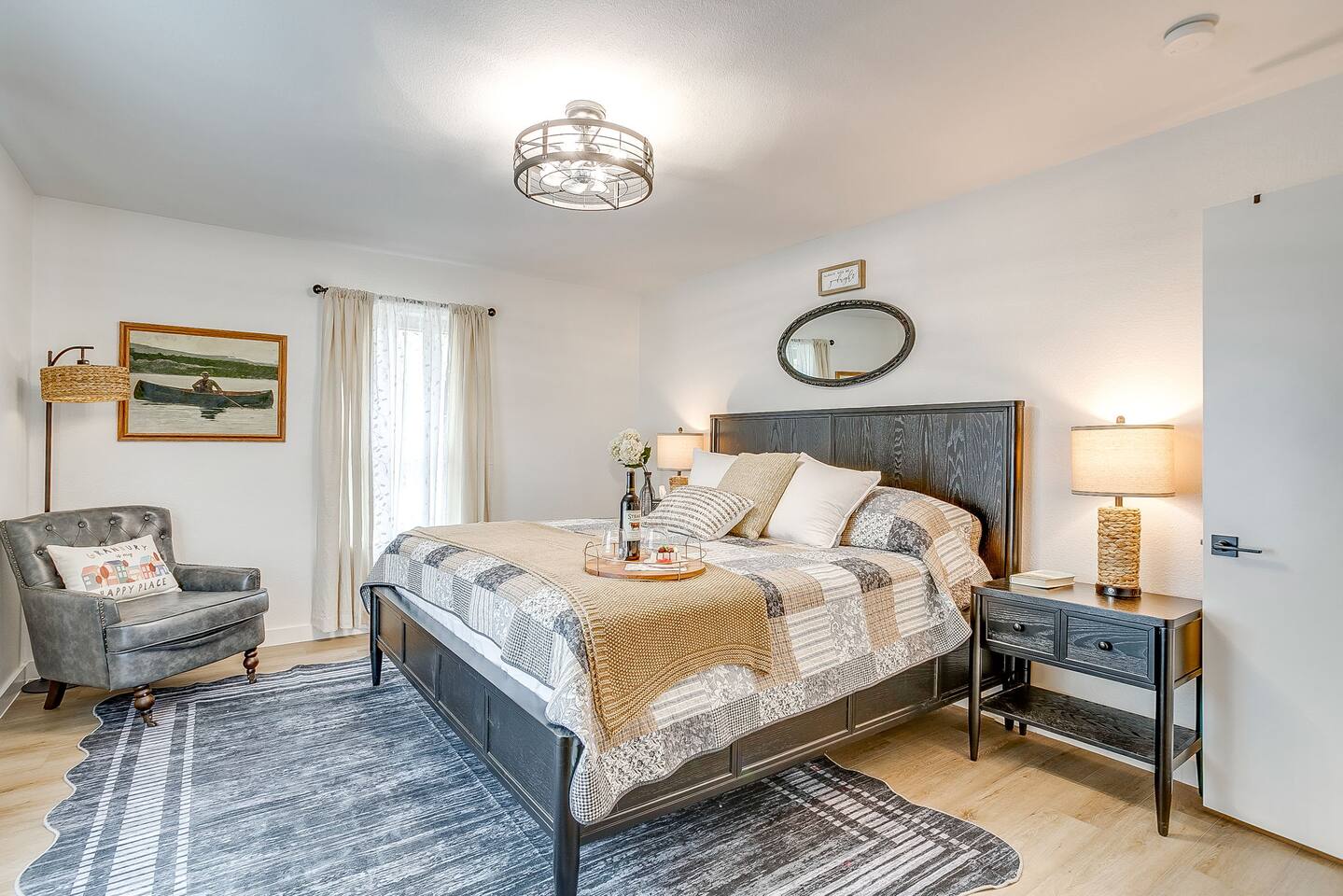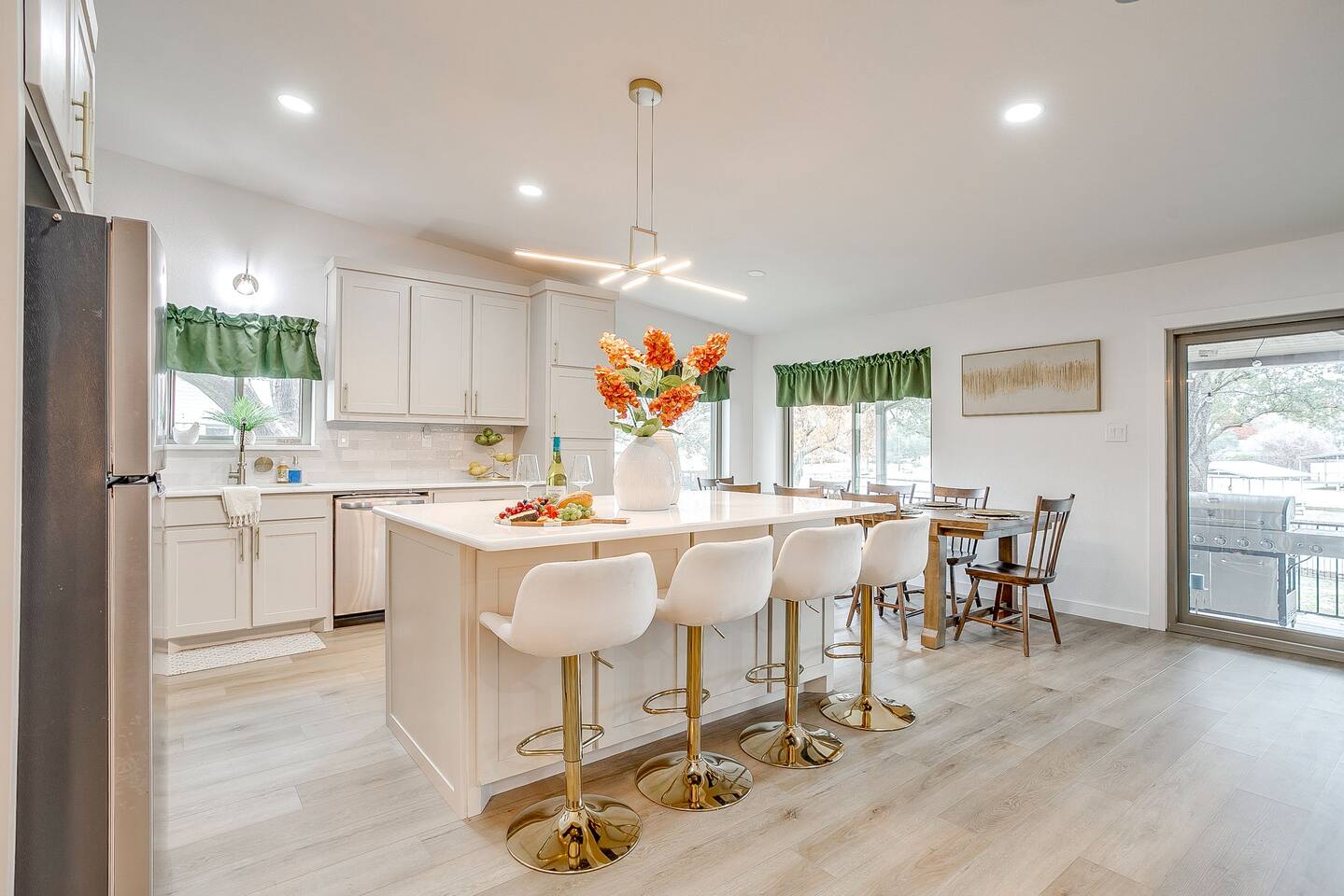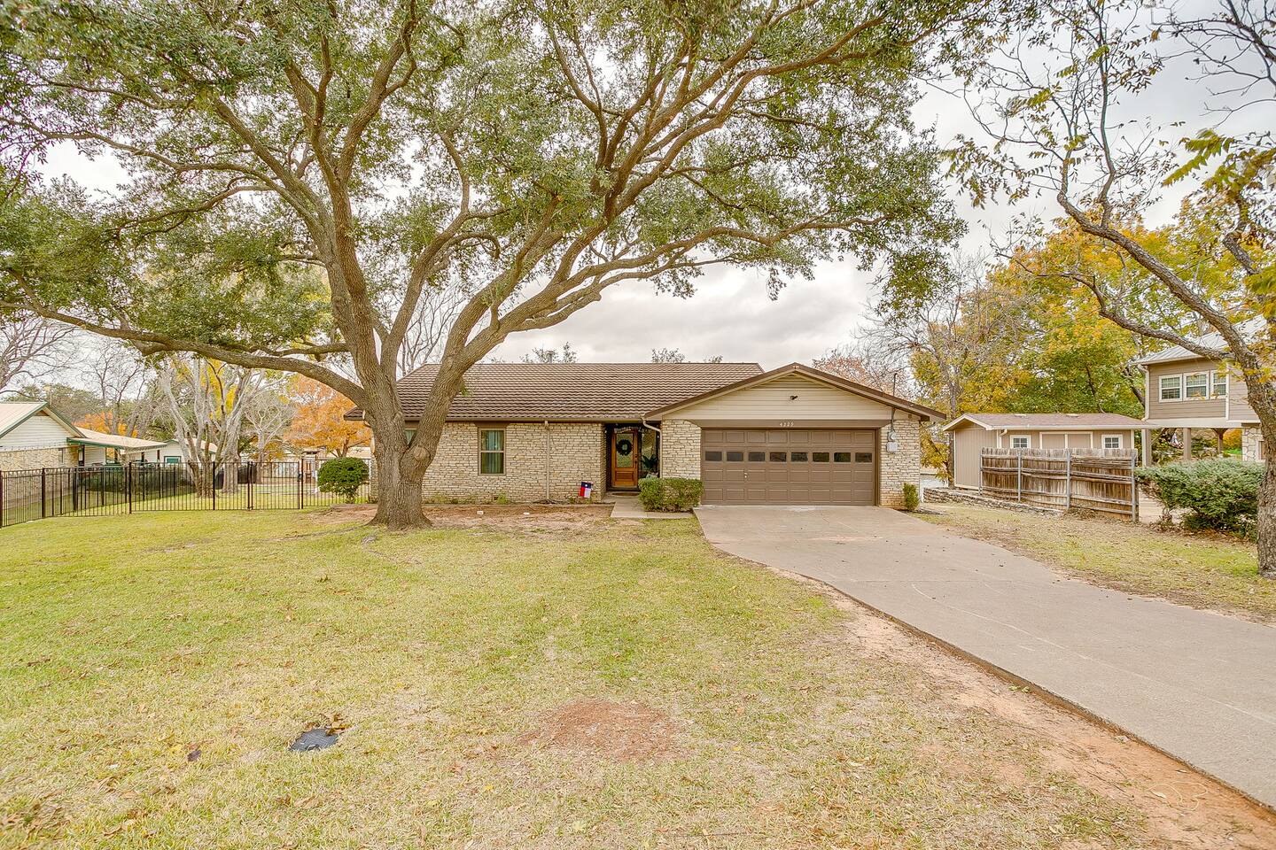 Welcome to Bay Shore Haven, a waterfront lake house located on a peaceful channel of Lake Granbury. This is one of the most desirable channel neighborhoods on the lake: quiet, scenic, and surrounded by beautiful, well-maintained homes. The setting is serene, private, and ideal for a relaxing lake getaway. Waterfront Setting: The calm channel offers gorgeous water views and easy lake access without the noise or traffic of open water. It’s perfect for boating, fishing, floating, or simply enjoying the peaceful surroundings. Guests are welcome to tie up their boat at the private dock. A nearby public boat ramp is available, with details shared after booking. Bedrooms & Bathrooms: - Primary Suite: King bed with ensuite bathroom - Bedroom 2: King bed - Bedroom 3: Two double beds (great for kids or additional guests) - Bedroom 4: King bed The home includes four bedrooms and two full bathrooms, offering a flexible layout for families, couples, or group stays. Living, Kitchen & Dining: The open living area provides plenty of seating for everyone to relax together. The recently remodeled kitchen is fully equipped with modern finishes and generous prep space. - Large island with seating for four - Dining table with seating for eight Game Room & Hot Tub: Downstairs, the fully converted game room features a pool table, recliners, and lounge seating. French doors open directly to the private hot tub, creating an ideal indoor-outdoor entertainment space. Outdoor Spaces: - Covered porch with seating and grill - Large fenced-style backyard with play structure - Fire pit table with seating - Private waterfront dock with seating Work-From-Anywhere: A dedicated workspace includes a desk, chair, monitor, and printer- perfect for remote work or longer stays. Why Guests Love Bay Shore Haven: - Waterfront on a calm channel of Lake Granbury - Quiet, upscale lake neighborhood - Hot tub + game room - Kid-friendly backyard - Spacious layout for groups Whether you’re boating, grilling, working remotely, or relaxing by the water, Bay Shore Haven offers a peaceful and comfortable Lake Granbury vacation home in a truly special setting.
