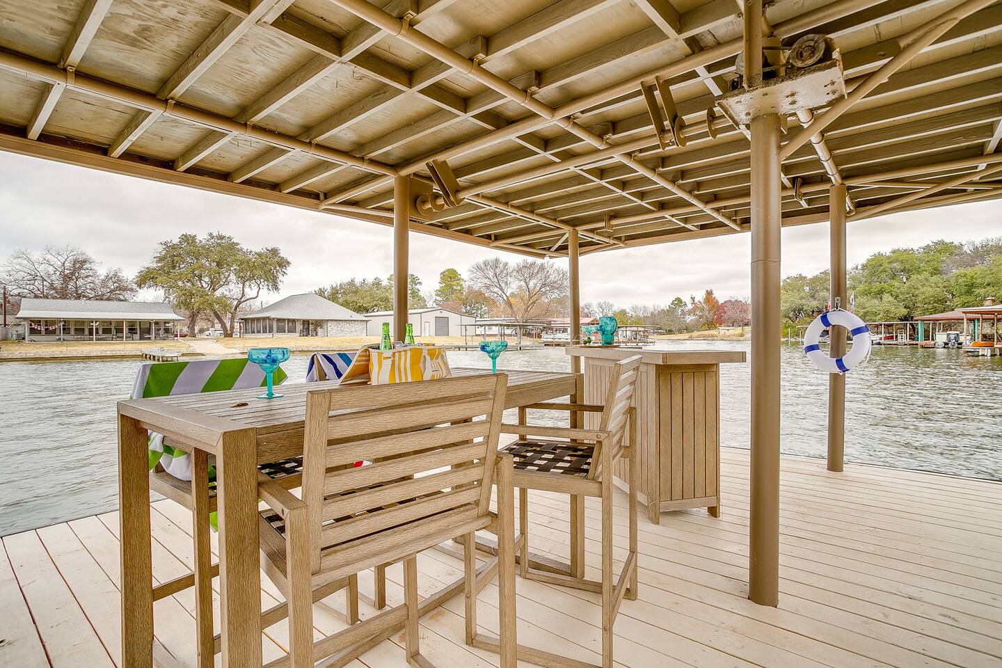 Welcome to Bay Shore Haven! An exceptional waterfront retreat on a serene channel of Lake Granbury. Unlike many channel homes, this neighborhood is truly special- peaceful, beautiful, and surrounded by well-kept lake houses. Enjoy a private boat dock, hot tub, game room, massive backyard, and multiple outdoor living spaces. Inside, you’ll find a fully remodeled kitchen, open living areas, and a dedicated workspace that's perfect for families, friends, and work-from-anywhere stays.