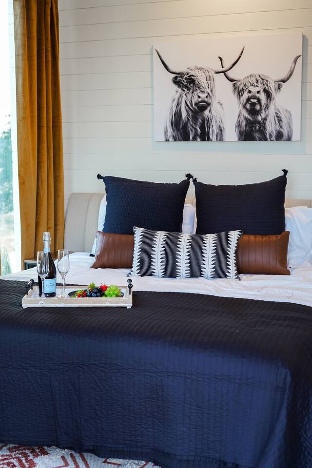 The drive into the property on Farm to Market Road 51, regardless of which side you coming from is a breathtaking drive! Surrounded by lush trees and peaceful farmlands, the beauty of the North Texas Rolling Hills does not disappoint! You will be staying at a family ranch on 34 acres outside of city limits.
