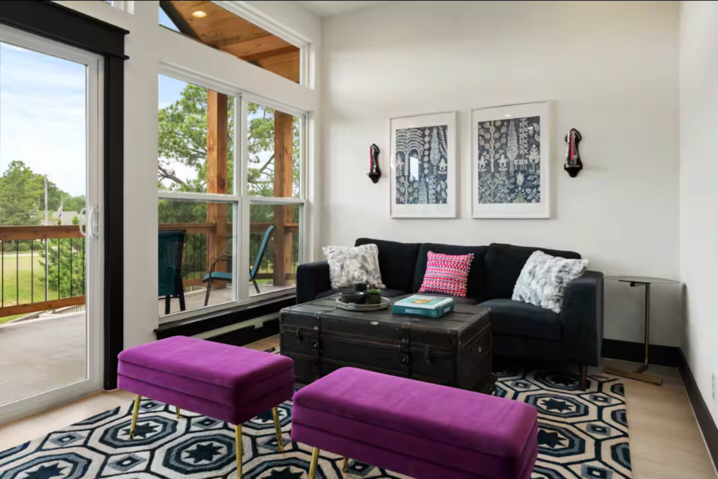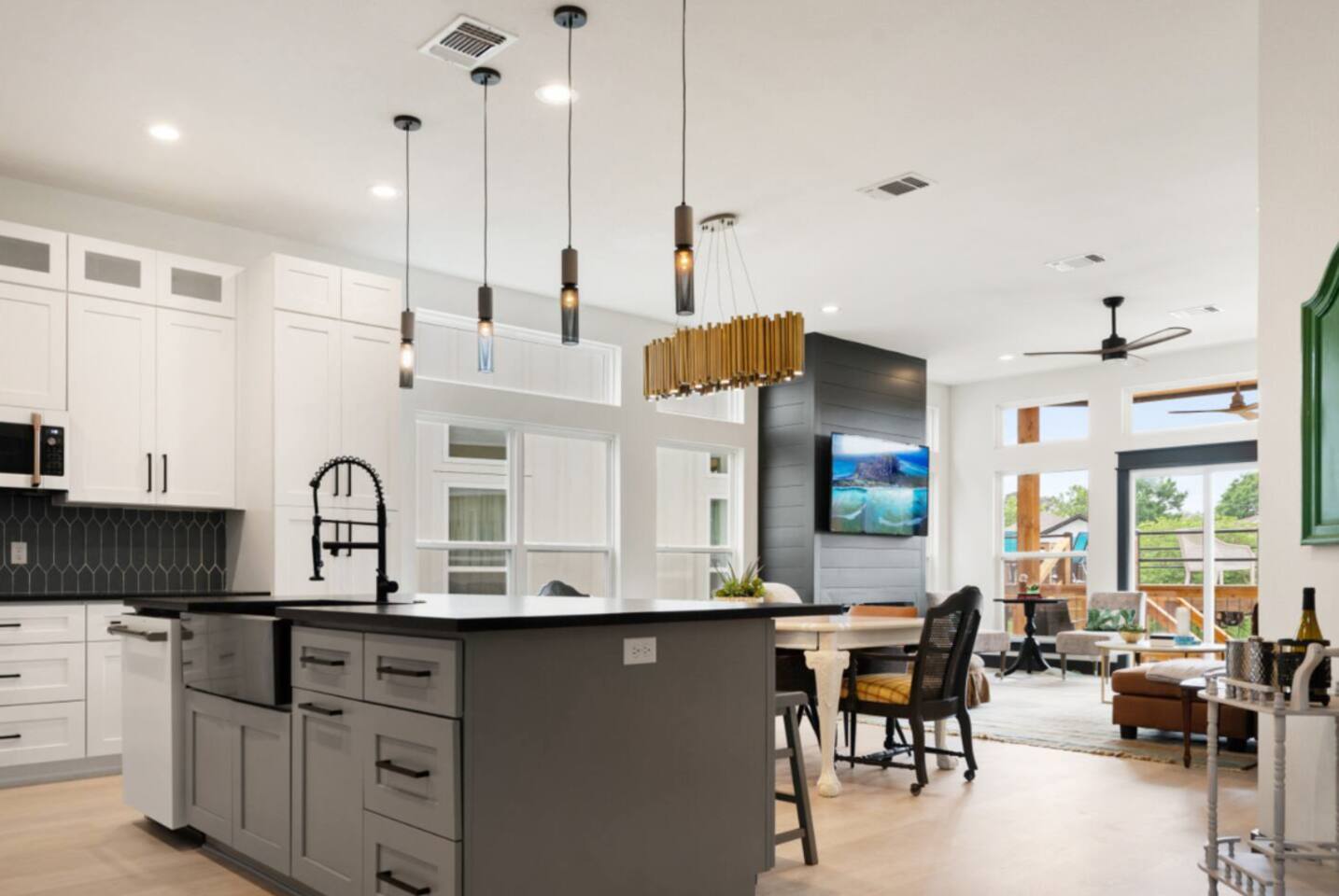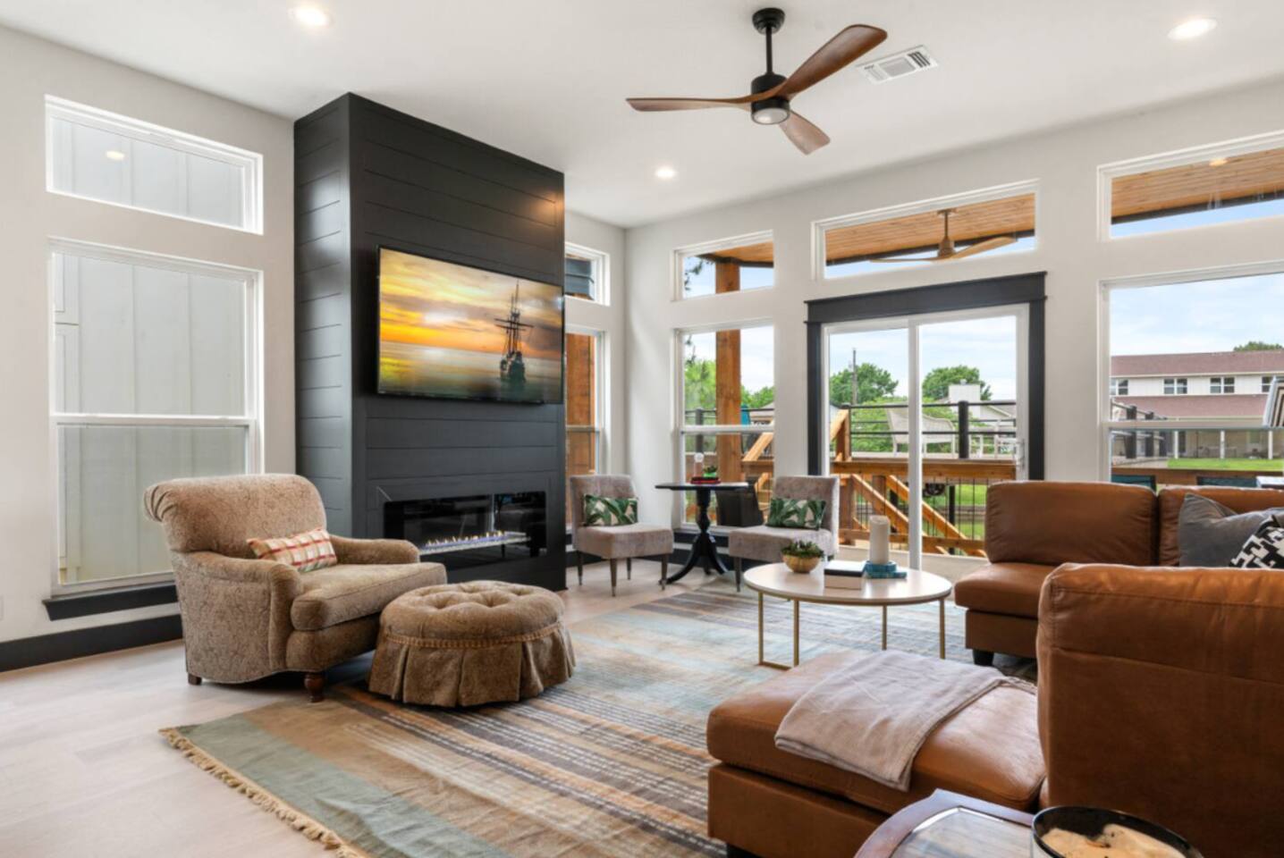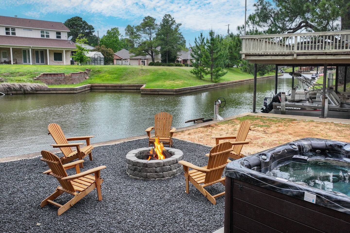 Welcome to Hilltop Retreat, a lakefront escape tucked along a peaceful channel off Cedar Creek Lake near Trinidad. Designed for groups who want both comfort and fun, this 6-bedroom, 6-private-bath home blends modern style with laid-back lake energy. THE BACKYARD EXPERIENCE This is where your stay comes to life. Step onto the spacious deck for grilling, sunset views, and evenings around the firepit. Soak in the hot tub while overlooking the calm channel waters, launch the paddleboard or kayak for a relaxed lake day, or gather with your crew for games and conversation outdoors. The setting feels private, peaceful, and made for memory-making. THE LIVING SPACES Inside, the main living room is bright and welcoming with large windows overlooking the water. Movie nights, morning coffee, or quiet reading all feel easy here. Upstairs, a separate game room offers additional seating, a Smart TV, table games, and space for everyone to spread out. Multiple gathering areas mean your group never feels crowded. THE KITCHEN The modern chef-ready kitchen is fully stocked with cooking essentials. Prep at the island, dine together at the table for eight, or take meals outside to the deck for lake-view dining. Whether it’s a big family breakfast or late-night snacks, the space is designed to handle it. THE BEDROOMS & BATHS Six spacious bedrooms each feature their own private en-suite bathroom- no hallway sharing. King and queen suites include Roku Smart TVs, and soft linens ensure restful nights after full lake days. There’s even a fun bunk space for added flexibility. AMENITIES • 6 private full bathrooms + 2 half baths • Hot tub • Firepit • Paddleboard + inflatable kayak • Upstairs game room • Five Smart TVs • High-speed Wi-Fi • Washer & dryer • Central heat & air • Self check-in • Parking for 4 vehicles (garage + driveway; no street parking) LOCATION Located near Trinidad on Cedar Creek Reservoir, you’re minutes from boating, fishing, dining, and scenic outdoor spots- while still enjoying the calm of a quiet waterfront channel.