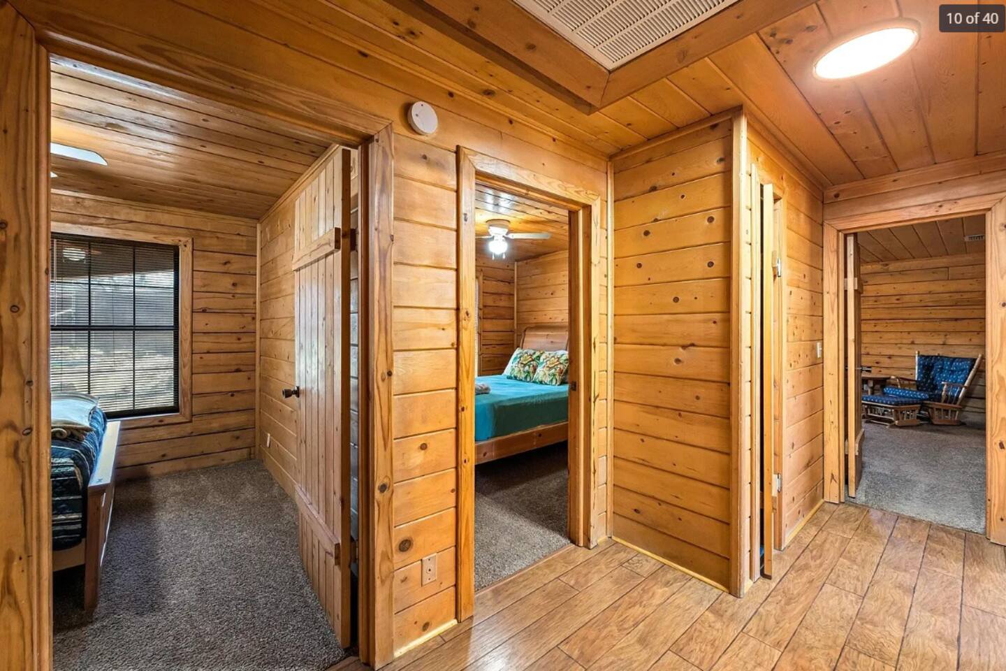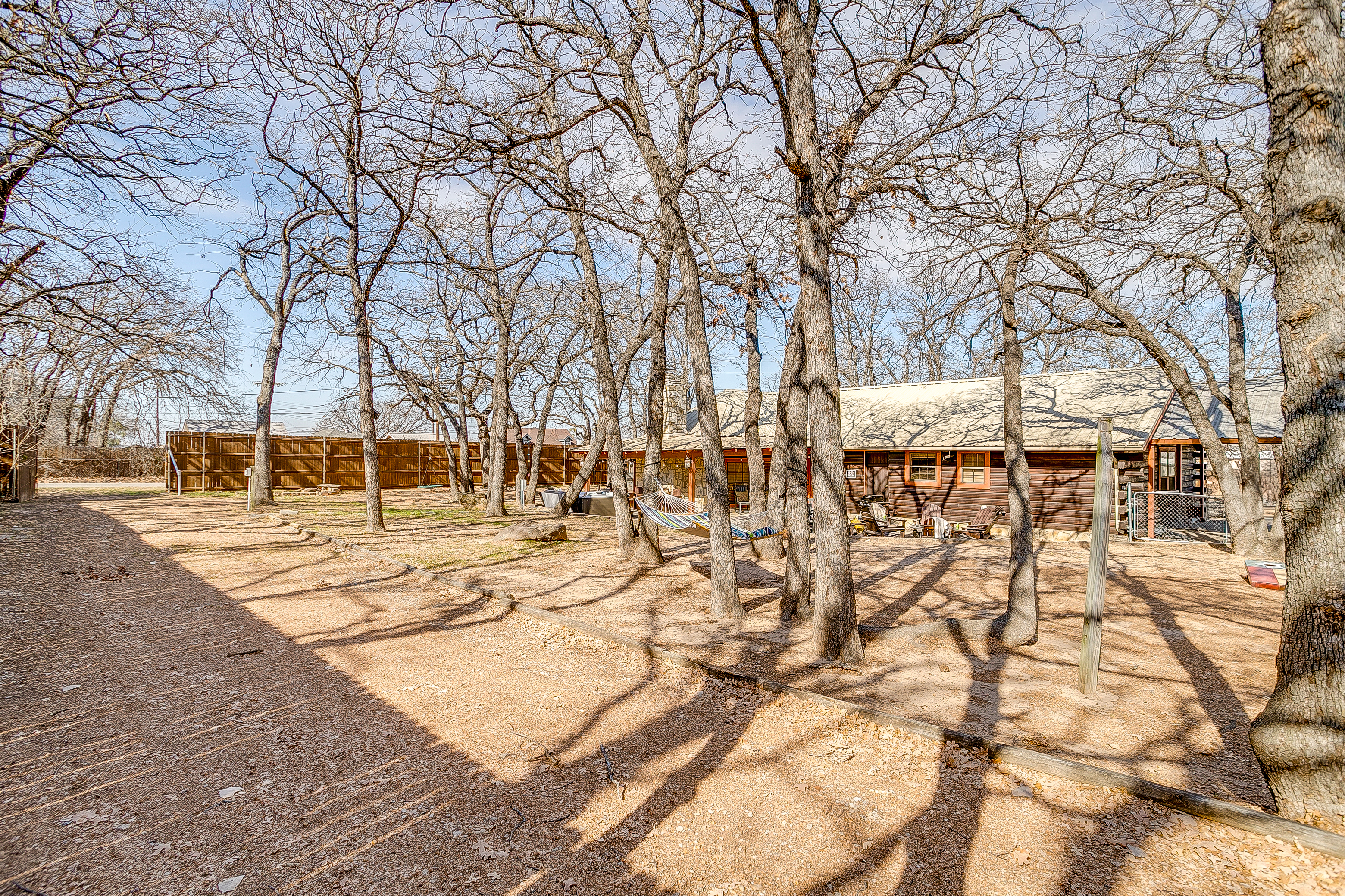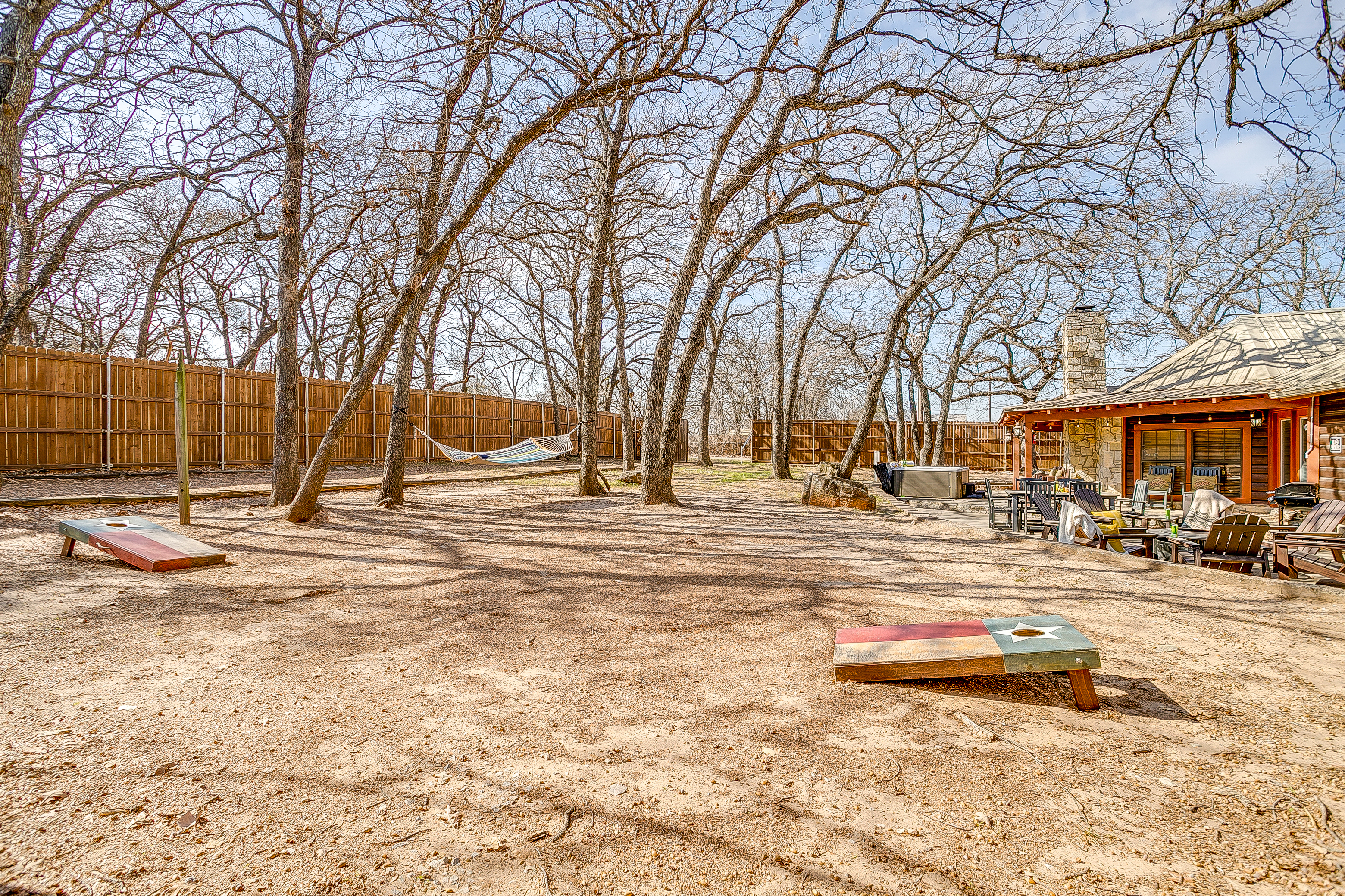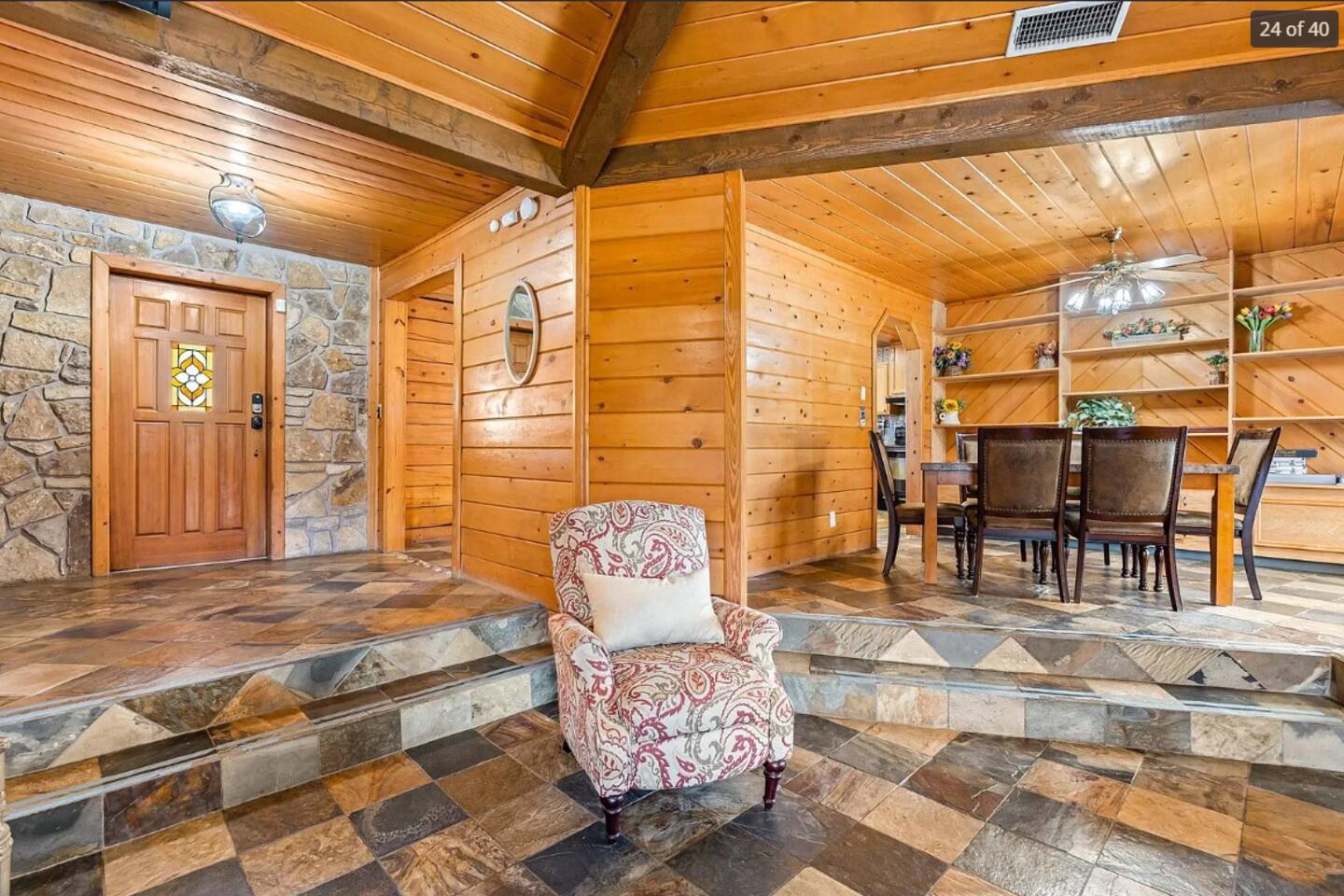 Escape to Double D Lodge, a cozy log cabin just minutes from Granbury Square. Relax under shady oaks, unwind on the porch swing, or enjoy the game room with ping-pong and air hockey. With four queen bedrooms, two dining areas, a large backyard with a hot tub, and pet-friendly charm, this peaceful home blends rustic comfort with family fun near shops, parks, and local dining.