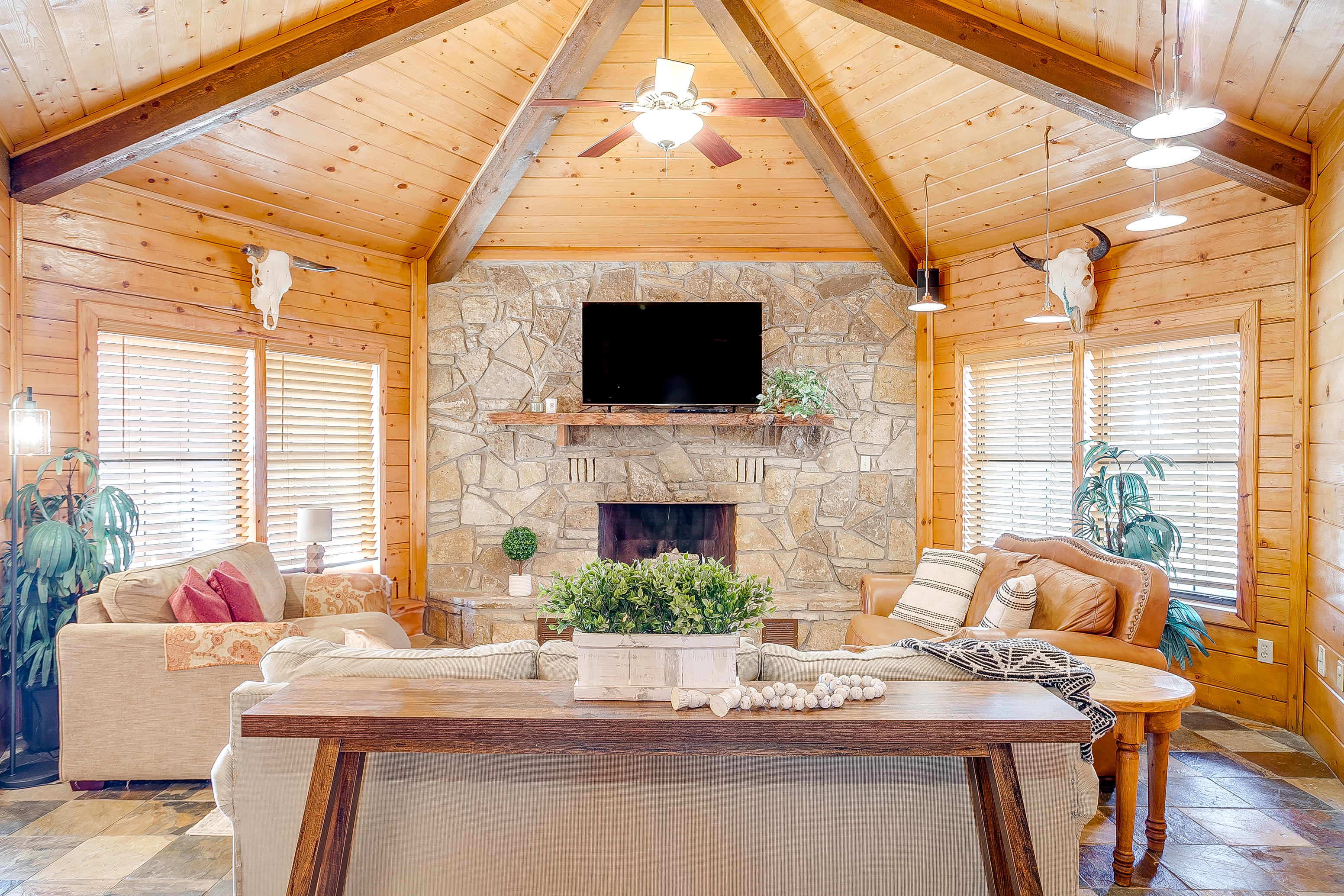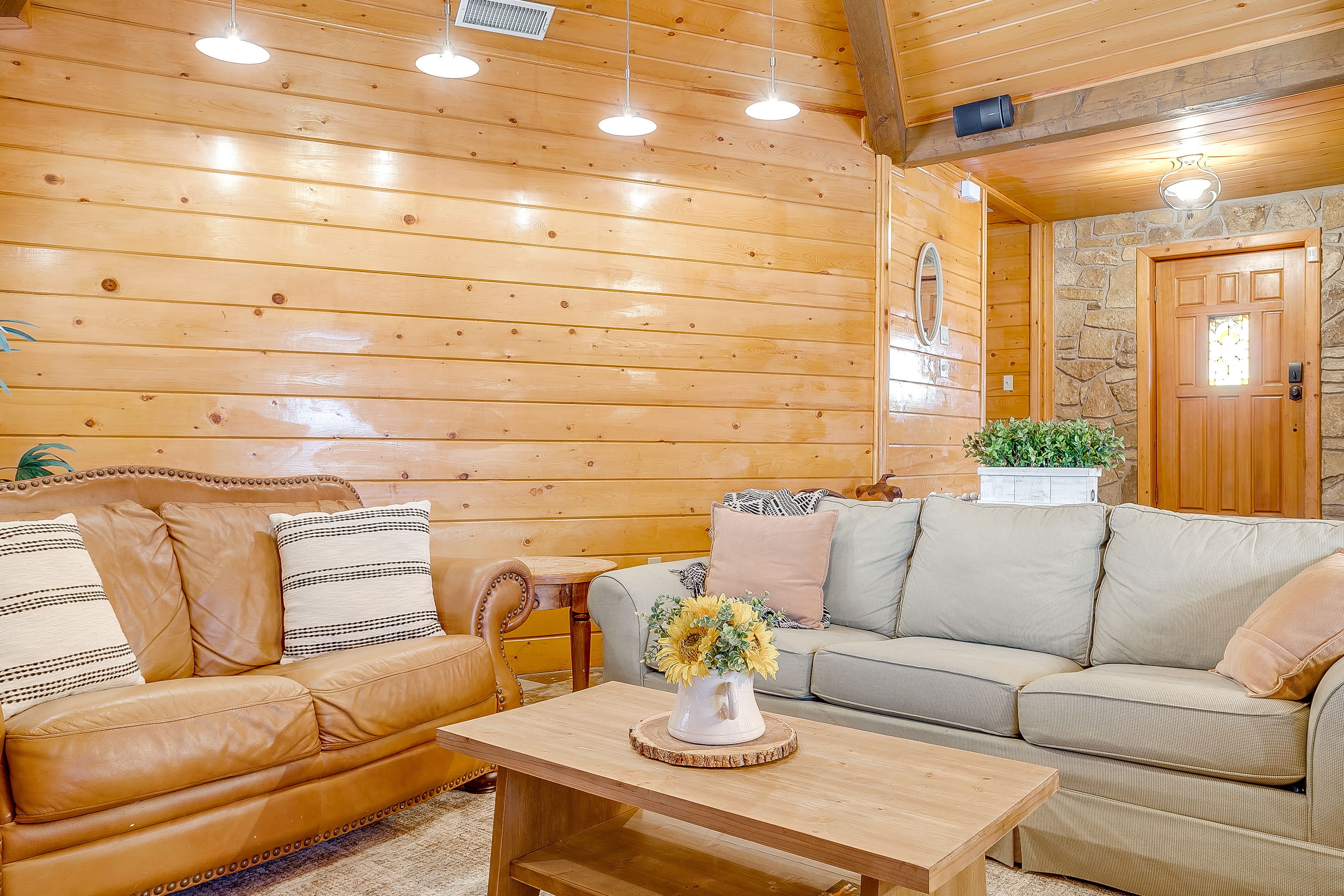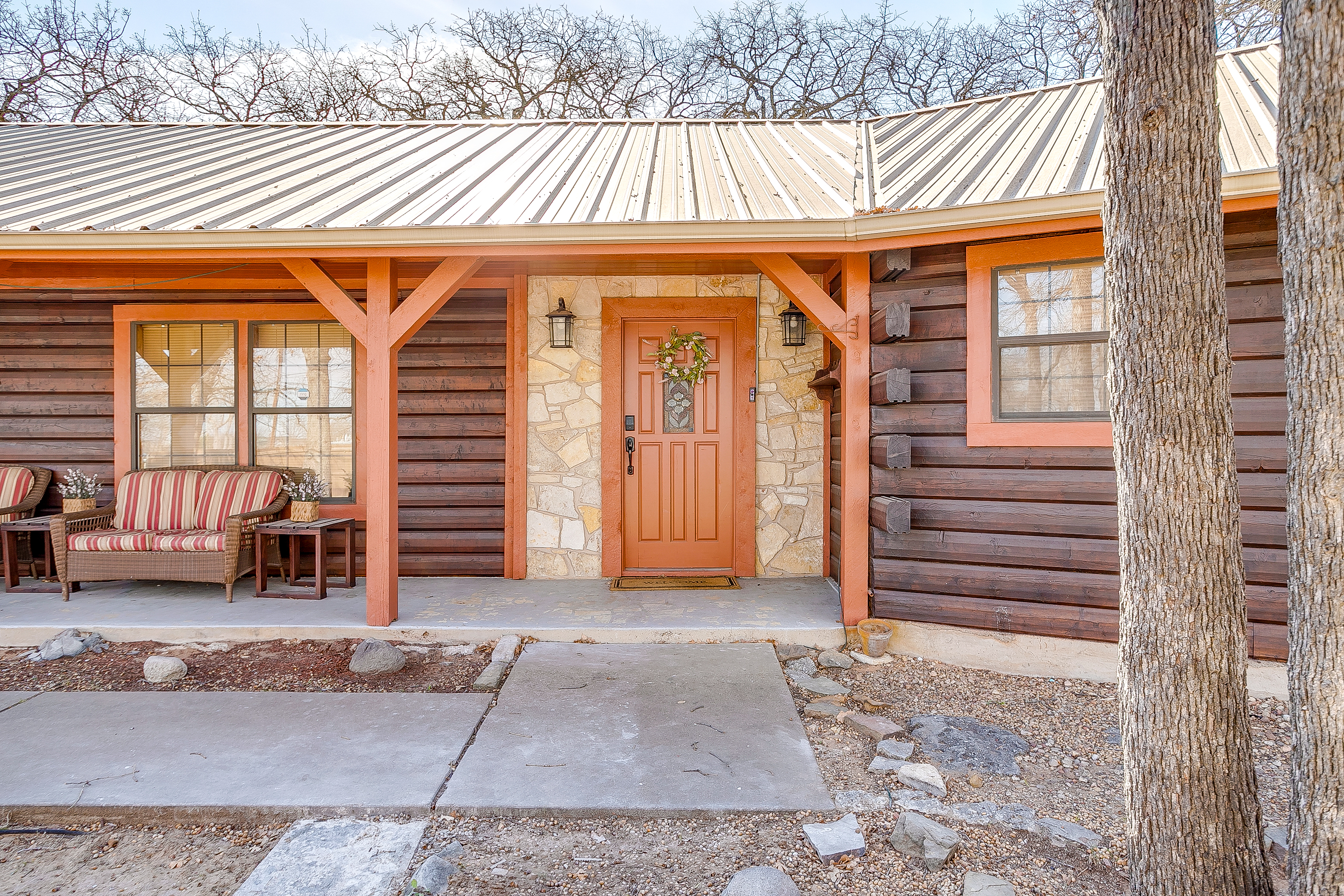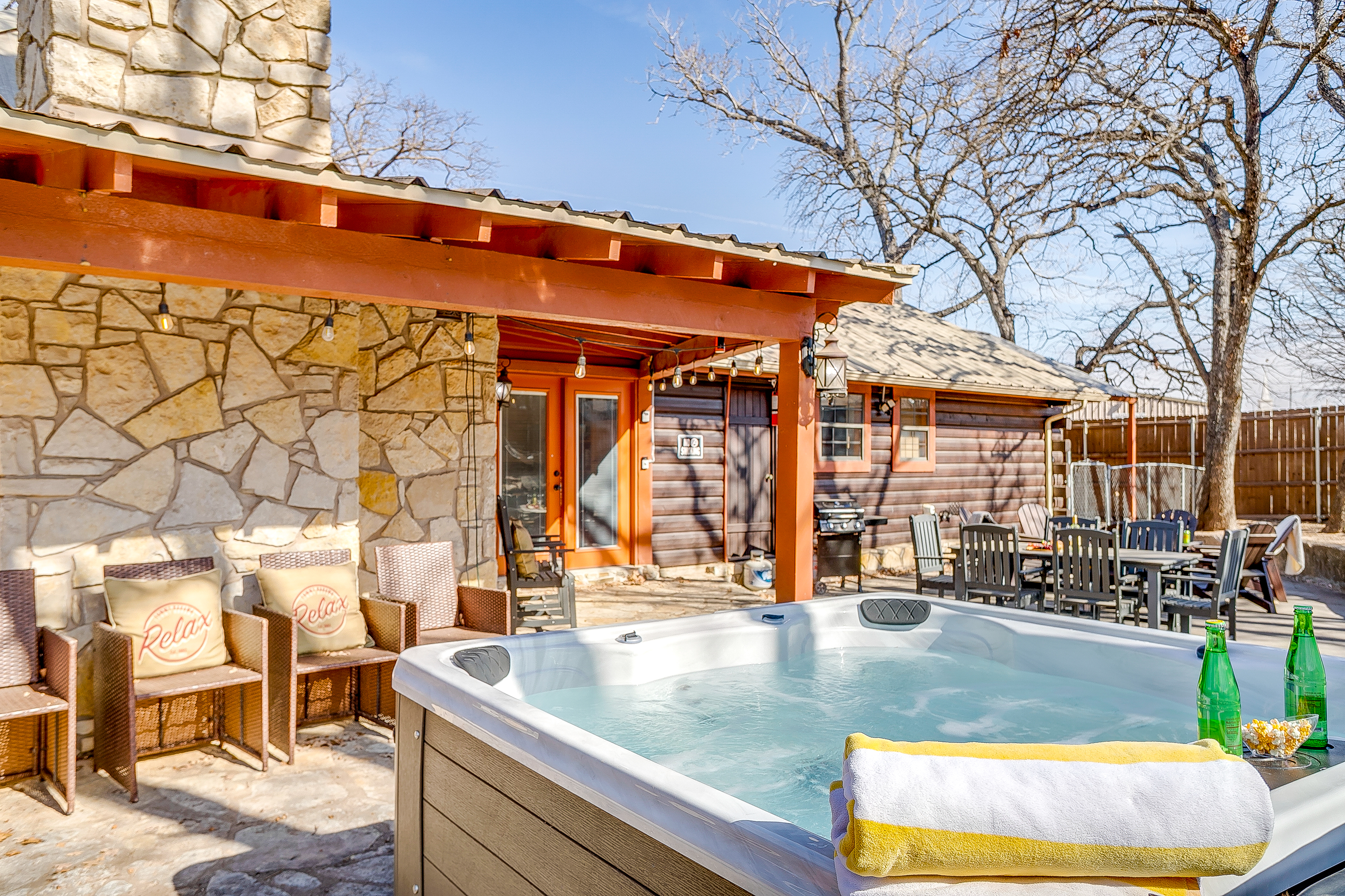 Escape to Double D Lodge, a cozy log cabin just minutes from Granbury Square. Relax under shady oaks, unwind on the porch swing, or enjoy the game room with ping-pong and air hockey. With four queen bedrooms, two dining areas, a large backyard with a hot tub, and pet-friendly charm, this peaceful home blends rustic comfort with family fun near shops, parks, and local dining.
