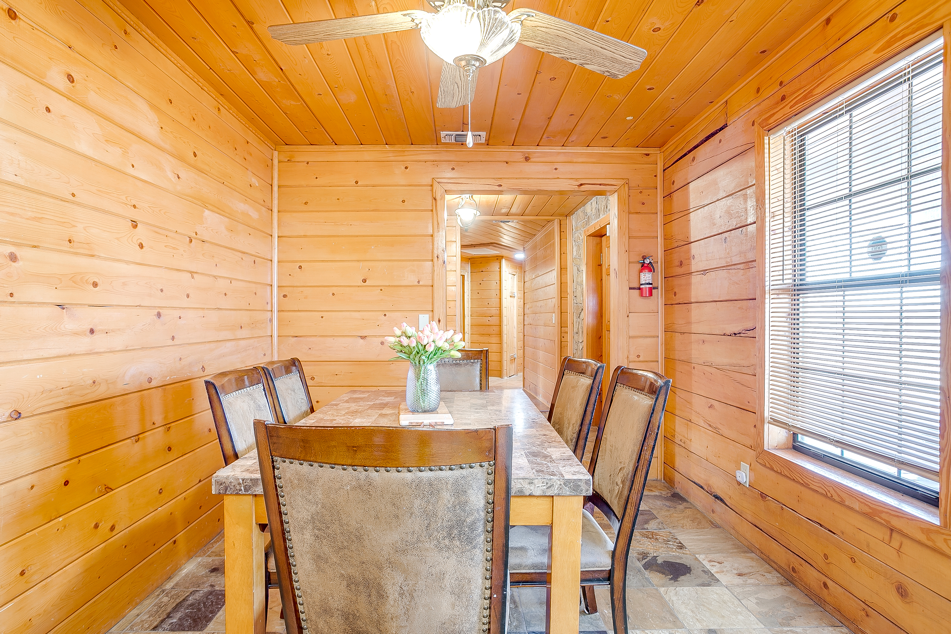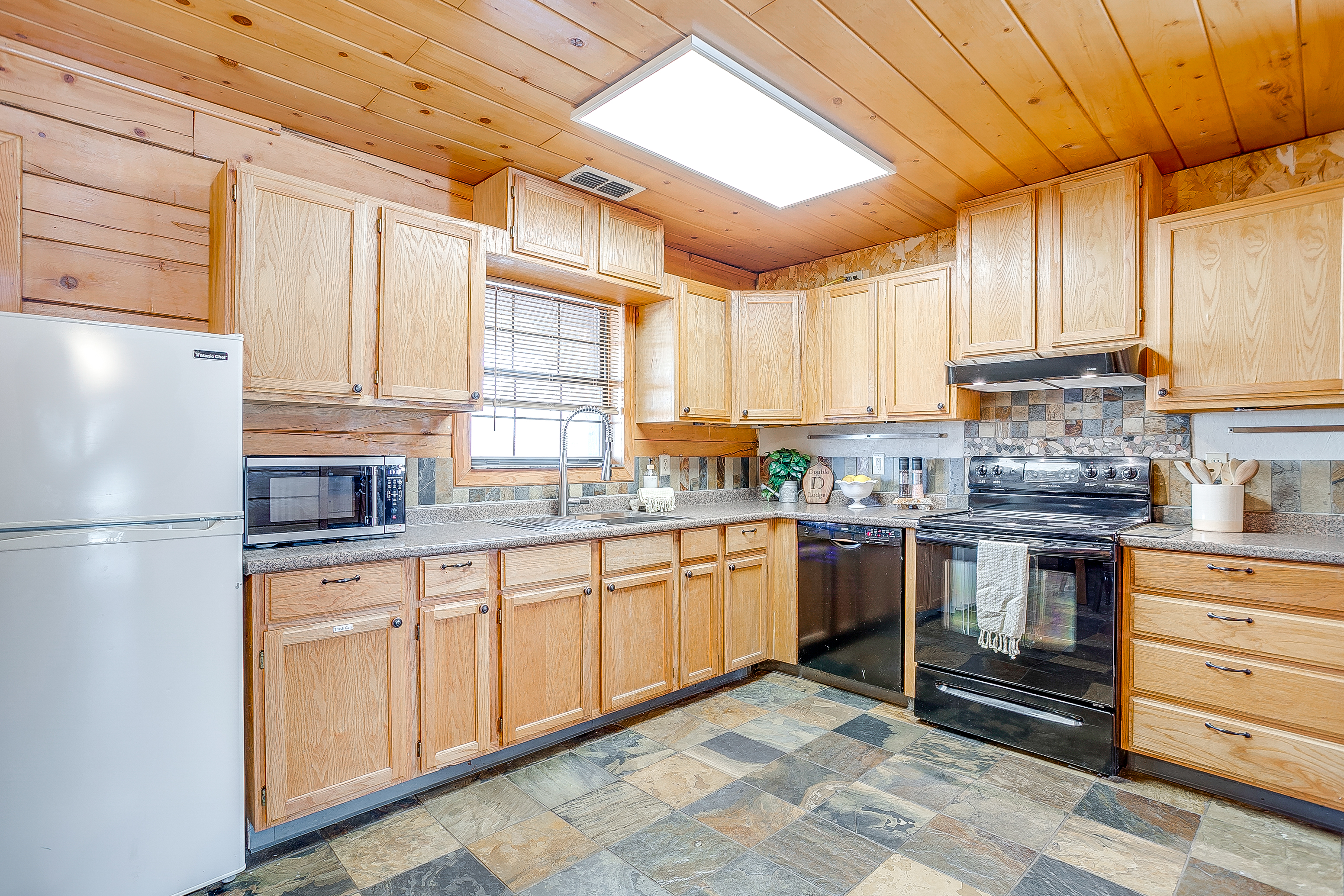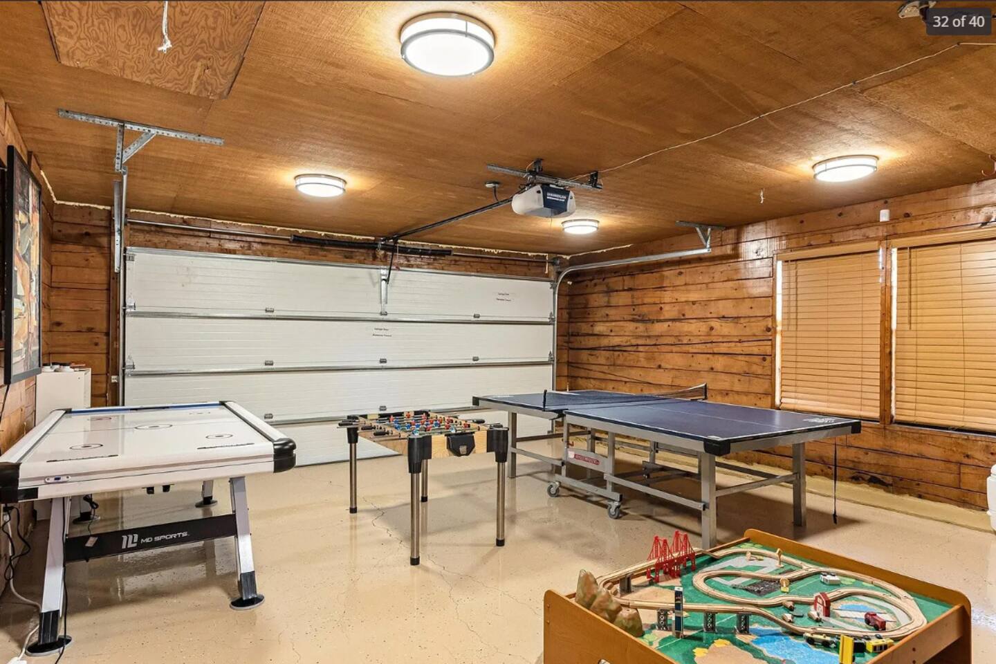 Welcome to Double D Lodge, a warm and inviting log cabin retreat nestled beneath tall shade trees in a quiet Granbury neighborhood just minutes from the Historic Square. This home is perfect for families and small groups who want to relax, play, and reconnect in a peaceful, cozy setting. When you arrive, you’ll find a spacious front yard with a charming porch and seating area, perfect for morning coffee. The driveway accommodates up to four vehicles, plus a carport for one large vehicle. Inside, the living room features comfortable seating for eight, two sofas, a chair, and a large smart TV for movie nights. (The fireplace is decorative only and not for guest use.) To the left of the entryway, a dining area offers open shelving, family games, and a table for shared meals. A second dining nook off the kitchen provides seating for four. The kitchen is fully equipped with everything you need for your stay, including full-size appliances, cookware, utensils, and dinnerware. There’s also a smaller refrigerator in the kitchen and an additional full-size refrigerator in the adjoining laundry area for extra storage. Enjoy a morning cup at the dedicated coffee bar, featuring a Keurig, drip coffee maker, and complimentary K-Cups, creamers, and sugars. Guests also have access to a full washer and dryer with starter laundry supplies provided. Off the laundry room, the converted garage serves as a spacious game room with epoxy floors, a full-size ping-pong table, air hockey table, a train table for children, and oscillating fans for comfort. All four bedrooms feature queen beds, nightstands, and full-size closets. The primary suite includes a TV, ample closet space, and an ensuite bathroom with a tub, shower, and vanity. The remaining bedrooms are comfortably furnished with cozy linens and simple, welcoming decor. Step outside to the large backyard shaded by mature trees. The covered porch features a swing, Weber propane grill, fire pit table, hammock, and plenty of seating. Cornhole boards are also available for outdoor fun. This home is pet-friendly for one well-behaved dog with a $125 pet fee. Please include your dog in your reservation so the fee is applied automatically. Unauthorized pets will incur a $250 fee. Additional dogs may be approved upon request. Double D Lodge is just five minutes from Granbury Square, where you’ll find local restaurants, boutiques, and family-friendly attractions. Be sure to stop by nearby favorites Frog Juice and Vampyre Penguin for a sweet treat. Whether you’re relaxing on the porch, laughing around the fire pit, or enjoying a game night inside, Double D Lodge offers a cozy retreat with all the comforts of home.