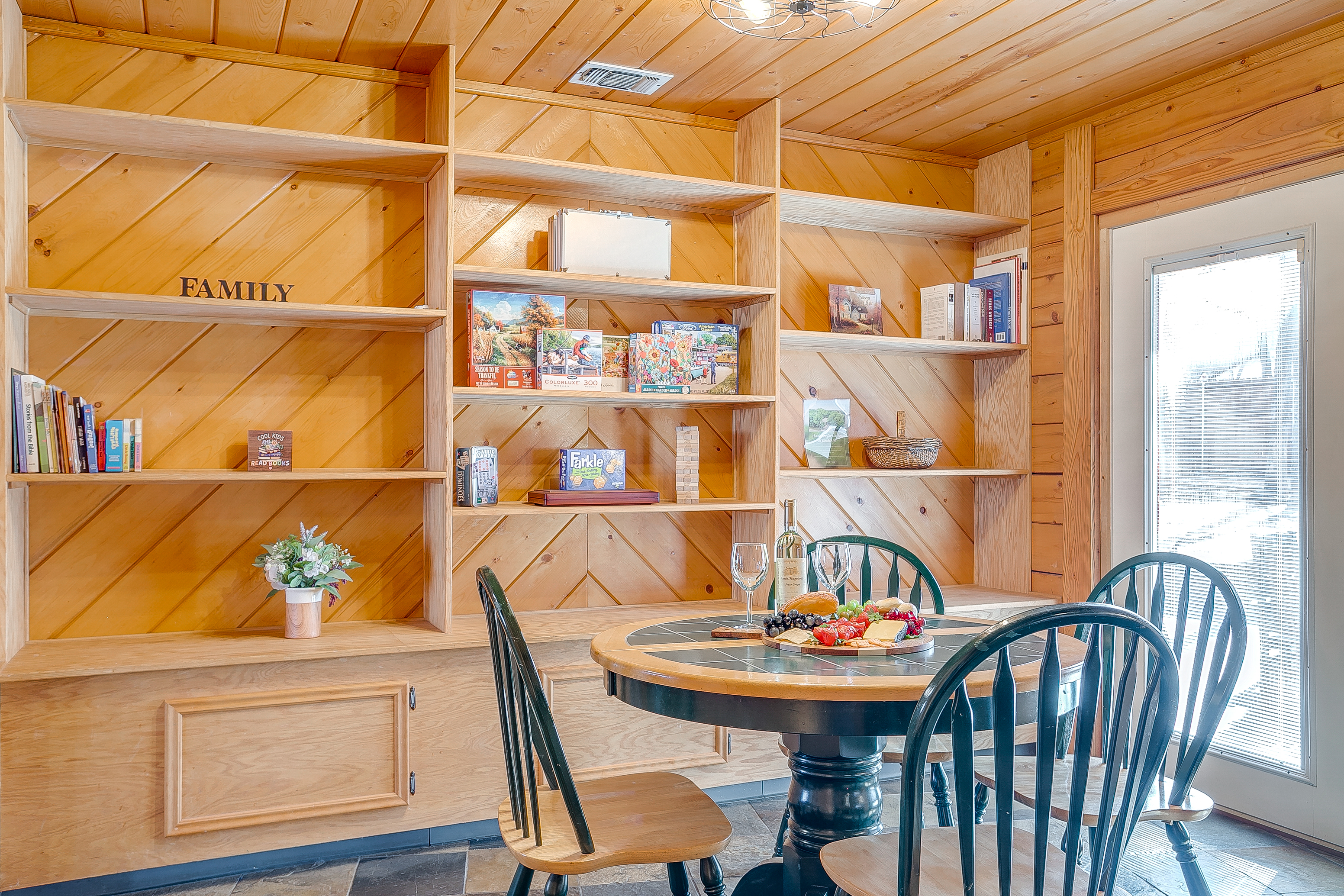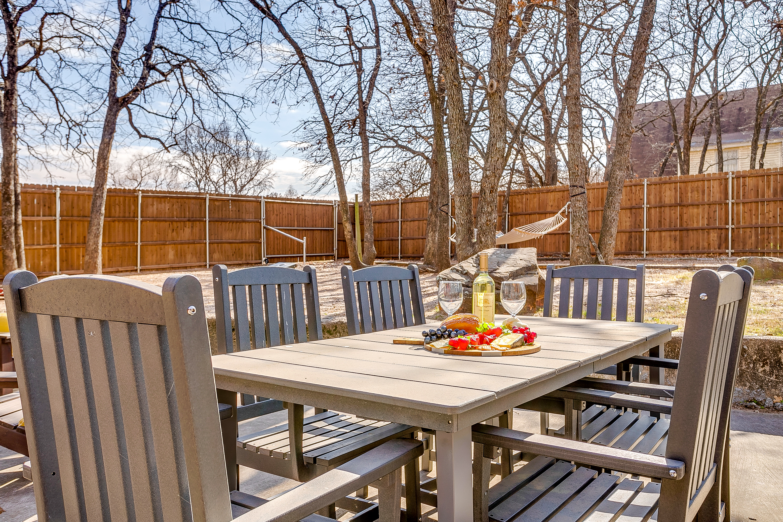 The home is located in the peaceful Western Hills Harbor neighborhood, just minutes from Granbury’s Historic Square. Guests can enjoy access to a community boat ramp on Lake Granbury, perfect for fishing or launching a kayak, along with a neighborhood pool and playground. The area is quiet and shaded with mature trees, offering a relaxing retreat close to shops, restaurants, and local attractions.