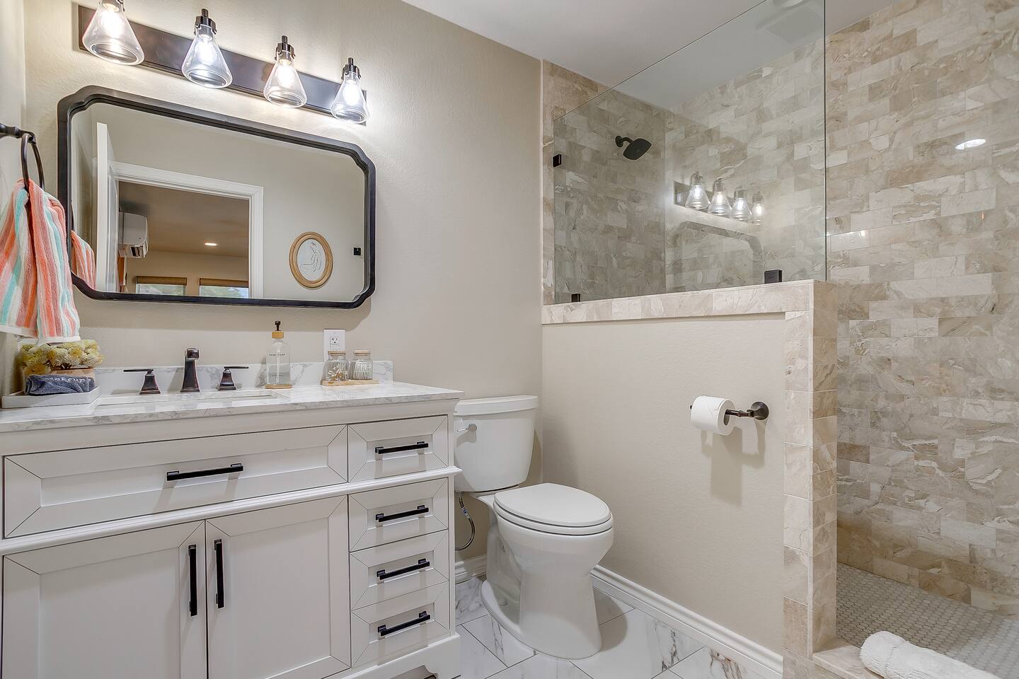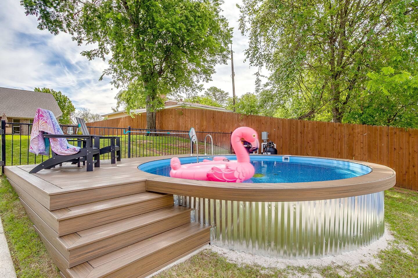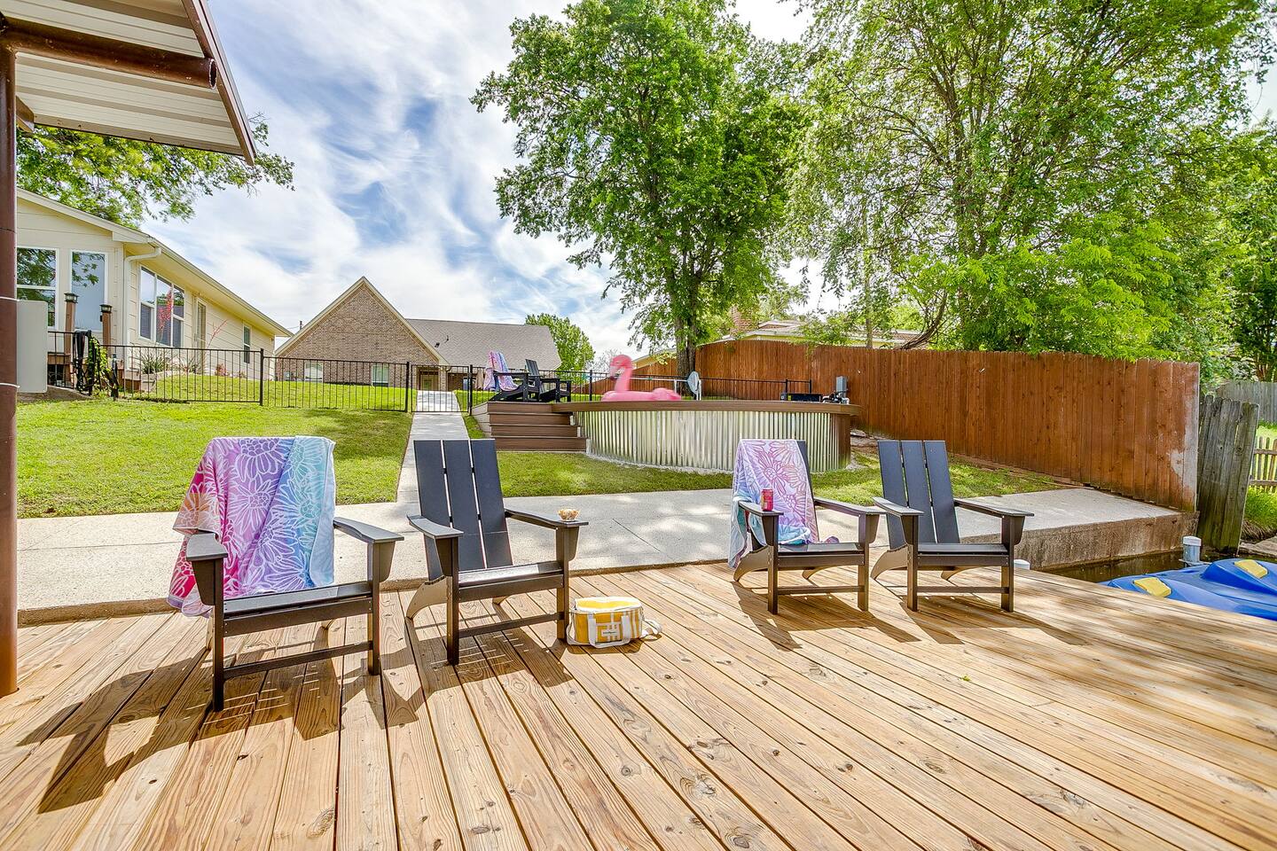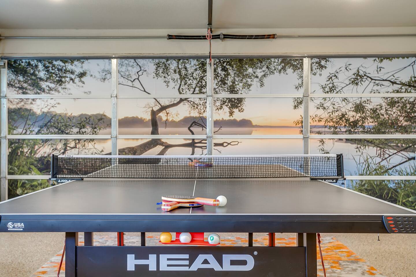 Welcome to Flip-Flop Cove – A Relaxing Canal-Side Getaway on Lake Granbury Flip-Flop Cove is a comfortable and beautifully updated retreat with a main house and guest house, perfect for family trips, couples’ weekends, or peaceful lake escapes. Located on a quiet canal just off Lake Granbury, the home offers the perfect mix of indoor comfort and outdoor enjoyment. Sleeping Arrangements Main House - Primary Bedroom: King bed, Queen Murphy bed, ensuite spa-style shower, walk-in closet, and 55" Smart TV - Second Bedroom: King bed, 55" Smart TV, walk-in closet, and access to a shared bathroom with Jacuzzi tub and shower Guest House - Third Bedroom: Queen bed, full private bathroom, walk-in closet, 55" Smart TV, and private workstation Living & Lounge Spaces - Spacious living room with a 75" Smart TV, Bluetooth soundbar, cozy seating, and a dedicated workstation with printer - Fully stocked kitchen with island seating, standard coffee maker and single-cup brewer, and all the tools you need to cook meals at home - Dining area with seating for your group to gather and enjoy meals together Outdoor Features - Located on a calm canal with private dock access—great for fishing, relaxing, or tying up a boat - Lakeside fire pit for evening conversations under the stars - Private hot tub overlooking the water, perfect for unwinding after a day on the lake - Patio with outdoor dining, a griddle, and a comfortable seating area Technology and Connectivity - High-speed Wi-Fi available throughout the property - Smart TVs in every room with streaming and casting capabilities Nature and Wildlife The backyard offers beautiful views and regular visits from ducks, turtles, fish, and other wildlife. Please observe them from a distance and avoid feeding them. Coffee and Kitchen Essentials The coffee bar includes complimentary pods, grounds, creamer, and tea. The kitchen is fully stocked with cookware, dinnerware, utensils, and more so you can feel right at home. For entertainment We’ve included an air hockey table, ping pong table, plus outdoor favorites like giant Jenga, giant Connect Four, and Cornhole boards — perfect for family fun and group gatherings!