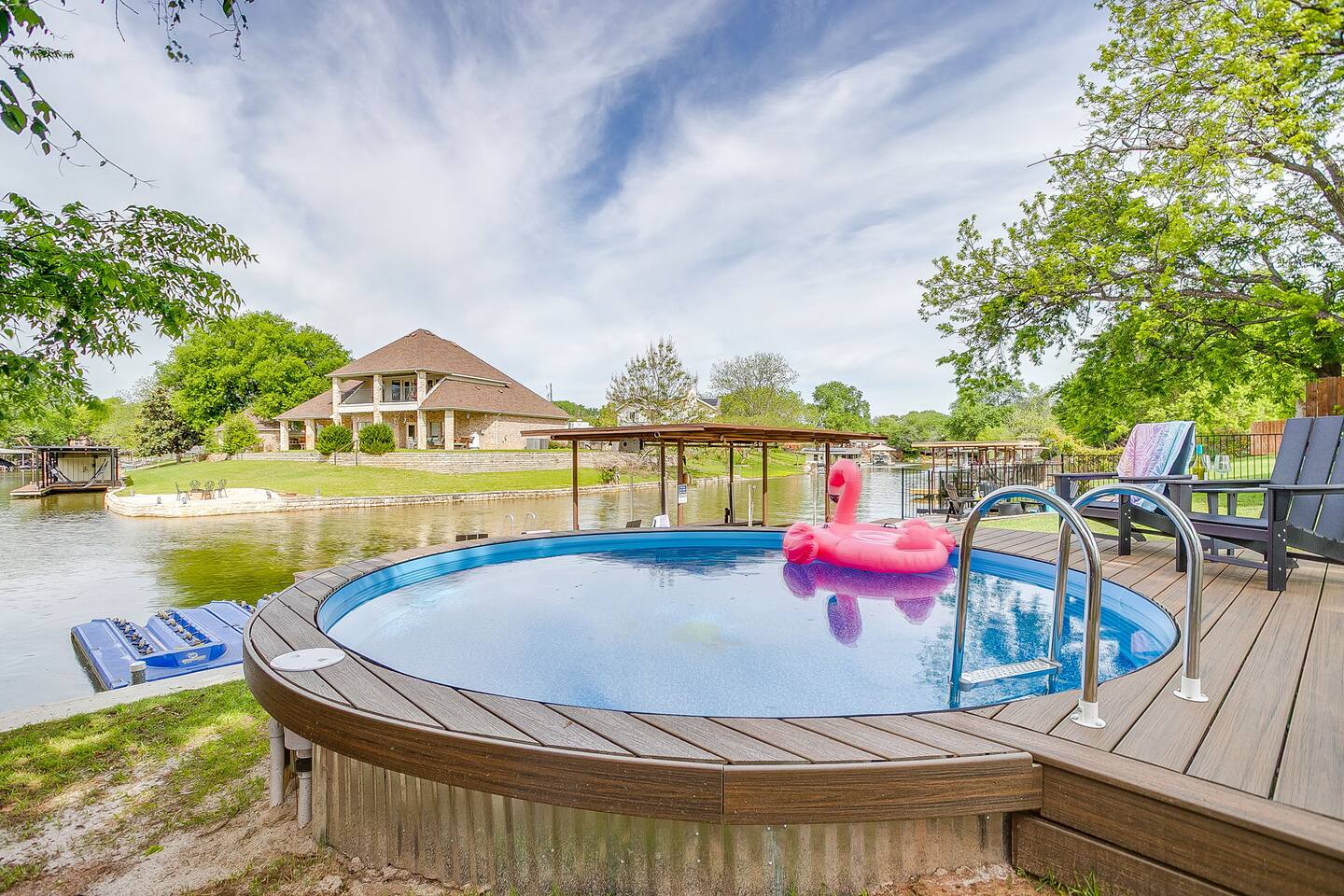 Discover your ideal lakeside escape in Granbury, TX. Nestled on a peaceful canal just off the main lake, this 3BR/3BA home with a private hot tub offers the perfect setting for a relaxing getaway with loved ones. Enjoy direct lake access from the private boat dock—great for fishing, kayaking, or paddleboarding. After a day on the water, unwind on the patio and fire up the outdoor griddle for a meal surrounded by nature’s tranquility. A serene retreat for family fun or a peaceful weekend away.