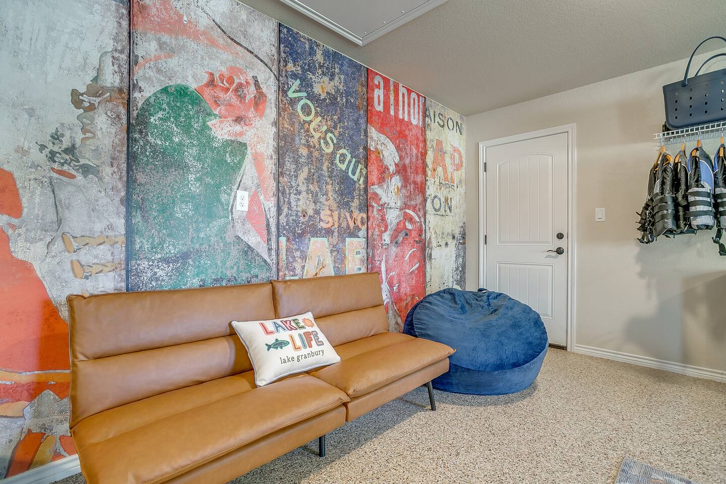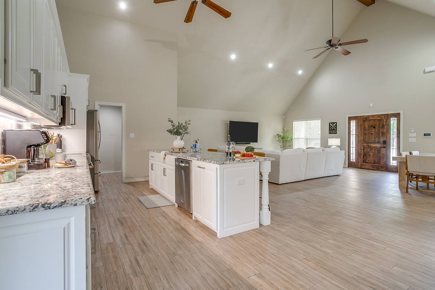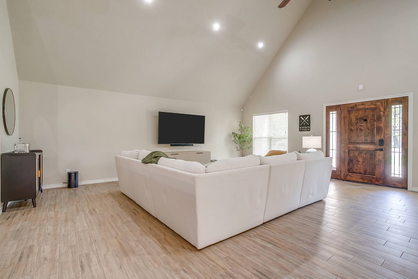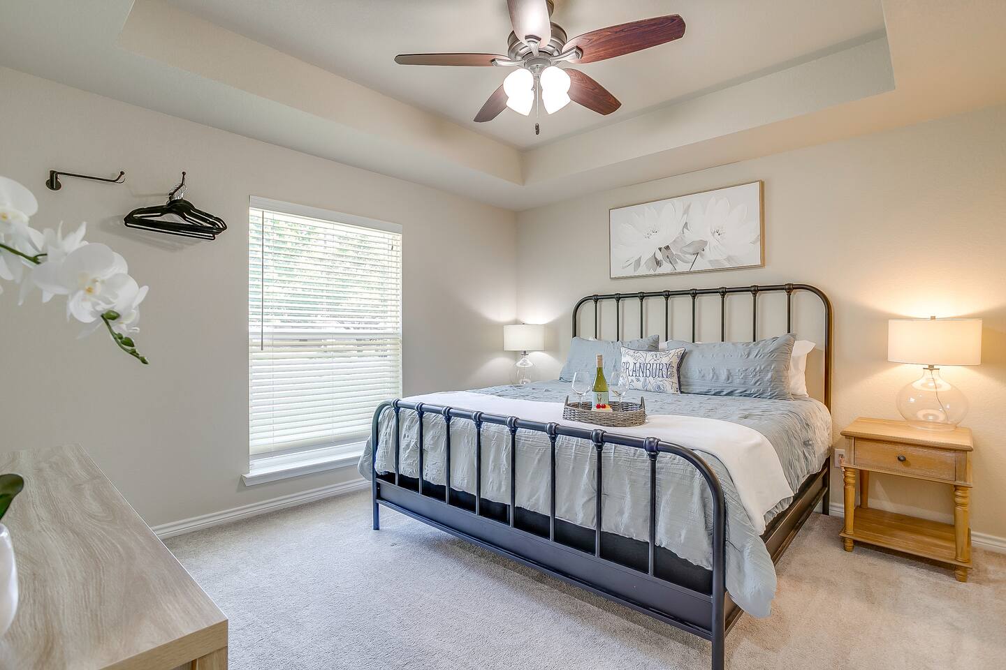 Getting around is easy with your own vehicle, as this home is located in a quiet, gated community about 10–15 minutes from Granbury’s historic square. Guests can comfortably park up to five vehicles using the driveway and garage space. While there’s no public transportation nearby, most local attractions, restaurants, and shops are just a short drive away.