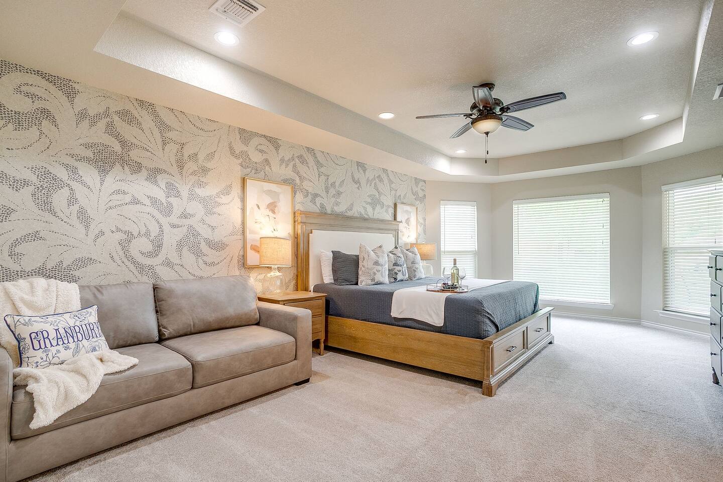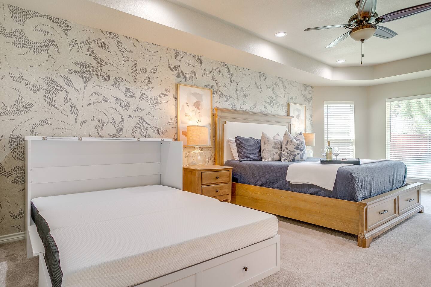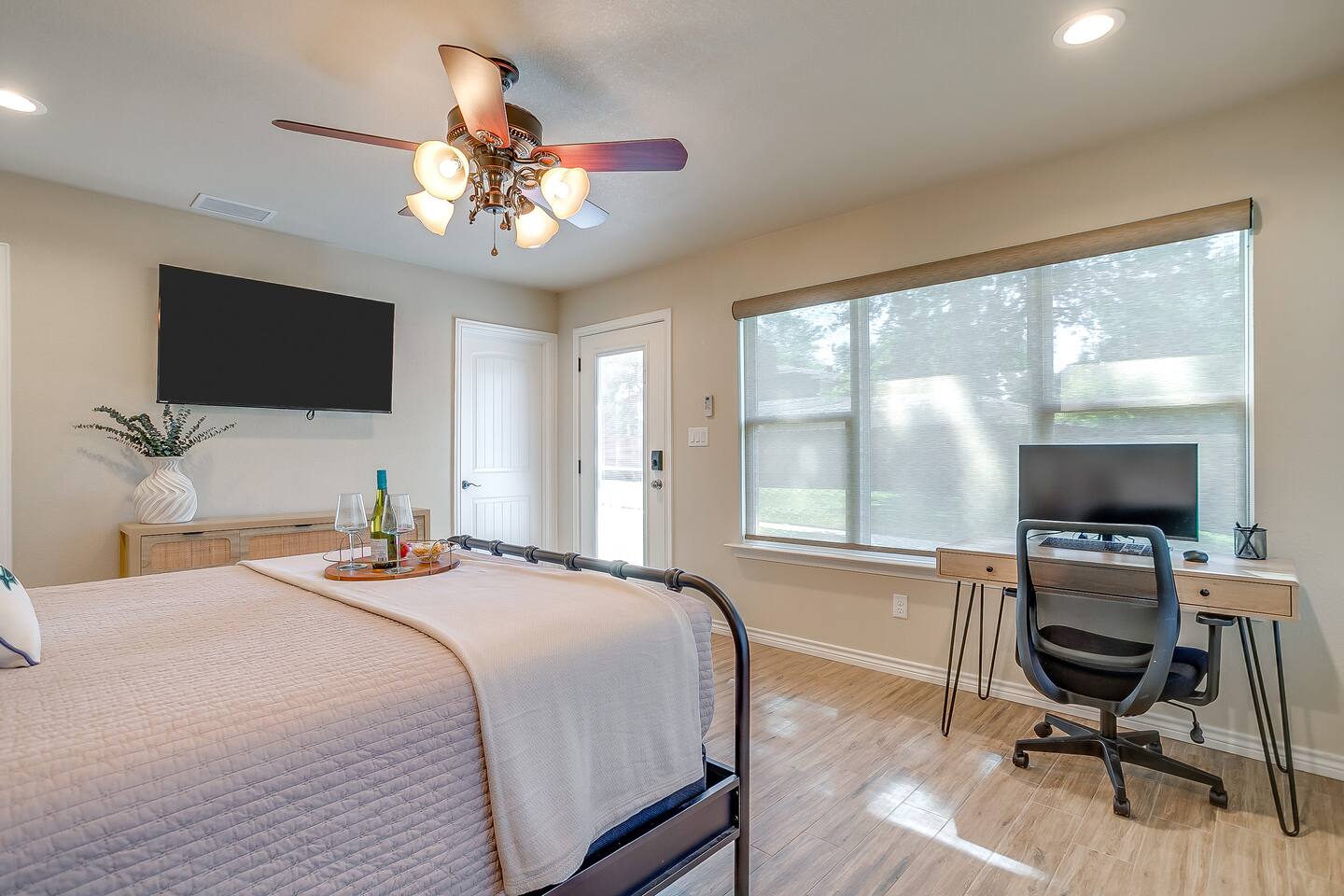 Getting around is easy with your own vehicle, as this home is located in a quiet, gated community about 10–15 minutes from Granbury’s historic square. Guests can comfortably park up to five vehicles using the driveway and garage space. While there’s no public transportation nearby, most local attractions, restaurants, and shops are just a short drive away.