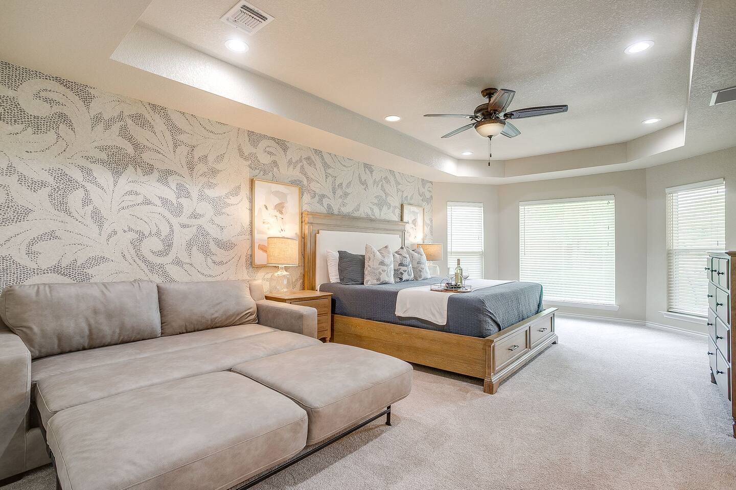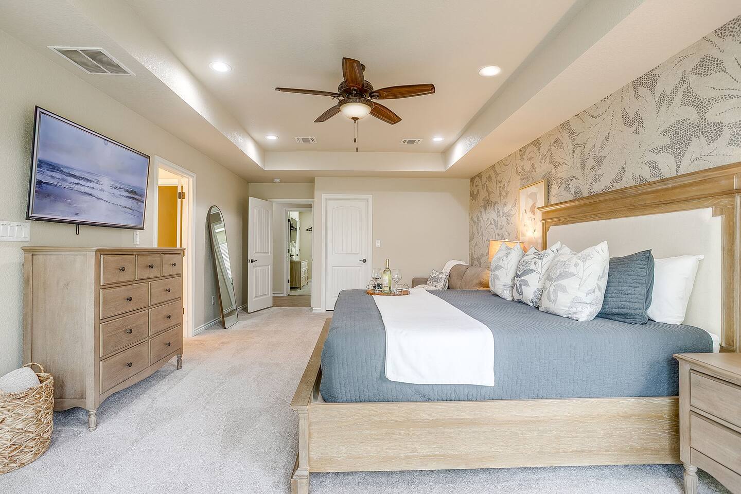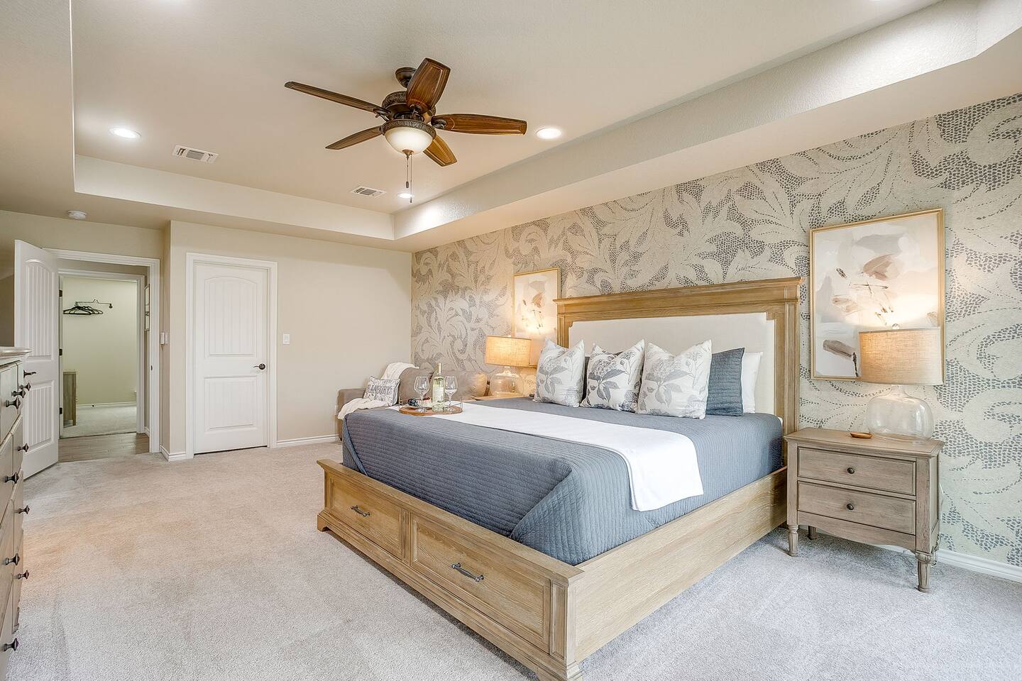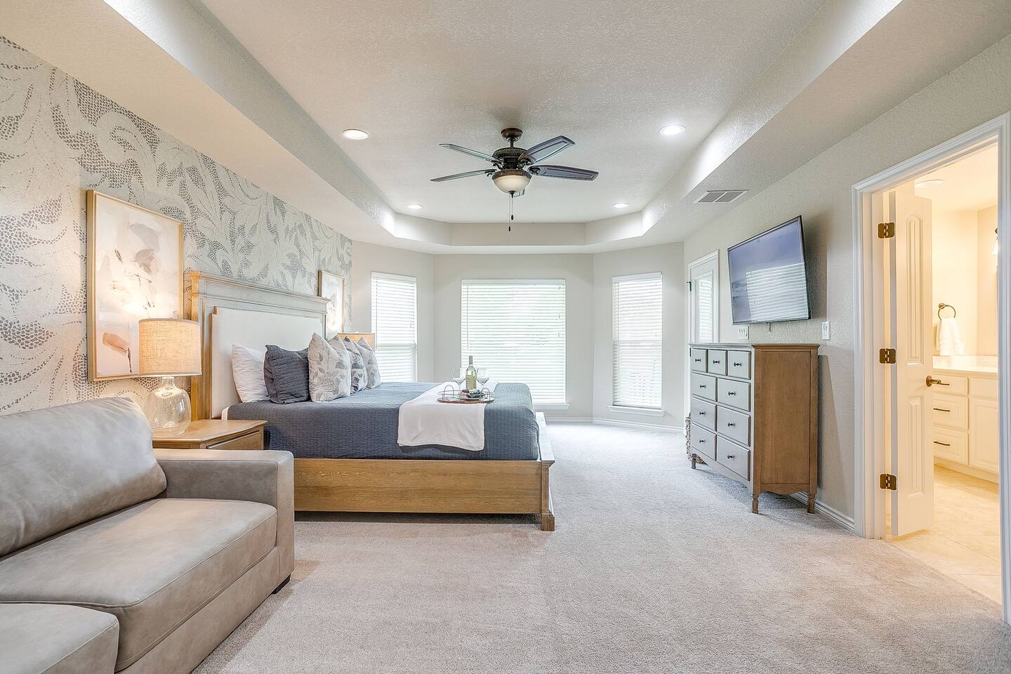 Getting around is easy with your own vehicle, as this home is located in a quiet, gated community about 10–15 minutes from Granbury’s historic square. Guests can comfortably park up to five vehicles using the driveway and garage space. While there’s no public transportation nearby, most local attractions, restaurants, and shops are just a short drive away.
