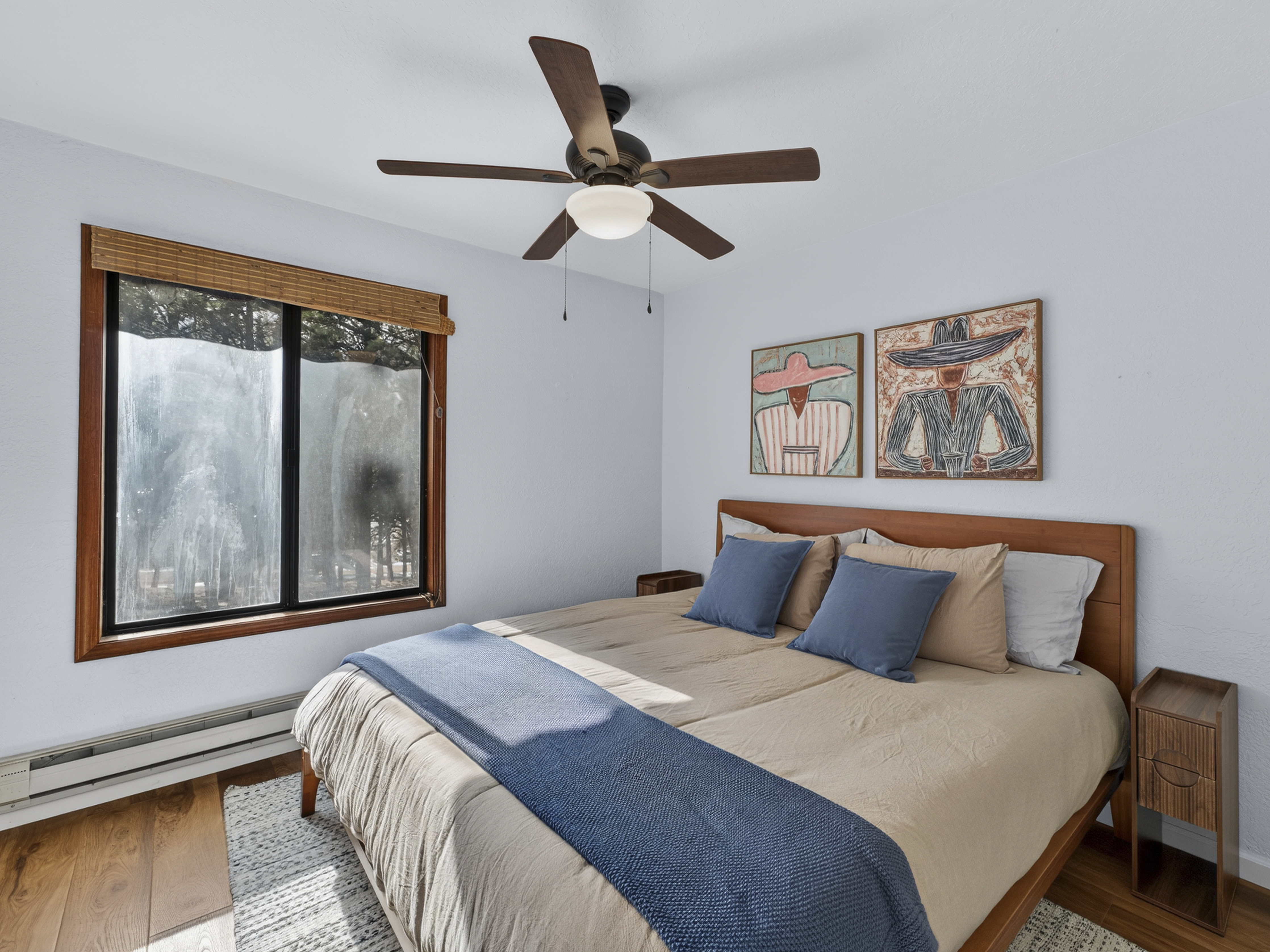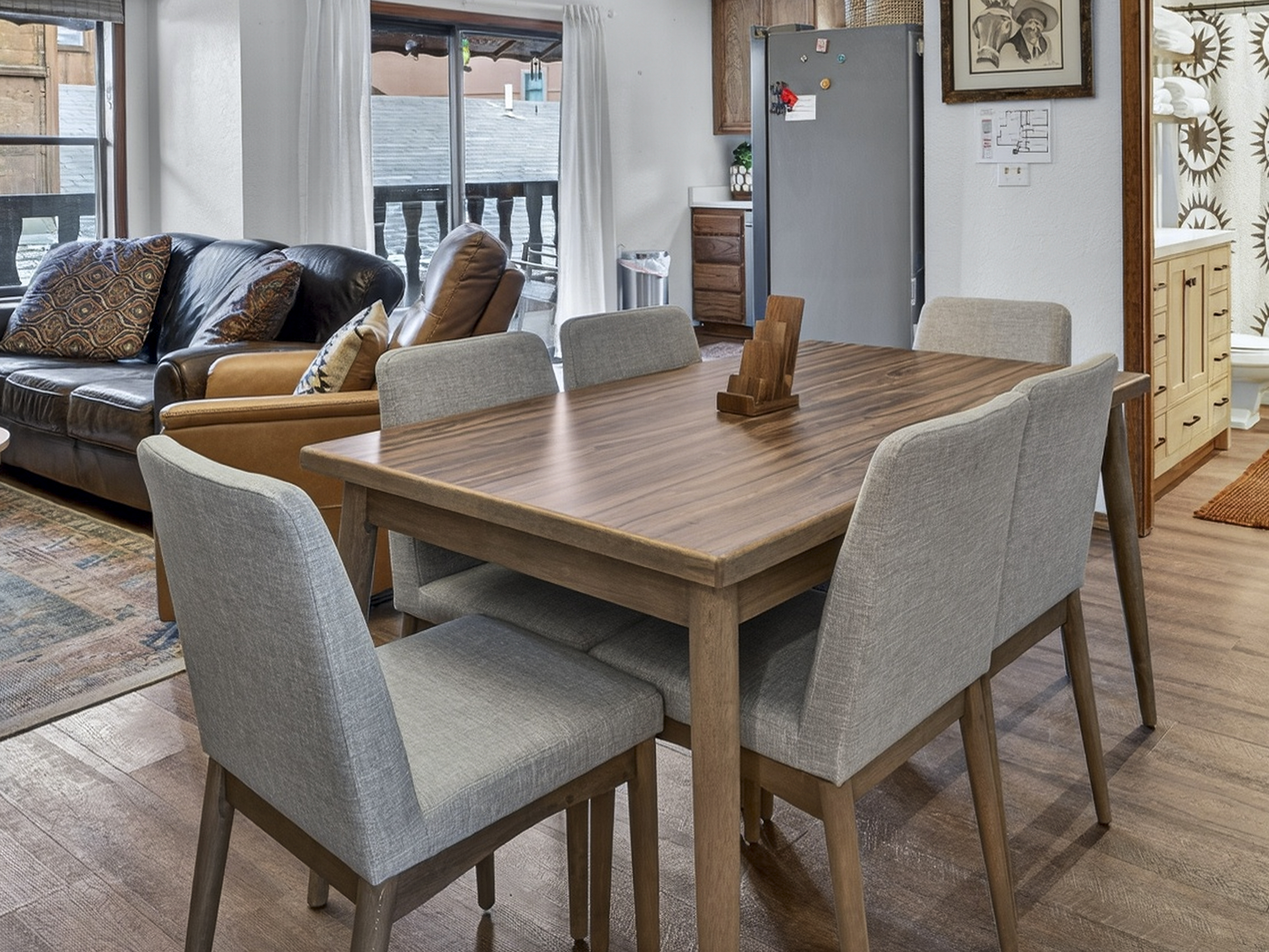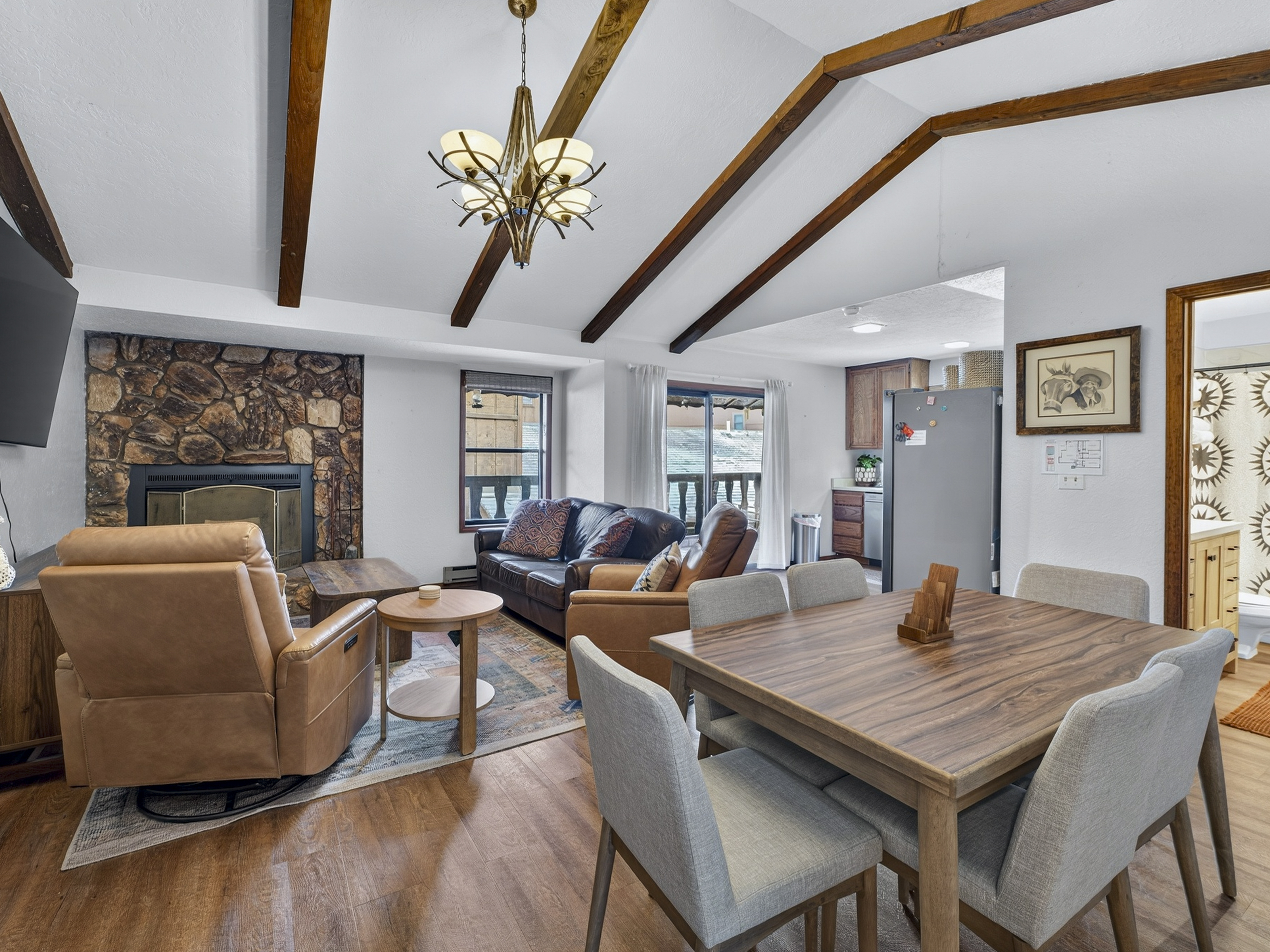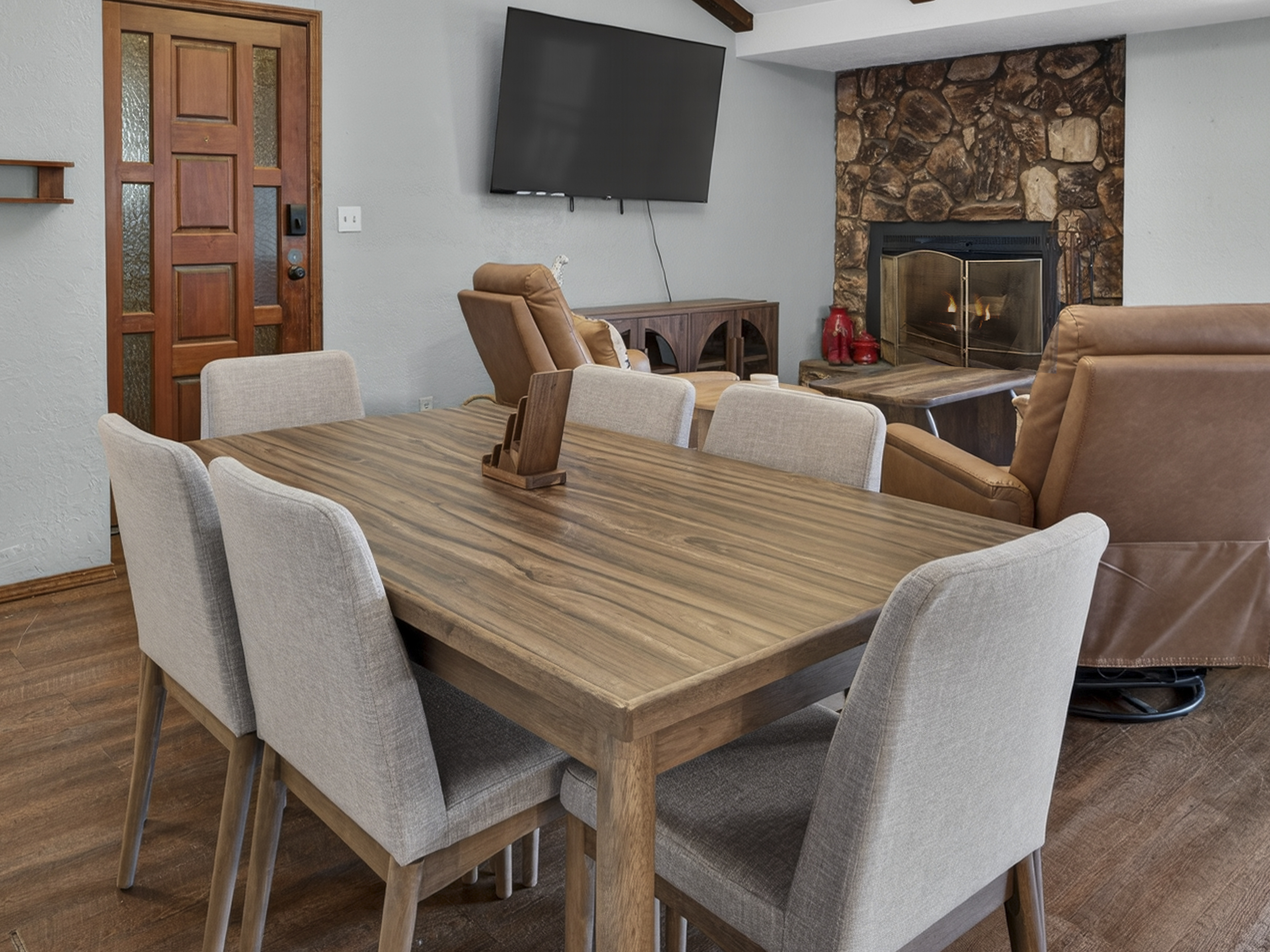 Welcome to Hummingbird Summit, your cozy mountain escape in the heart of Angel Fire Ski Resort- a recently redesigned condo that blends warm New Mexico character with modern comfort, right where you want to be during ski season. Designed for connection and relaxation, Hummingbird Summit offers three comfortable bedrooms, peaceful king bedrooms and a twin-over-twin bunk room making it ideal for families, couples, or friends traveling together. With two full bathrooms, mornings and evenings stay easy after long ski days or mountain adventures. The front bathroom features a spacious vanity and a tub/shower combo, perfect for unwinding. The living room is where everyone gathers. Sink into the cozy couch or one of two plush recliners, enjoy movie nights on the large-screen TV, or warm up by the wood-burning fireplace as snow falls outside. A full dining table brings everyone together for meals, games, and après-ski conversations. The kitchen is inviting and well equipped, with plenty of appliances and space to cook comfortably. For longer stays or winter travel, you’ll appreciate the full-size washer and dryer, ample coat hangers for ski gear, and thoughtful extras like a Shark space heater and air purifier to keep the home comfortable throughout your stay. Step onto the private balcony to breathe in crisp mountain air and take in beautiful views. In warmer months, hummingbirds often flutter through the trees, and in winter, the quiet snowfall makes mornings feel especially peaceful. Open the windows and you’ll feel fully immersed in nature. Outside, a communal grill area sits just at the base of the steps, perfect for easy outdoor meals. Well-behaved pets are welcome, so your four-legged family members can enjoy the mountains too. Neighborhood: - Located in Mountain Pines, Hummingbird Summit offers a peaceful, homey mountain setting with unbeatable convenience. You’re just 0.4 miles from the Ski Lodge (a quick 2-minute drive or easy 12-minute walk), making ski days and après-ski effortless. The Angel Fire Country Club is only 2.2 miles away, offering golf, dining, and seasonal activities. - Local restaurants, resort amenities, hiking and biking trails, and year-round outdoor adventures are all nearby—so you can spend less time driving and more time enjoying the mountains. Location Highlights: - Angel Fire is loved for its family-friendly skiing, wide open runs, excellent ski school, and relaxed mountain atmosphere. Beyond winter, the area shines with hiking, mountain biking, and scenic chairlift rides. - Just a short drive away is Taos, a cultural gem known for: - Renowned Southwestern and farm-to-table dining - Unique art galleries and local shops - Taos Plaza and historic adobe architecture - World-class museums and rich cultural history Whether you’re here for ski season, a summer escape, or a peaceful mountain reset, Hummingbird Summit offers the comfort, location, and character that keep guests coming back.