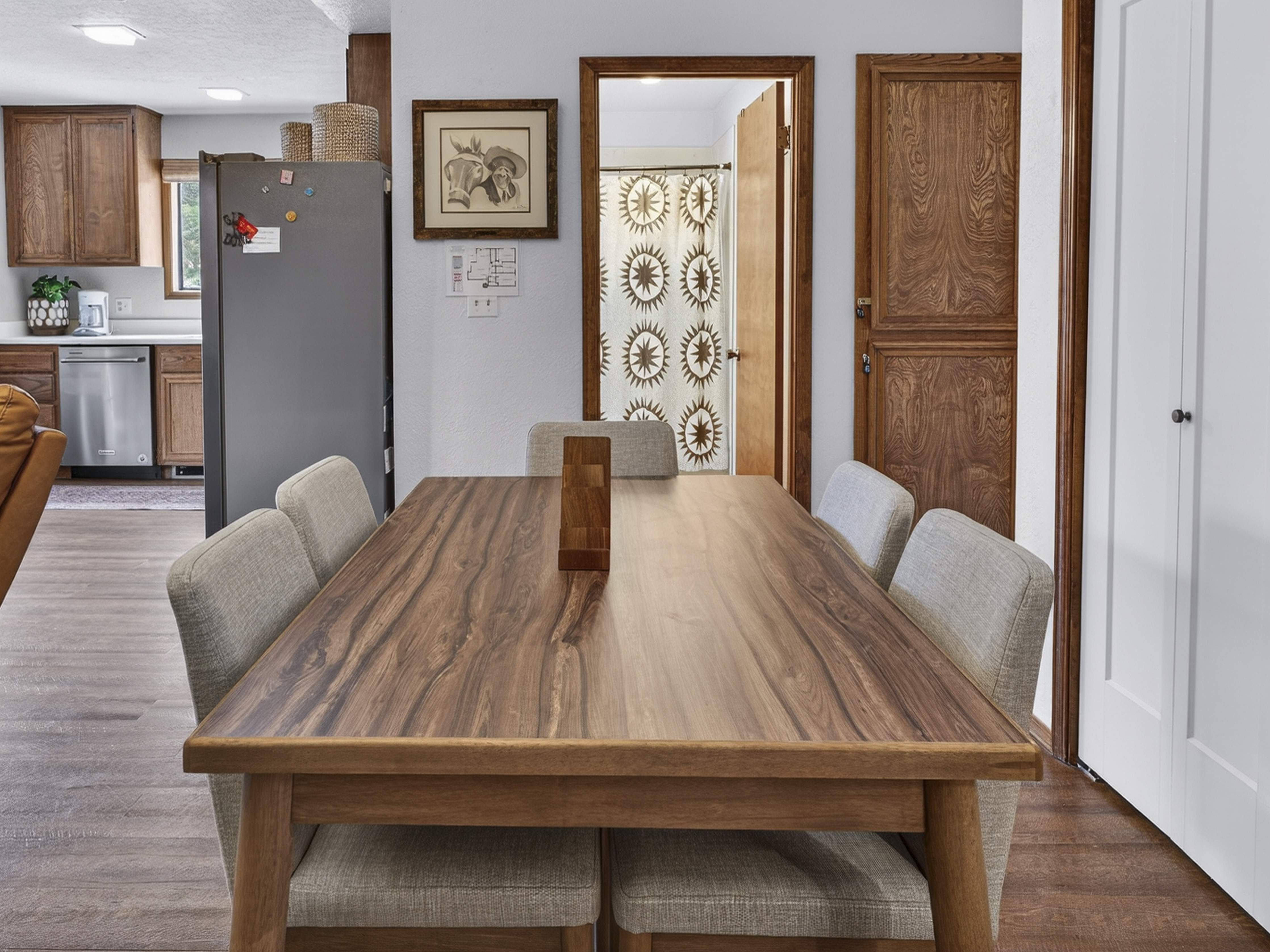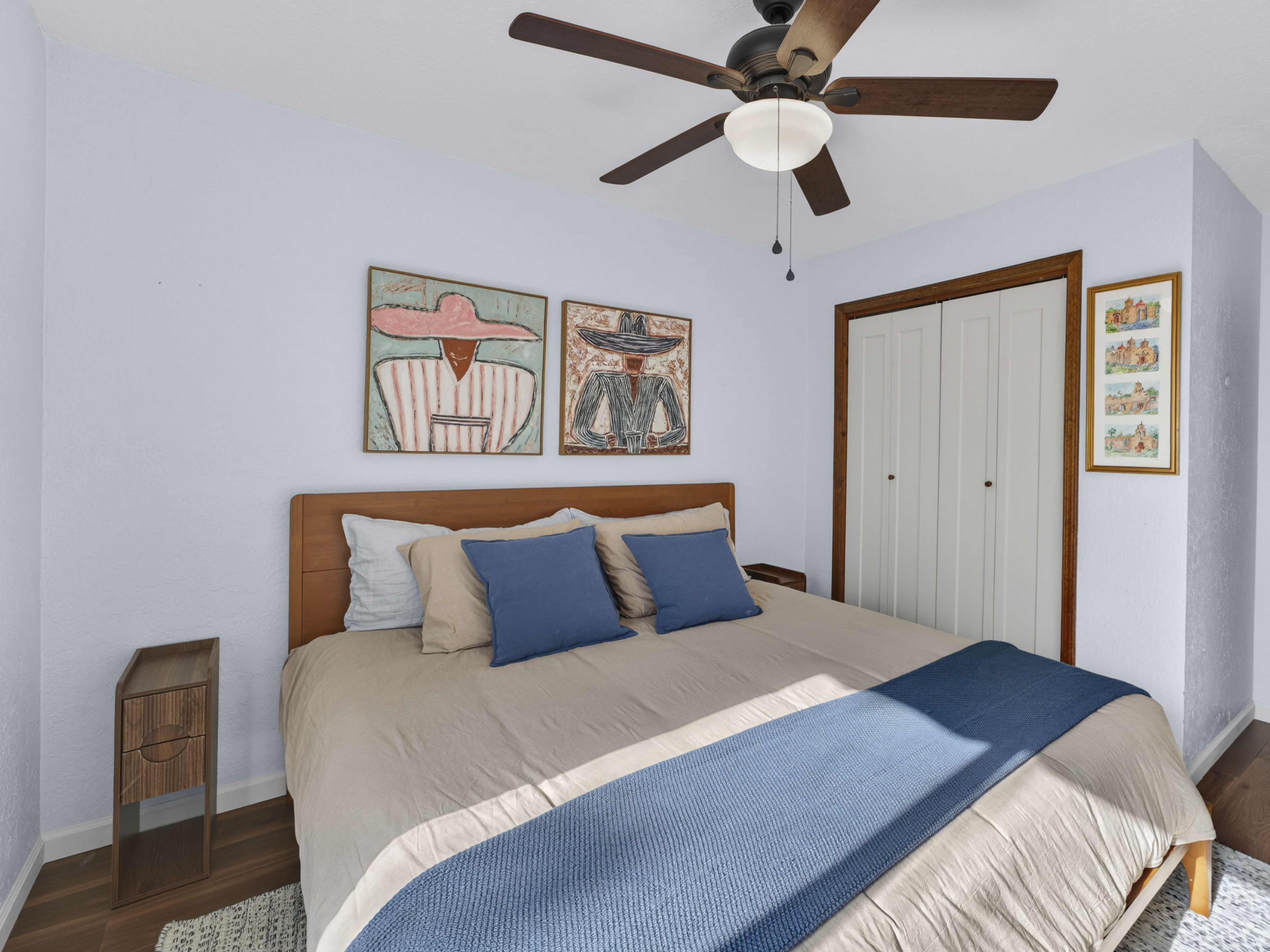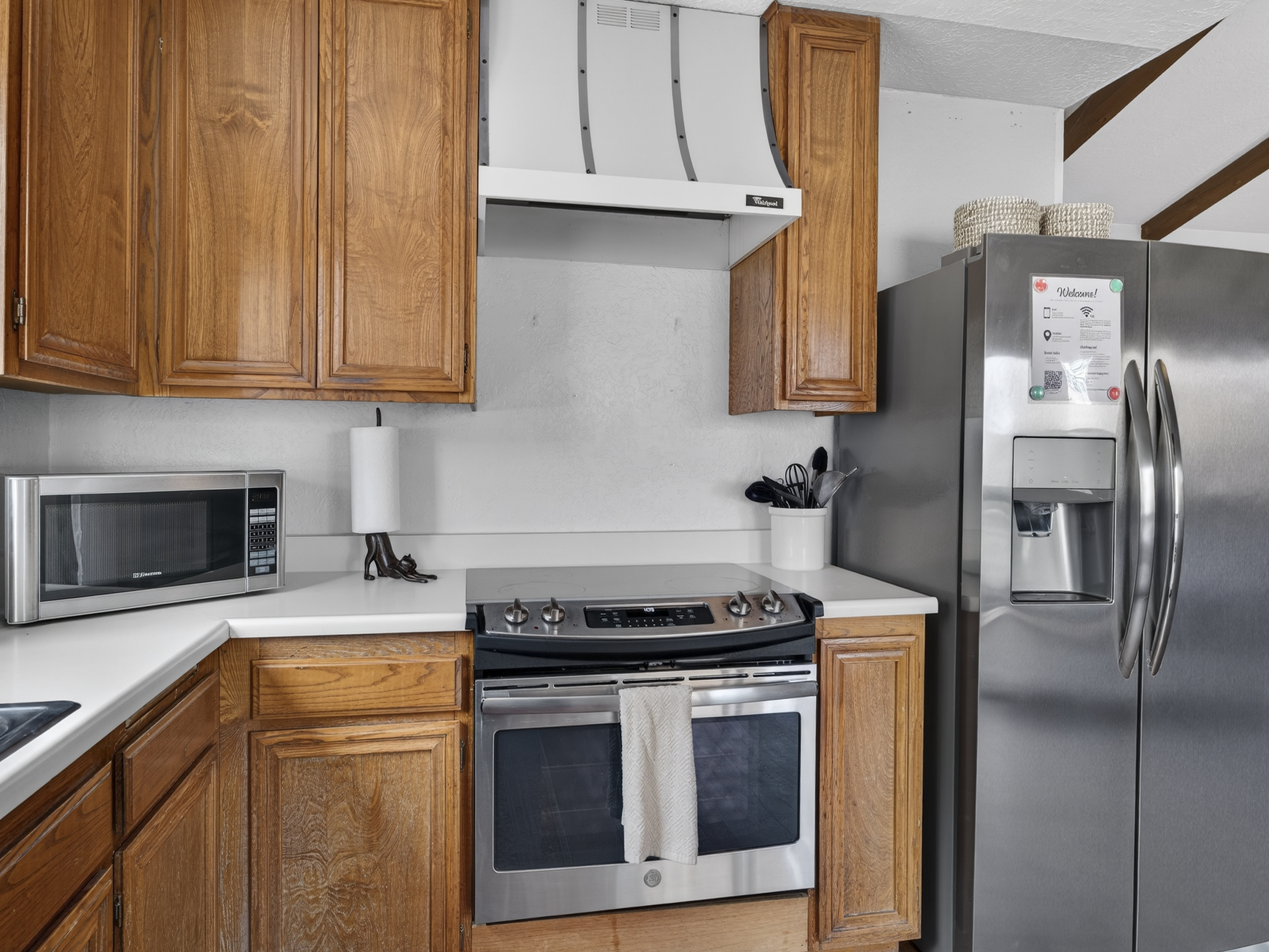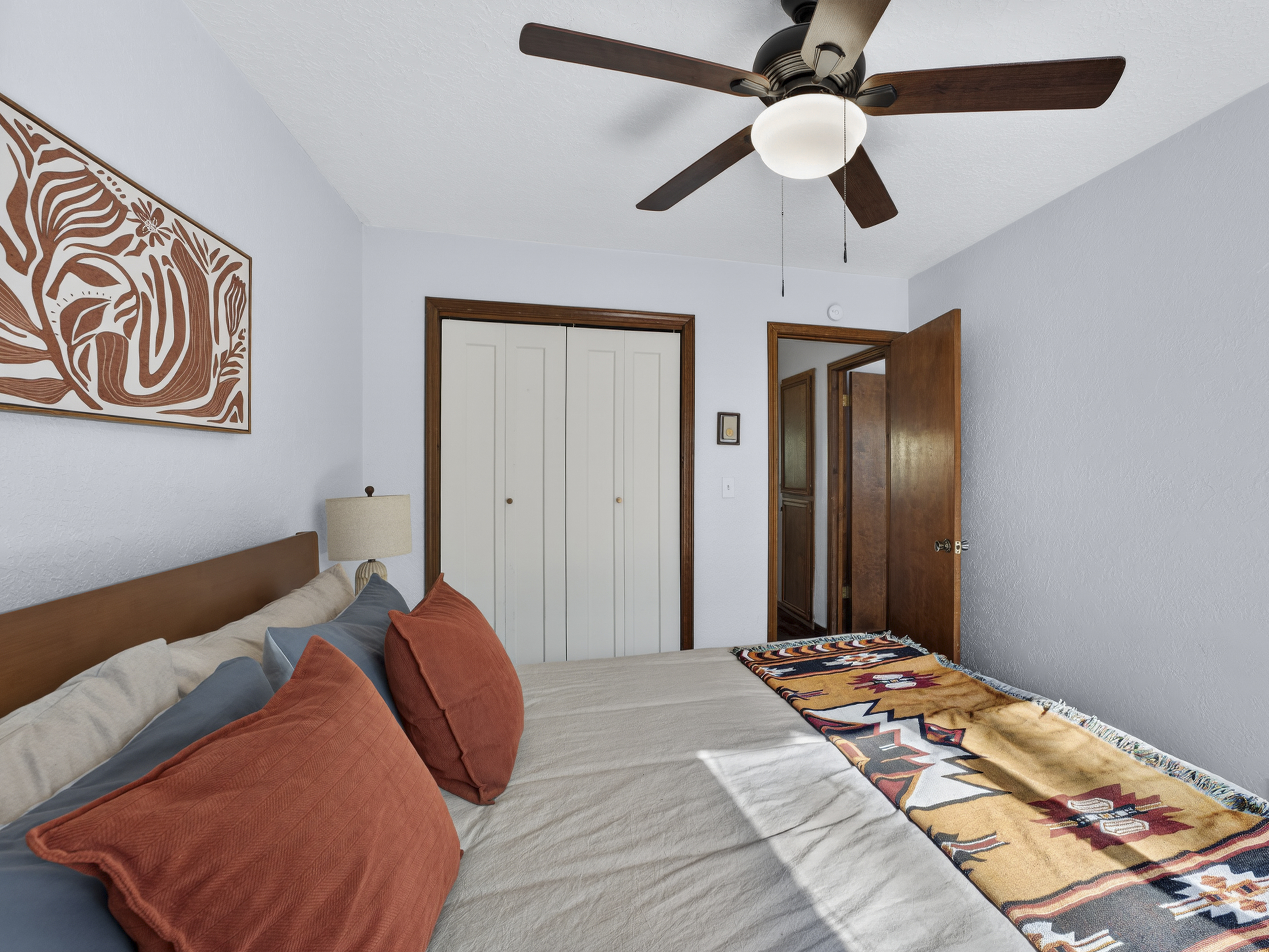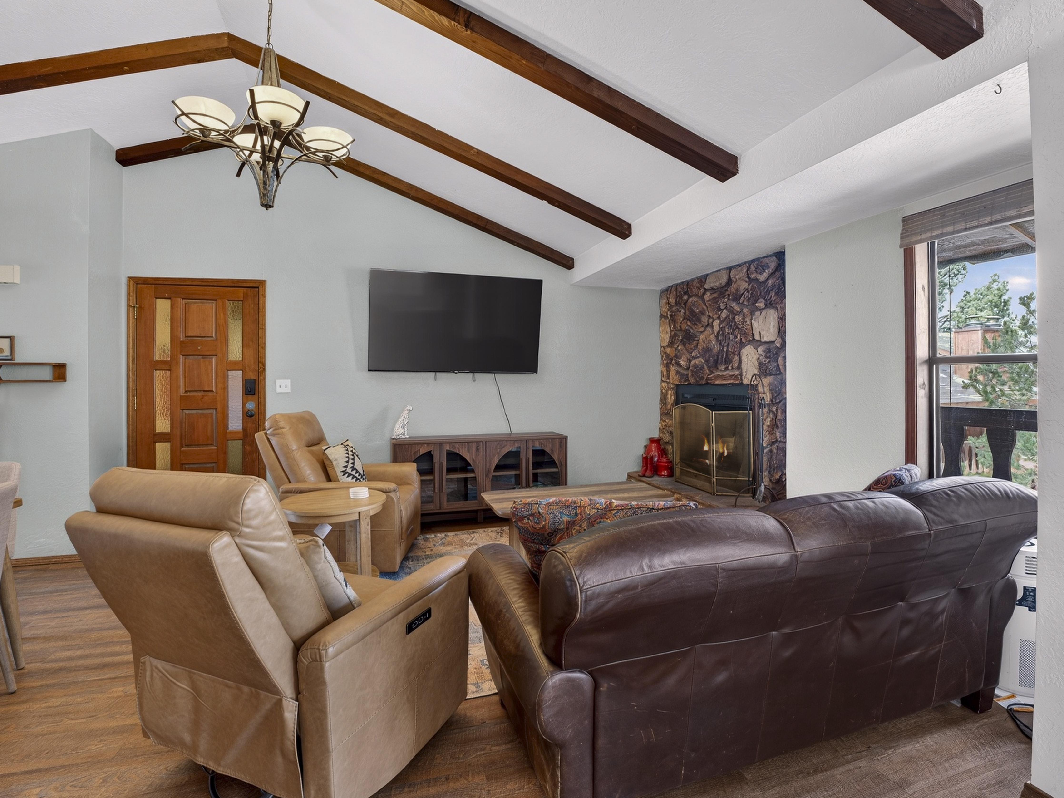 Welcome to Hummingbird Summit, your cozy mountain escape in the heart of Angel Fire Ski Resort- a recently redesigned condo that blends warm New Mexico character with modern comfort, right where you want to be during ski season. Designed for connection and relaxation, Hummingbird Summit offers three comfortable bedrooms, peaceful king bedrooms and a twin-over-twin bunk room making it ideal for families, couples, or friends traveling together. With two full bathrooms, mornings and evenings stay easy after long ski days or mountain adventures. The front bathroom features a spacious vanity and a tub/shower combo, perfect for unwinding. The living room is where everyone gathers. Sink into the cozy couch or one of two plush recliners, enjoy movie nights on the large-screen TV, or warm up by the wood-burning fireplace as snow falls outside. A full dining table brings everyone together for meals, games, and après-ski conversations. The kitchen is inviting and well equipped, with plenty of appliances and space to cook comfortably. For longer stays or winter travel, you’ll appreciate the full-size washer and dryer, ample coat hangers for ski gear, and thoughtful extras like a Shark space heater and air purifier to keep the home comfortable throughout your stay. Step onto the private balcony to breathe in crisp mountain air and take in beautiful views. In warmer months, hummingbirds often flutter through the trees, and in winter, the quiet snowfall makes mornings feel especially peaceful. Open the windows and you’ll feel fully immersed in nature. Outside, a communal grill area sits just at the base of the steps, perfect for easy outdoor meals. Well-behaved pets are welcome, so your four-legged family members can enjoy the mountains too. Neighborhood: - Located in Mountain Pines, Hummingbird Summit offers a peaceful, homey mountain setting with unbeatable convenience. You’re just 0.4 miles from the Ski Lodge (a quick 2-minute drive or easy 12-minute walk), making ski days and après-ski effortless. The Angel Fire Country Club is only 2.2 miles away, offering golf, dining, and seasonal activities. - Local restaurants, resort amenities, hiking and biking trails, and year-round outdoor adventures are all nearby—so you can spend less time driving and more time enjoying the mountains. Location Highlights: - Angel Fire is loved for its family-friendly skiing, wide open runs, excellent ski school, and relaxed mountain atmosphere. Beyond winter, the area shines with hiking, mountain biking, and scenic chairlift rides. - Just a short drive away is Taos, a cultural gem known for: - Renowned Southwestern and farm-to-table dining - Unique art galleries and local shops - Taos Plaza and historic adobe architecture - World-class museums and rich cultural history Whether you’re here for ski season, a summer escape, or a peaceful mountain reset, Hummingbird Summit offers the comfort, location, and character that keep guests coming back.
