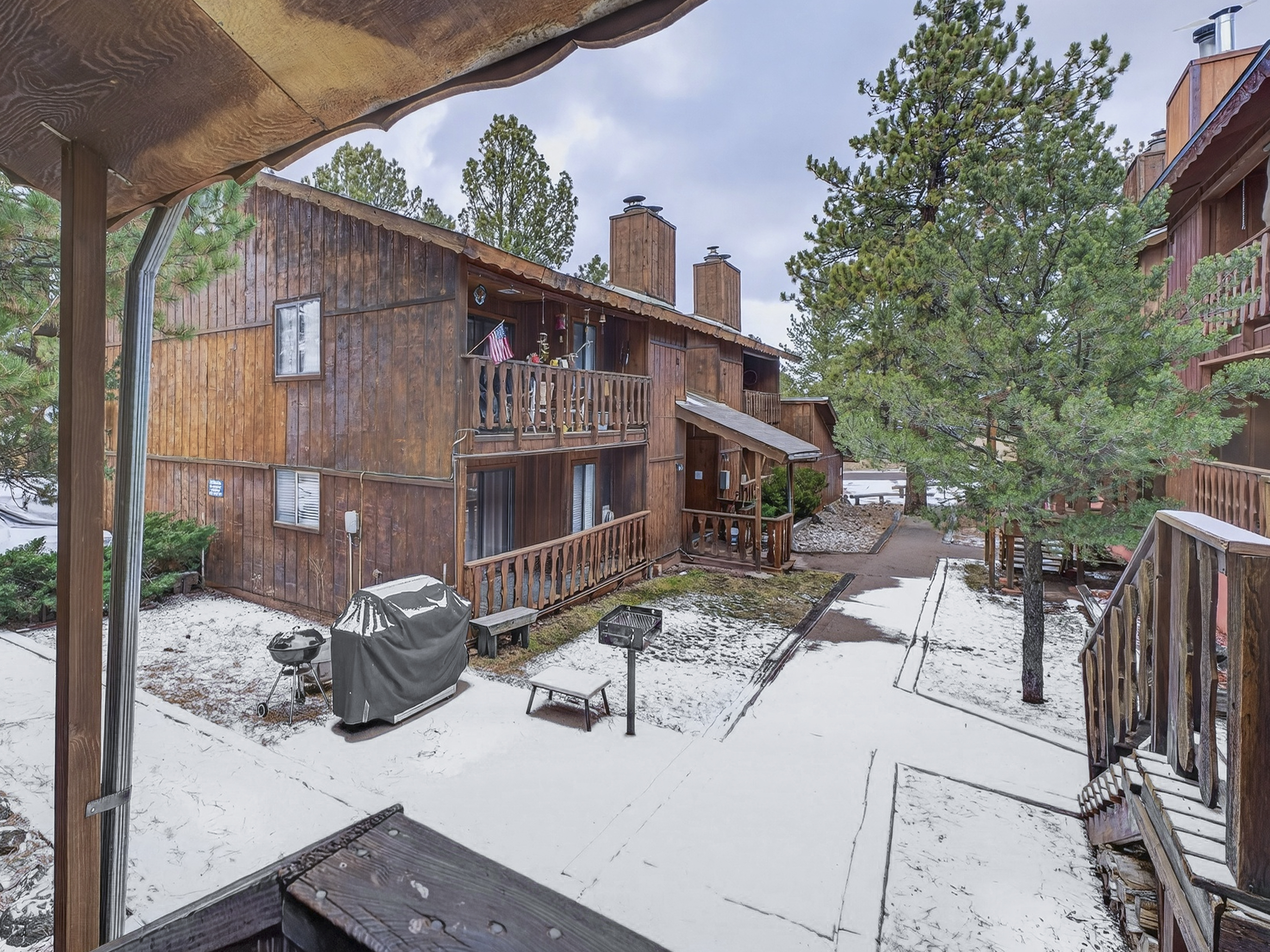 This quiet mountain neighborhood is made up of charming condos tucked along the street and surrounded by incredible mountain views and natural beauty. Wildlife is part of daily life here- you may spot small critters, elk, and other native animals passing through the area. A small courtyard sits just in front of the home, adding to the welcoming, homey feel. Overall, the neighborhood feels peaceful, relaxed, and perfectly suited for slowing down and enjoying the mountains.