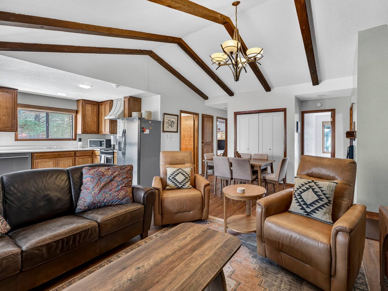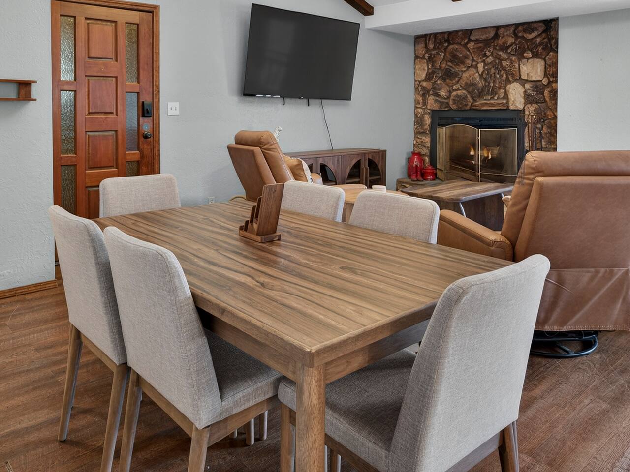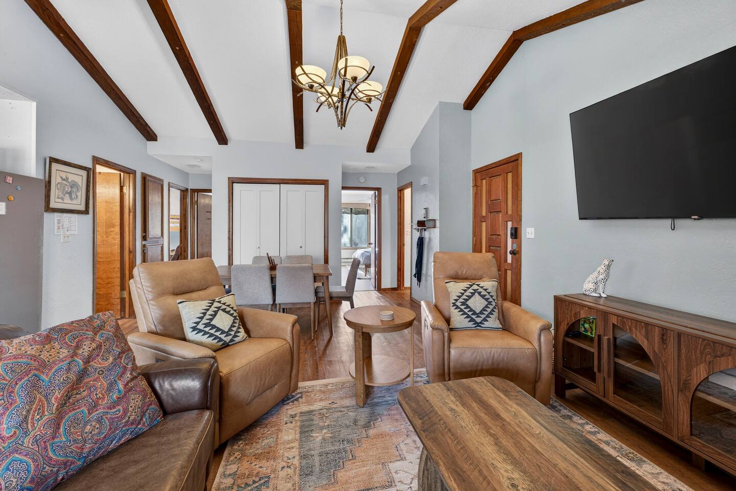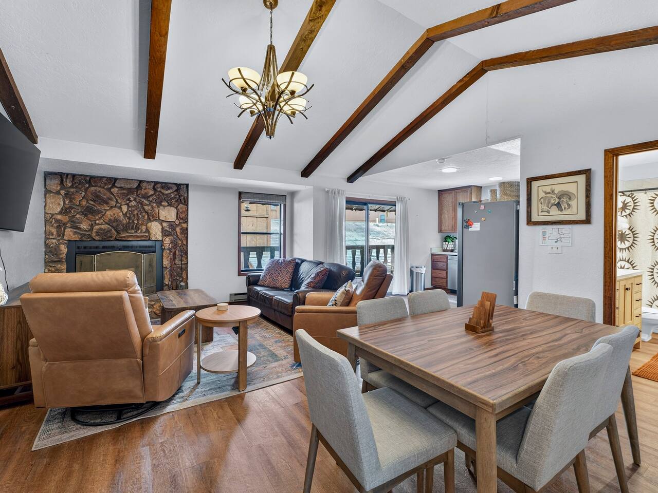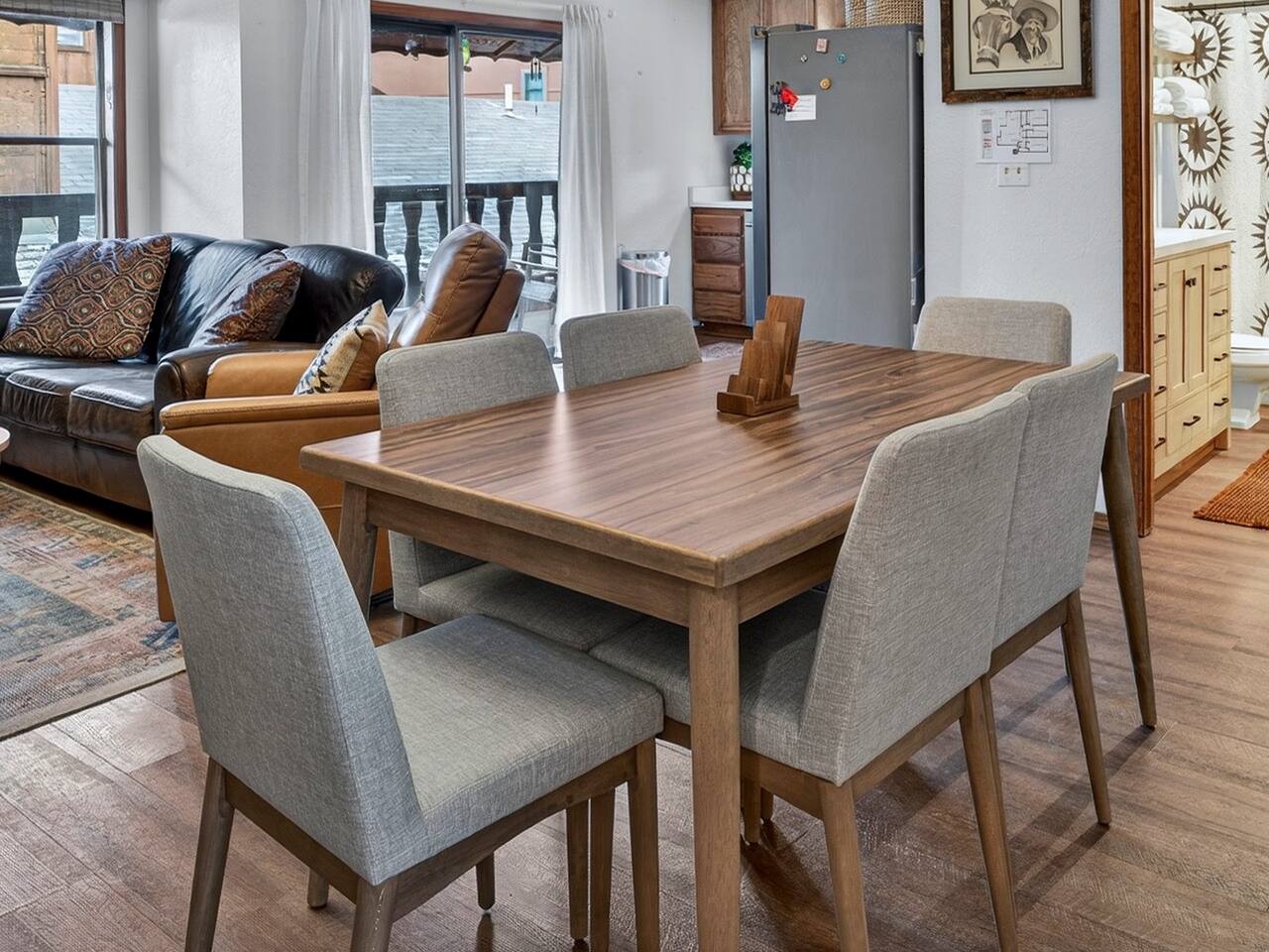 Hummingbird Condos includes both upstairs and downstairs units, 6 bedrooms, 4 bathrooms, 2 kitchens, and 2 living spaces, perfect for groups who want to stay together with room to spread out. Located in a quiet neighborhood just minutes from Angel Fire Ski Resort and a short drive to Taos, guests love the cozy fireplaces, mountain views, and comfortable, newly updated spaces after a full day of adventure.