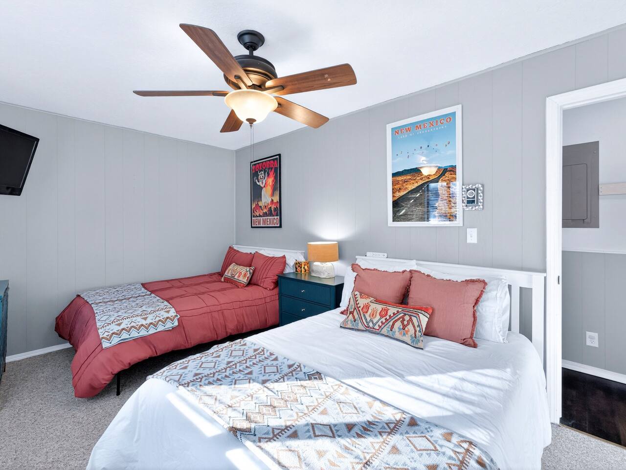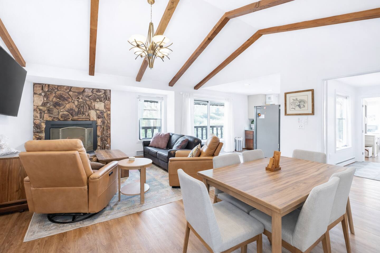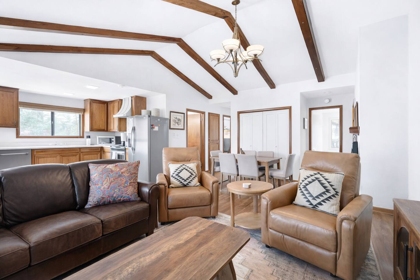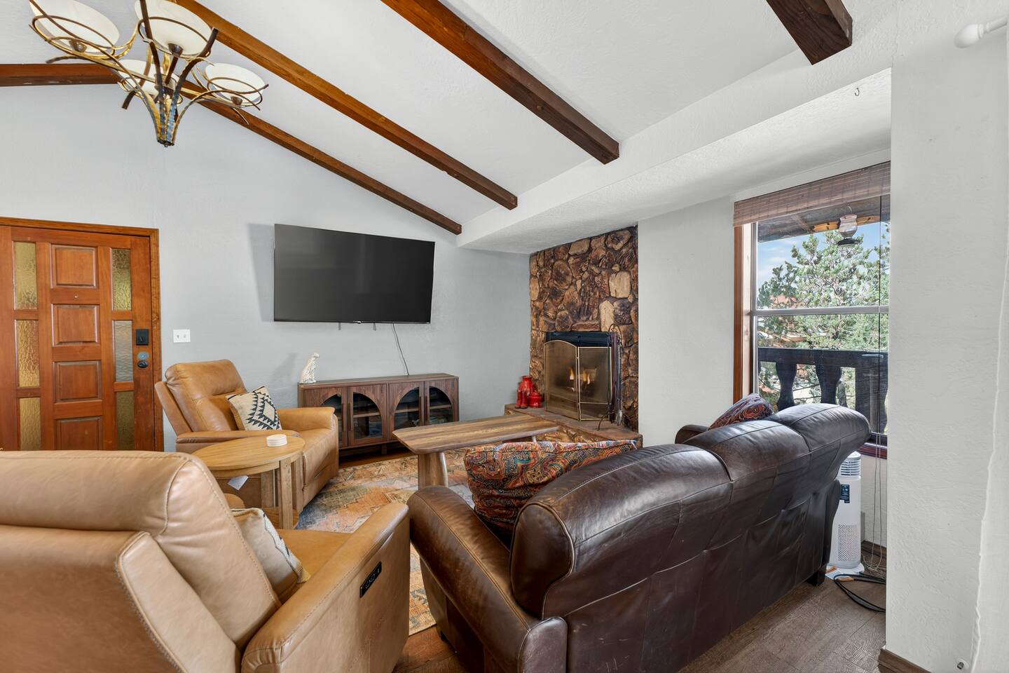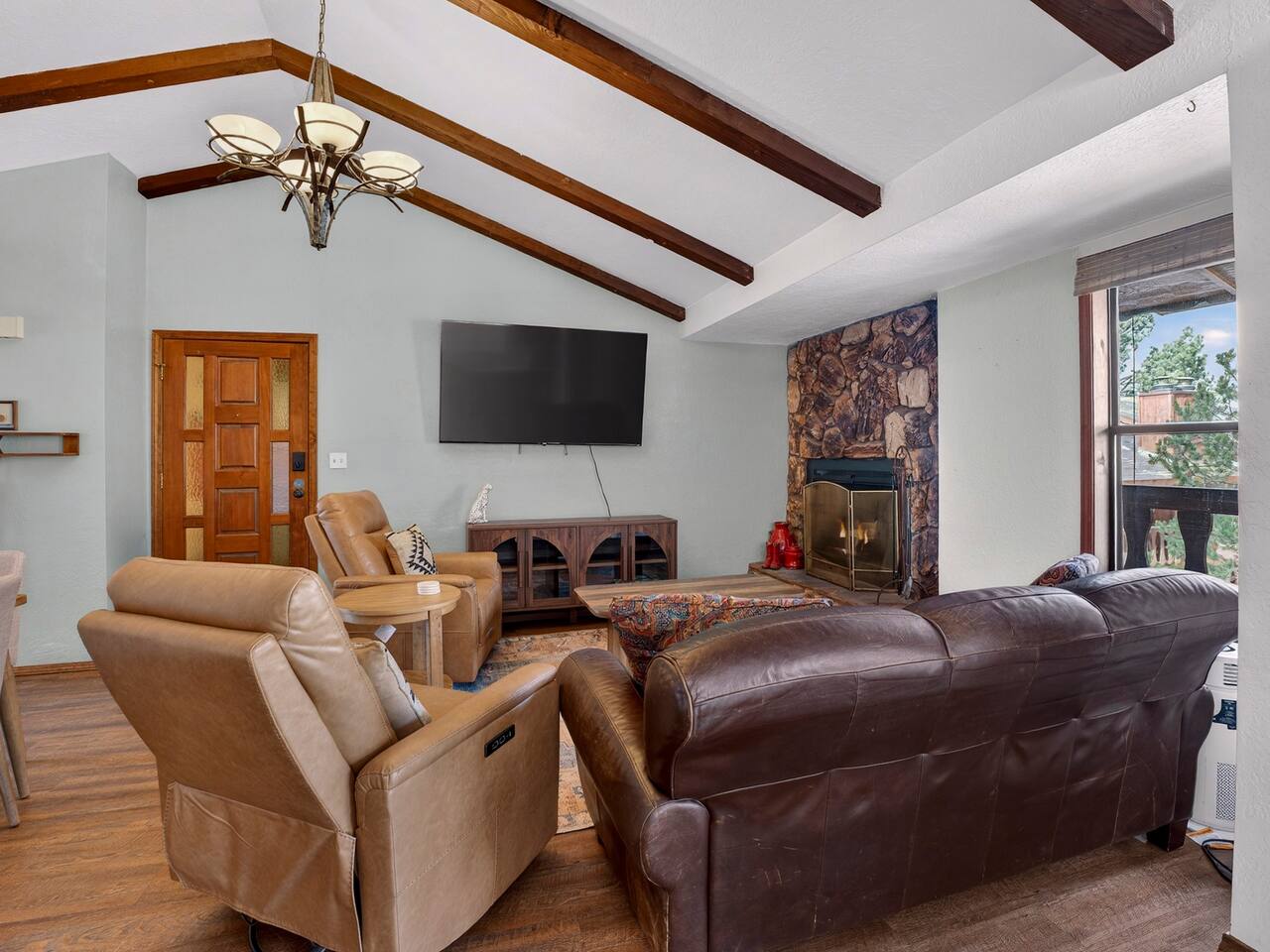 Hummingbird Condos includes both upstairs and downstairs units, 6 bedrooms, 4 bathrooms, 2 kitchens, and 2 living spaces, perfect for groups who want to stay together with room to spread out. Located in a quiet neighborhood just minutes from Angel Fire Ski Resort and a short drive to Taos, guests love the cozy fireplaces, mountain views, and comfortable, newly updated spaces after a full day of adventure.