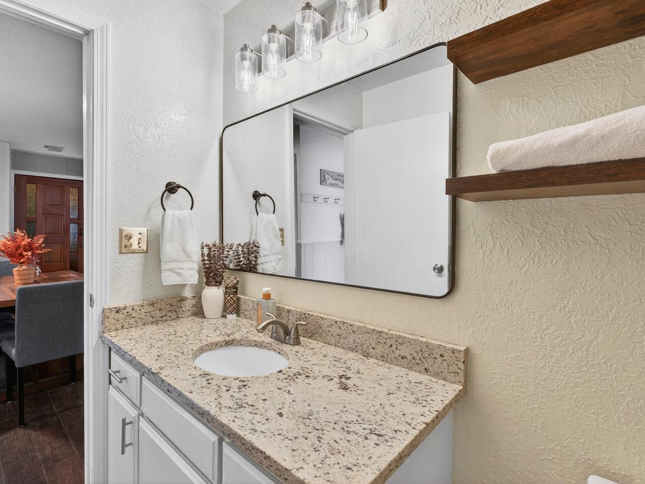 HOUSE RULES Welcome! We’re thrilled to host you and want to ensure a comfortable, safe, and enjoyable stay for everyone. Please review our house rules before booking: GENERAL Check-in after 4:00 PM and check-out by 11:00 AM (unless otherwise arranged). No parties or events are permitted. Quiet hours: 10:00 PM – 8:00 AM. No unauthorized overnight guests. Only the number of guests listed in the reservation are allowed to stay overnight. No smoking or vaping inside the home. Smoking is permitted only outdoors and away from doors and windows. No illegal substances or activities at any time. PETS We love welcoming pets, but please review our guidelines before booking. Only one dog is allowed per stay, whether indoors or outdoors, and the pet must be disclosed at the time of booking. A $150 pet fee will be added to your reservation. Dogs must be fully trained and housebroken. An additional $250 cleaning fee may apply if excessive cleaning or odor removal is required. Guests are responsible for any damages caused by their pet during the stay. KITCHEN & HOME CARE Please treat the home as you would your own. Wash dishes or load the dishwasher before checkout. Do not move or rearrange furniture. Report any damages or maintenance issues promptly so we can address them quickly. SAFETY & SECURITY For your safety, do not disable or cover smoke detectors or exterior cameras. Lock doors and windows when leaving the property. Follow all posted safety signage for fire pits, pools, docks, and outdoor areas. CHECKOUT REMINDER Place used towels in the bathroom or laundry area. Remove all trash to outdoor bins. Verify that personal items are packed before departure. FEES & DAMAGES A $1,500 fee will apply for violation of any house rule (including unauthorized guests, smoking indoors, or tampering with safety devices). Excessive cleaning will result in a $500 fee. This includes, but is not limited to: Stains on furniture, rugs, or bedding. Trash left throughout the home or yard. Dirty dishes left unwashed. Spills or food left on floors, counters, or furniture. Pet waste not cleaned up. Glitter, confetti, or wax residue. Any condition requiring professional cleaning or odor removal.