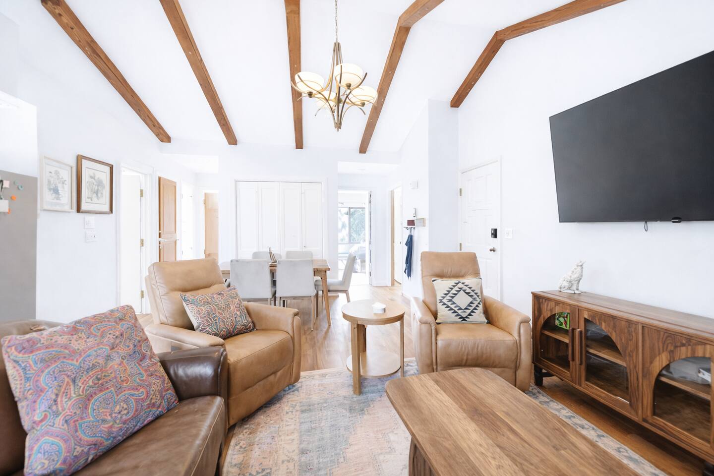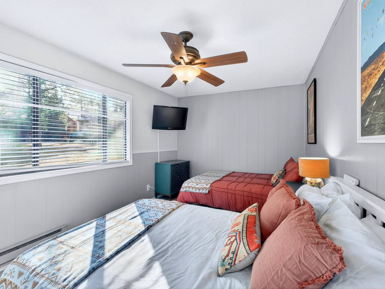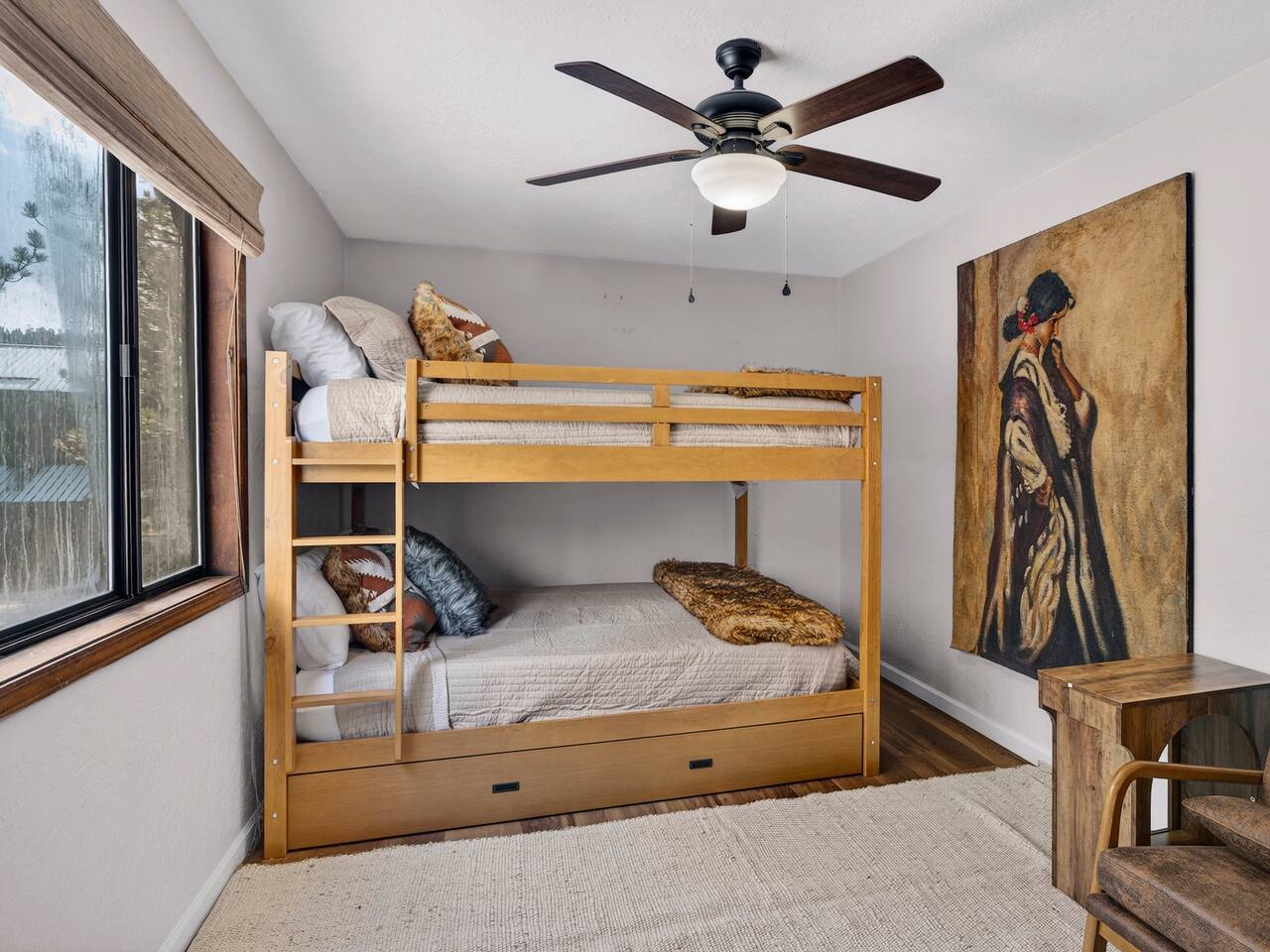 Welcome to Hummingbird Condos- the perfect setup for larger groups, families, or friends traveling together who want to stay close while still enjoying their own space. This listing includes both Hummingbird Summit (upstairs) and Hummingbird Landing (ground level), giving you the entire condo building. In total, you’ll enjoy: 6 bedrooms 4 full bathrooms 2 full kitchens 2 living rooms 2 in-unit laundry areas It’s an ideal layout for two families, multi-generational trips, or group getaways, offering the best of both worlds- shared time together and privacy when you need it. Designed for Comfort & Connection - Each unit has been thoughtfully redesigned with comfort in mind, blending cozy mountain style with functional living spaces. After a day on the slopes, gather together in one of the living rooms to relax by the wood-burning fireplace, stretch out in plush seating, or enjoy movie nights with Smart TVs and streaming. - Large windows and a private balcony bring in crisp mountain air, peaceful views, and a true sense of being immersed in nature. In warmer months, hummingbirds are often spotted nearby, adding to the charm of the space. Sleeping Arrangements Ground Level- Hummingbird Landing Bedroom 1: King bed Bedroom 2: Queen bed with twin trundle Bedroom 3: Two double beds Upstairs- Hummingbird Summit Bedroom 1: King bed Bedroom 2: King bed Bedroom 3: Double bunk beds with twin trundle Kitchens, Dining & Everyday Convenience Both units feature fully stocked kitchens with everything needed to cook, dine, or bring in takeout with ease. Whether you’re preparing meals for the group or just enjoying coffee in the morning, each space is designed to feel comfortable and functional. You’ll also find: - Washer and dryer in each unit - Plenty of space for ski gear and luggage - Thoughtful extras like air purifiers and space heaters for year-round comfort Outdoor Spaces Step outside to enjoy the private balcony, perfect for morning coffee or winding down after a full day of adventure. A communal grill area just below the steps makes outdoor meals simple and relaxed. Pet-Friendly Well-behaved pets are welcome, so your four-legged family members can join in on the mountain getaway. Why Guests Love This Setup - Perfect for larger groups without feeling crowded - Two full units = more space, more flexibility - Ideal for families traveling together - Cozy, updated interiors in a quiet mountain setting - Close to skiing, town, and everything Angel Fire offers