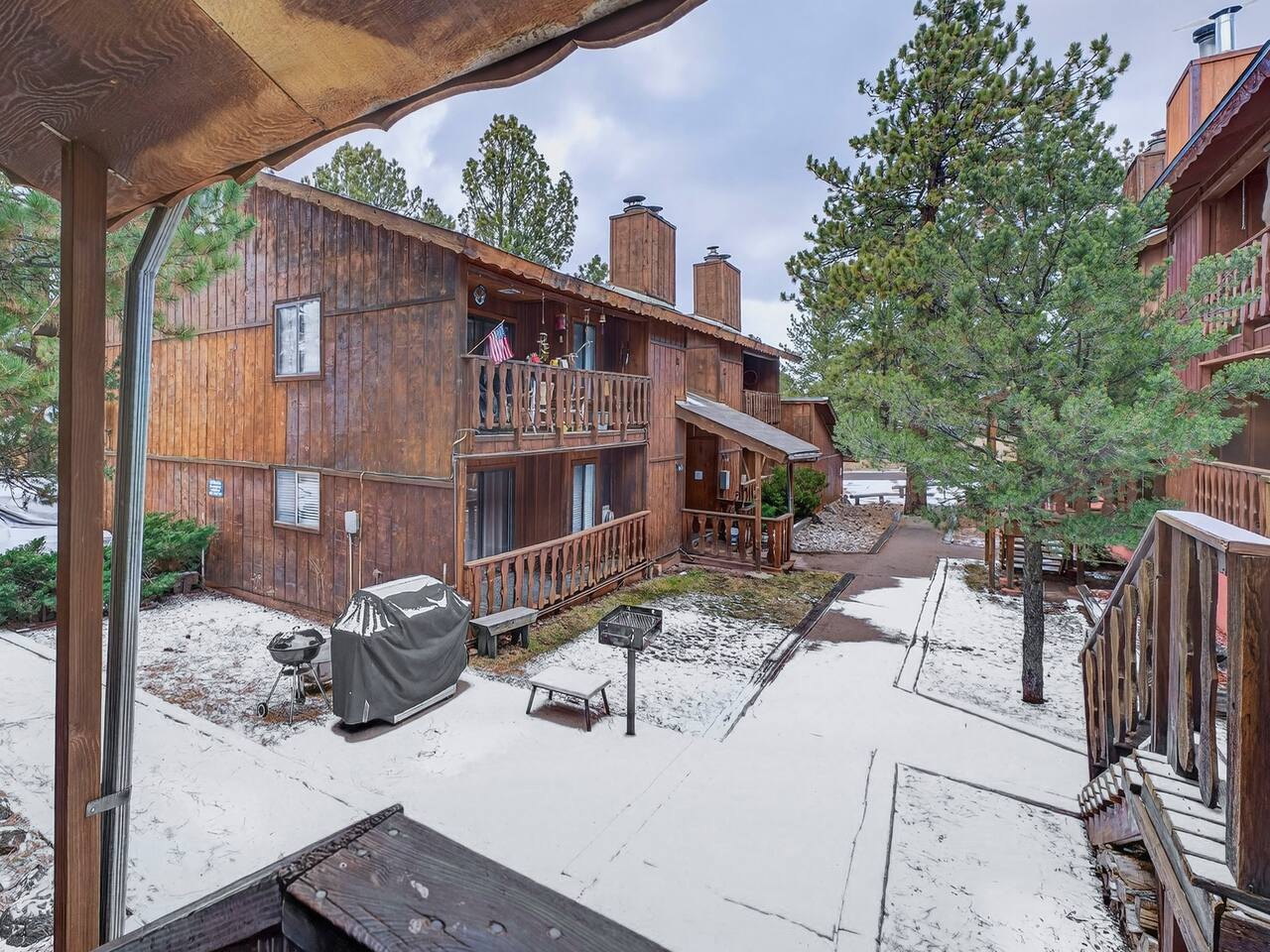 Situated in the Mountain Pines community, this condo offers a prime location that balances peaceful mountain surroundings with easy access to everything Angel Fire has to offer. You’re just 0.4 miles from the Ski Lodge (a quick 2-minute drive or an easy 12-minute walk) and 2.2 miles from the Angel Fire Country Club. The neighborhood is made up of charming condos tucked along the street and surrounded by incredible mountain views and natural beauty. Wildlife is part of daily life here—you may spot small critters, elk, and other native animals passing through the area. A small courtyard sits just in front of the home, adding to the welcoming, homey feel. Local restaurants, resort amenities, and a wide variety of year-round outdoor activities are all close by, allowing you to spend less time driving and more time enjoying the mountains.