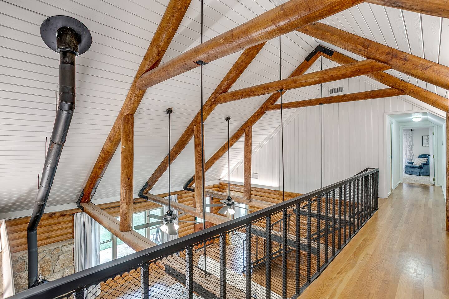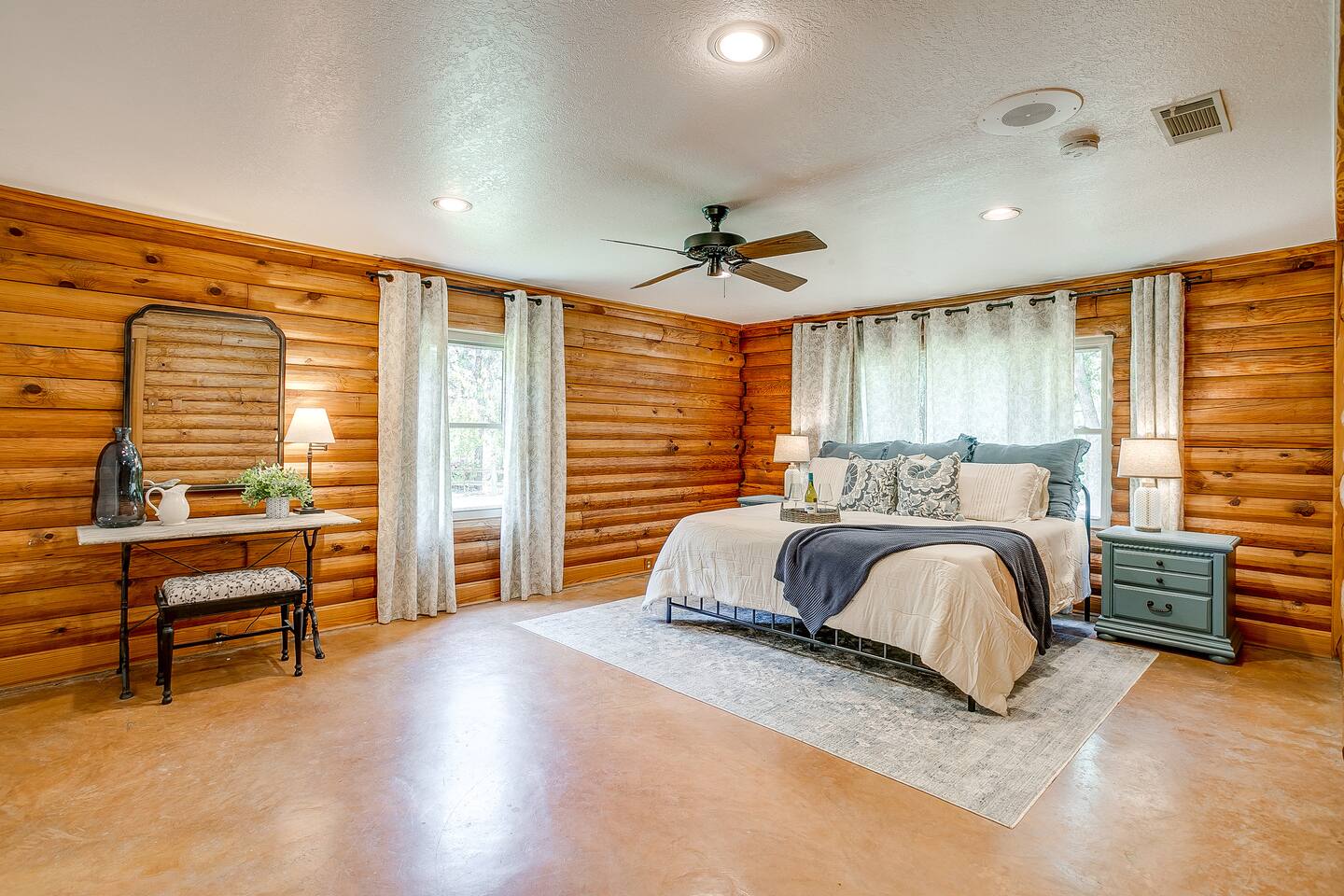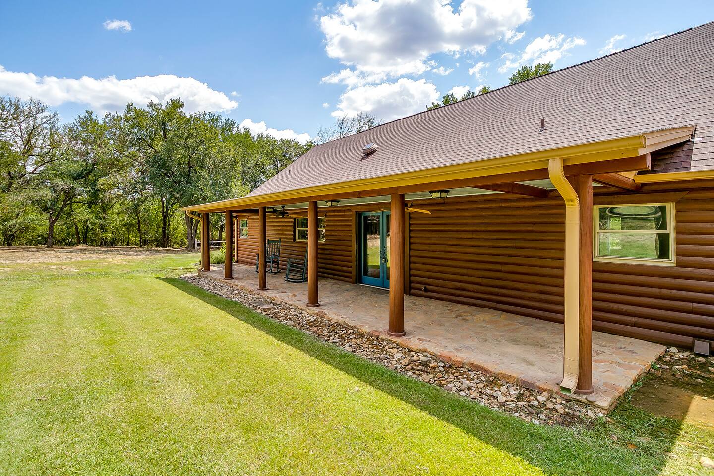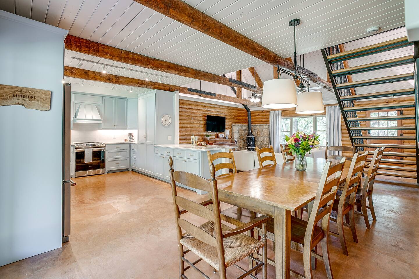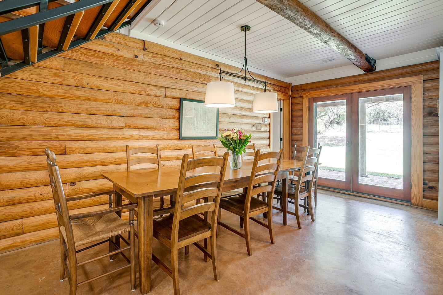 Escape to Pleasant Valley Cabin, your serene log-cabin retreat nestled among towering trees just outside Weatherford. This lovingly remodeled four-bedroom, two-and-a-half-bath haven blends rustic charm with modern comfort, featuring a grand open living area with soaring ceilings, log beams, and a cozy wood-burning stove. With a stylish sky-blue kitchen, spacious common spaces, and tranquil bedrooms overlooking nature, it’s the perfect setting to relax, recharge, and reconnect.