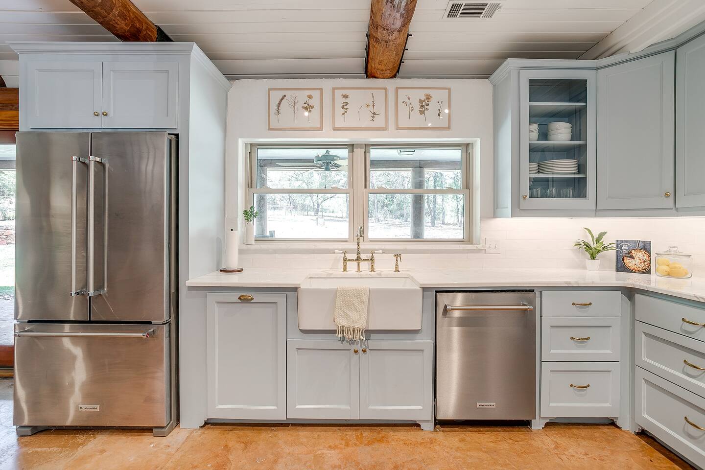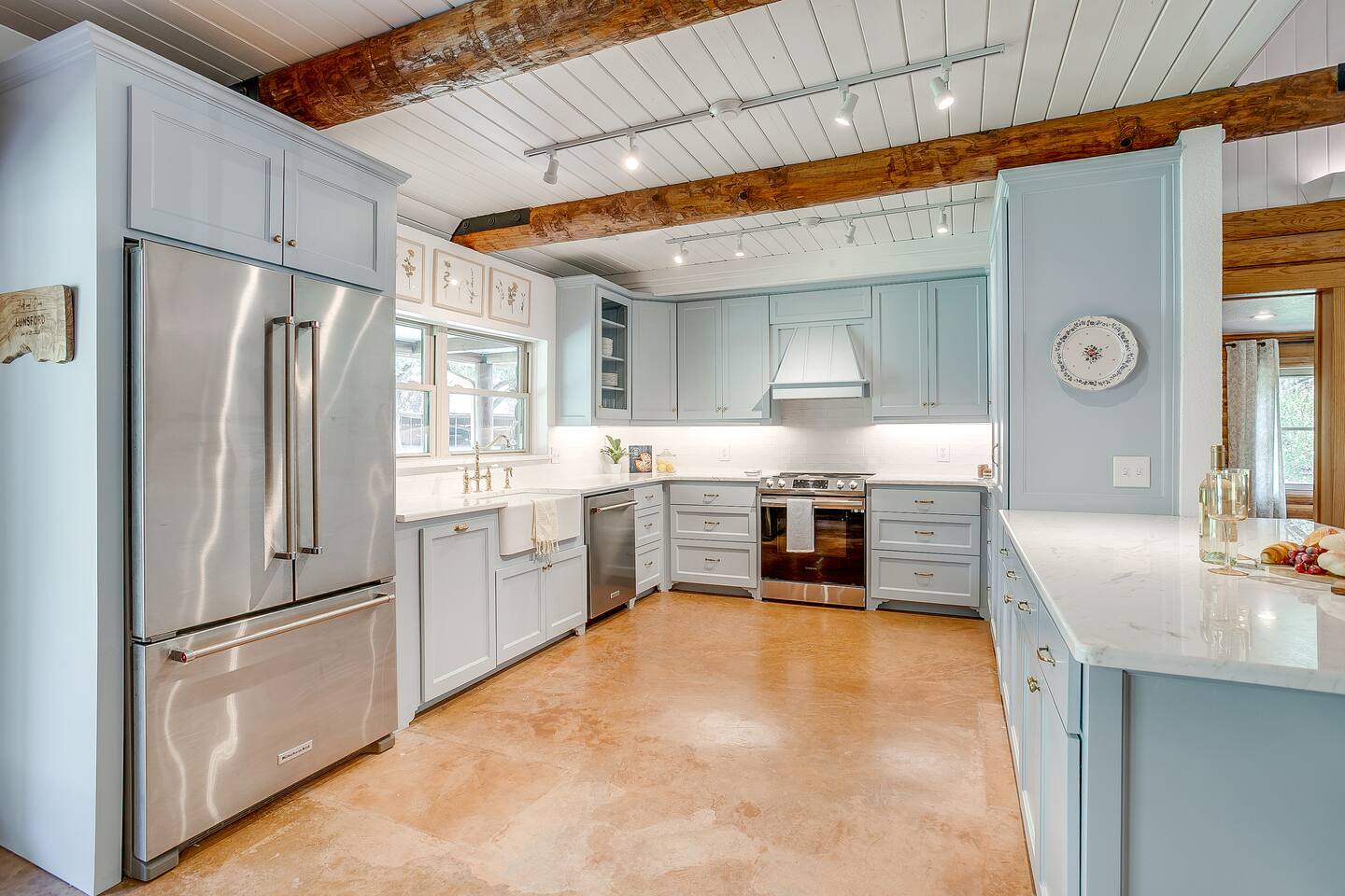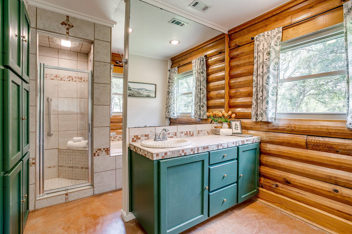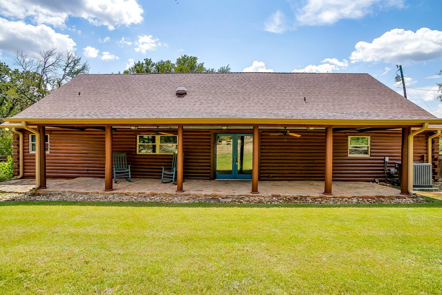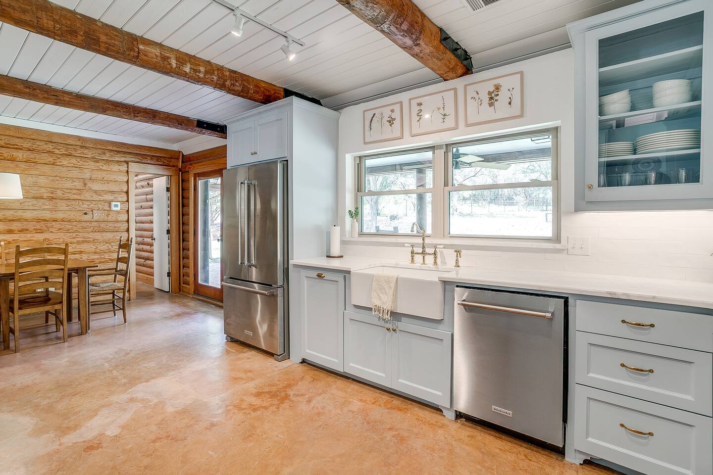 Escape to Pleasant Valley Cabin, your serene log-cabin retreat nestled among towering trees just outside Weatherford. This lovingly remodeled four-bedroom, two-and-a-half-bath haven blends rustic charm with modern comfort, featuring a grand open living area with soaring ceilings, log beams, and a cozy wood-burning stove. With a stylish sky-blue kitchen, spacious common spaces, and tranquil bedrooms overlooking nature, it’s the perfect setting to relax, recharge, and reconnect.