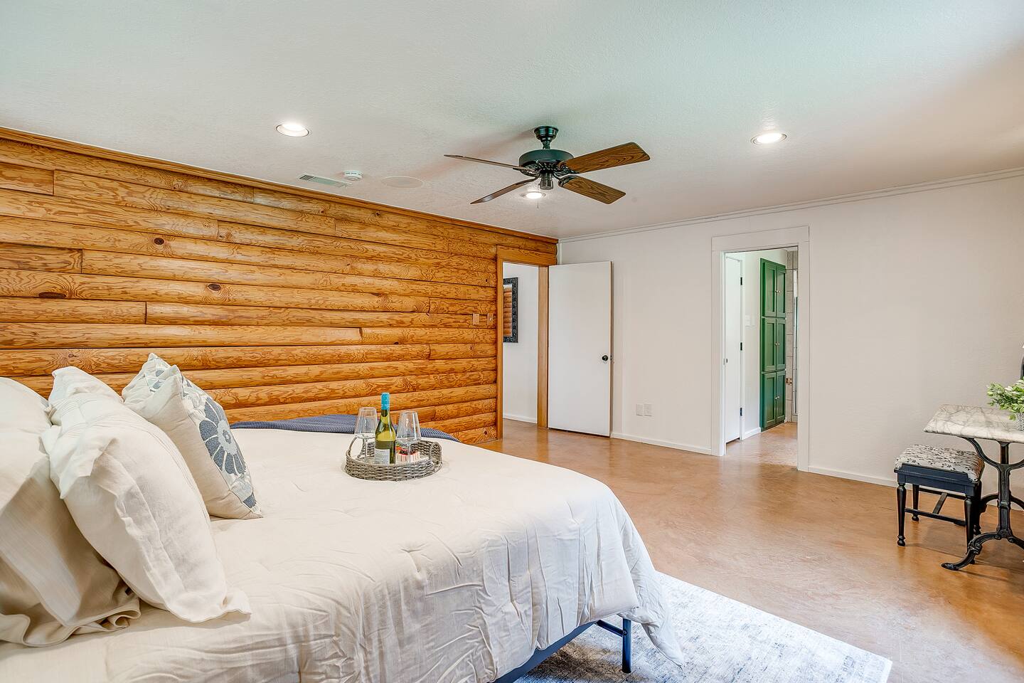 Nestled in the South Hills Estates neighborhood, this home sits on nearly two acres of wooded, tranquil land, blending serene country living with convenient access to town. The setting feels private and peaceful—surrounded by gentle trees, open spaces, and just a short drive to town. Located about 3.5 miles south of Interstate-20, you’ll enjoy the calm of country life while being just 10 minutes from downtown Weatherford. That means easy access to local shops, dining, parks, and the charm of town without compromising on privacy. Guests can expect a warm, quiet retreat—a wooded, elegant cabin escape that offers both peaceful seclusion and quick access to city amenities.