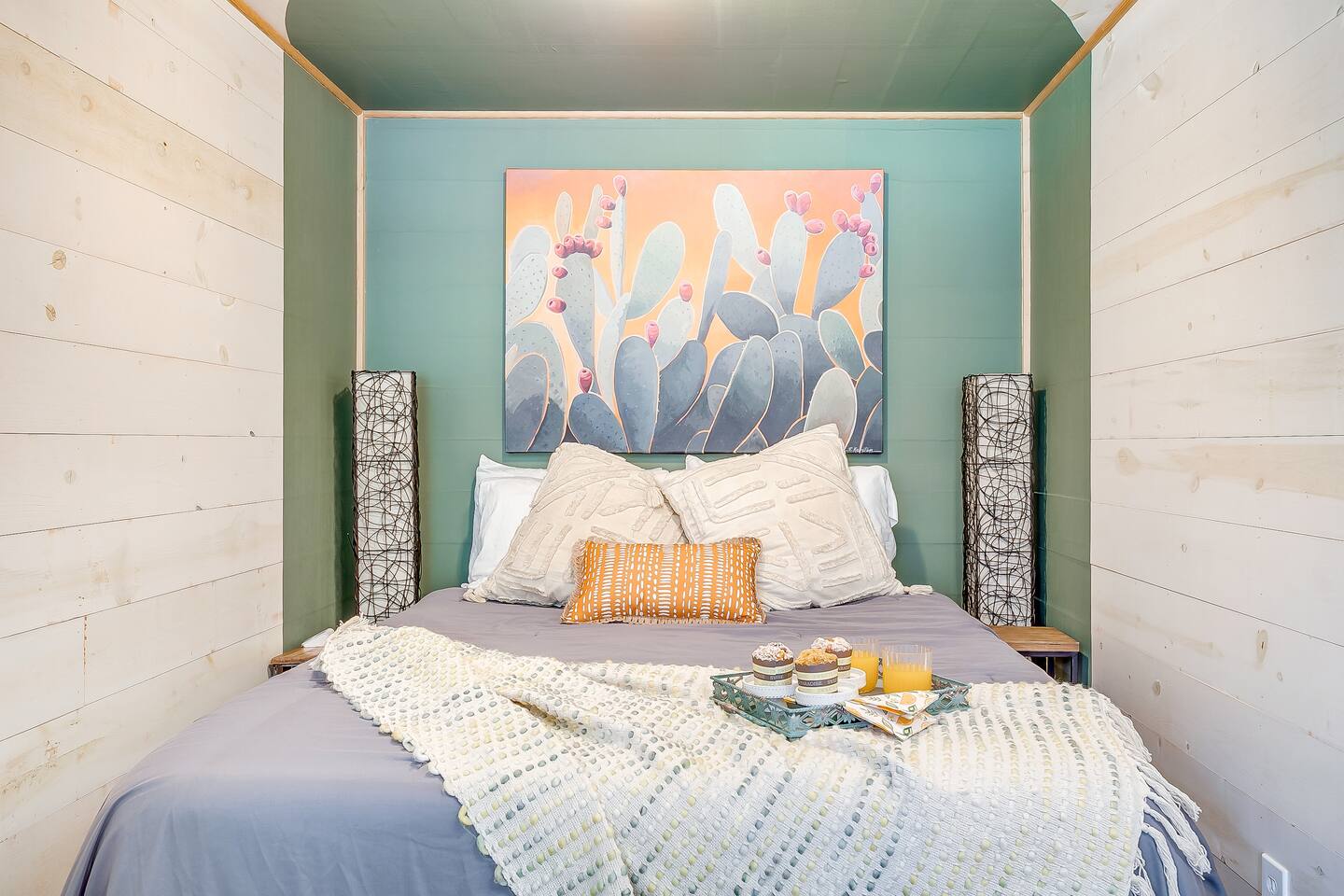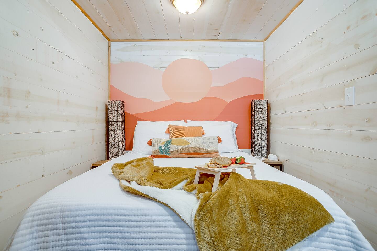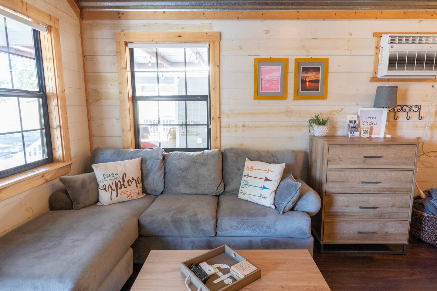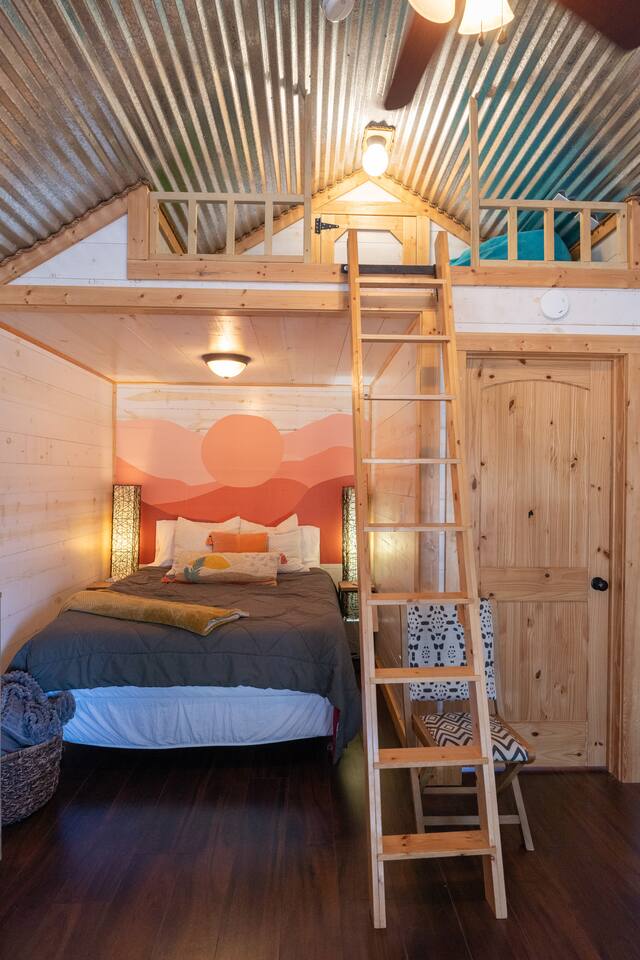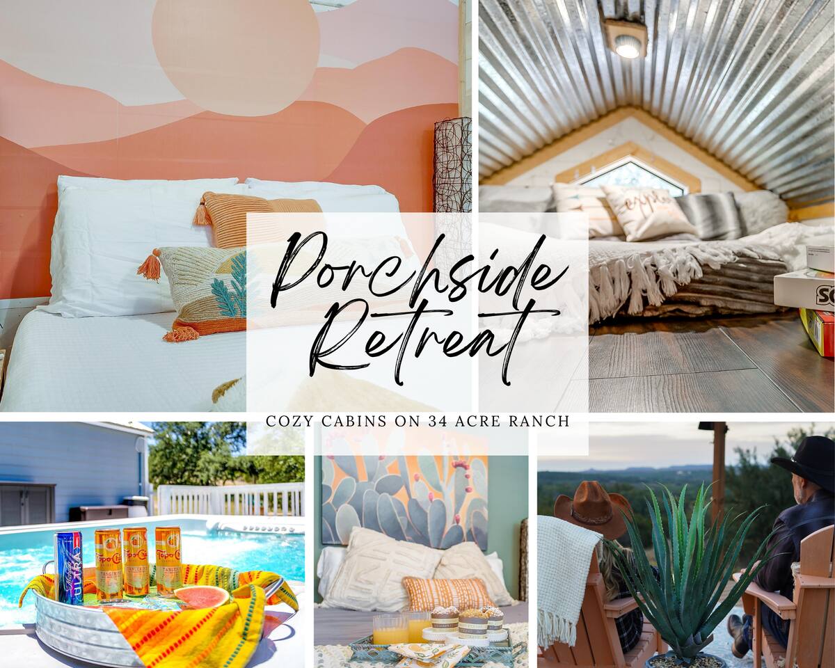 Welcome to Porchside Retreat at Skyview Ranch—where two cozy cabins nestle in a tranquil 3-acre valley for the ultimate private escape. Cactus Cottage and Sunset Shack are linked by a covered porch, offering a perfect space to relax, reconnect, and savor the beauty of the great outdoors. Guests enjoy exclusive access to a private Swim Spa Deck, complete with a soothing swim spa, Weber grill, pizza oven, and sun loungers—ideal for soaking in the fresh air and breathtaking scenery, all in total comfort. Unwind with shared access to a fishing pond, game arena, hiking trails, and the Sunset Deck, perfect for enjoying stunning views and outdoor activities. Guest Capacity Comfortably accommodates 6 adults and 4 children. Sunset Shack This cozy 300-square-foot cabin is ideal for couples or individuals, featuring a queen-sized bed, a kid's loft accessible by ladder, and a full bathroom. The kitchenette includes a refrigerator, Keurig coffee machine, electric hot plate, and microwave. Sunset Shack sleeps 2 adults and 2 children. Cactus Cottage Another cozy 300-square-foot cabin perfect for couples or individuals, offering a queen-sized bed, a daybed with a twin trundle, a kid's loft with ladder access, a full-sized refrigerator, and a full bathroom. The kitchenette includes a refrigerator, Keurig coffee machine, electric cooktop, toaster, and microwave. Cactus Cottage sleeps 2 adults and 4 children. Covered Porch Between your cabins is a covered porch we’ve dubbed the “Dog Porch” with ample seating for you and your party to relax in the shade. There is a patio egg chair to swing away in and a large Connect 4 game to enjoy. At night, this space is decorated with string lights for the perfect setting. Exclusive Swim Spa Deck Guests enjoy exclusive access to the Swim Spa Deck, featuring a 17-foot Hydropool Swim Spa, sun loungers, a propane Weber Grill Seasonal Swim Spa Temperatures May through September: Pool temperature October through April: 90 degrees, adjustable to your desired hot tub temperature upon arrival. Picnic Area and Fire Pits Just outside of your cabins is a large area with a series of picnic tables to relax and enjoy meals outdoors. This space is heavily shaded by large trees with a swing chair. There is also a Solo Stove firepit stocked with wood ready for smores or an open fire to gather around. Shared Outdoor Spaces Guests at Porchside Retreat share the fishing pond, game arena, hiking trails, and Sunset Deck with other guests on the property. We’ve added a kayak, paddleboard and fishing poles on the Dog Porch for your personal use during your stay. There are cornhole boards in the Game Arena which is directly behind the cabins. The cornhole beam bags are in a sack that is tied to the horseshoe pit. Pet-Friendly Our property is dog-friendly! We allow up to 2 dogs per stay. Pets must be included in your guest count, and a non-refundable pet fee will be charged. Please keep them off the furniture and respect other guests. Larger Groups For larger groups, rent all three cabins or the entire ranch, which includes access to the boutique hotel and swimming pool. Search for Skyview Ranch in Bluff Dale, TX. Extra Guests If you'd like to accommodate extra company, feel free to pitch a tent in the nearby camping spot we have set up for you. Events Event hosting is allowed only when the entire ranch is booked. We're ready to help you organize your full ranch event, from corporate gatherings to weddings, with our award-winning chefs. Message us for more details. Photography Sessions With incredible views, Skyview Ranch is perfect for family photos. Message us about our recommended photographer! Convenient Location Historic Granbury Square: 15 minutes Glen Rose: 15 minutes Stephenville: 15 minutes