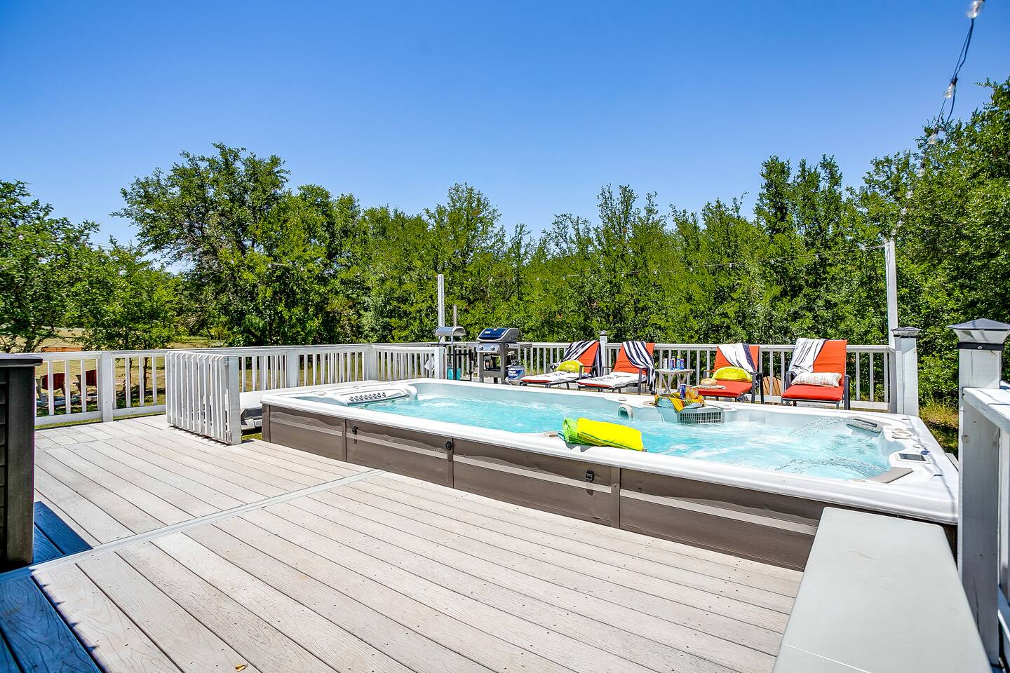 Book today! Take a few nights away from city life to relax and recharge! With this double cabin rental, you will get to enjoy the entire ranch, 17 foot long Swim Spa, fish-stocked pond and hiking trails. Ready to reconnect with yourself & with nature? This is the PERFECT place to escape the hustle & bustle of life and enjoy big open skies, rolling land, and incredible 360 degree views.