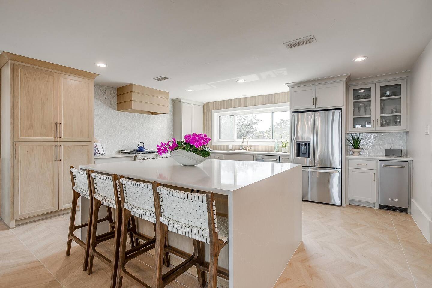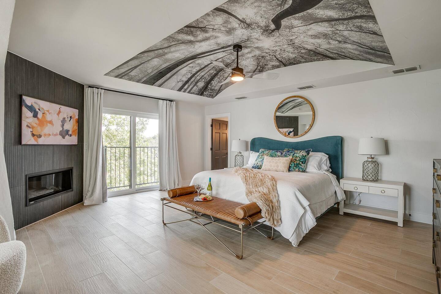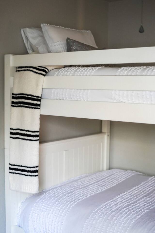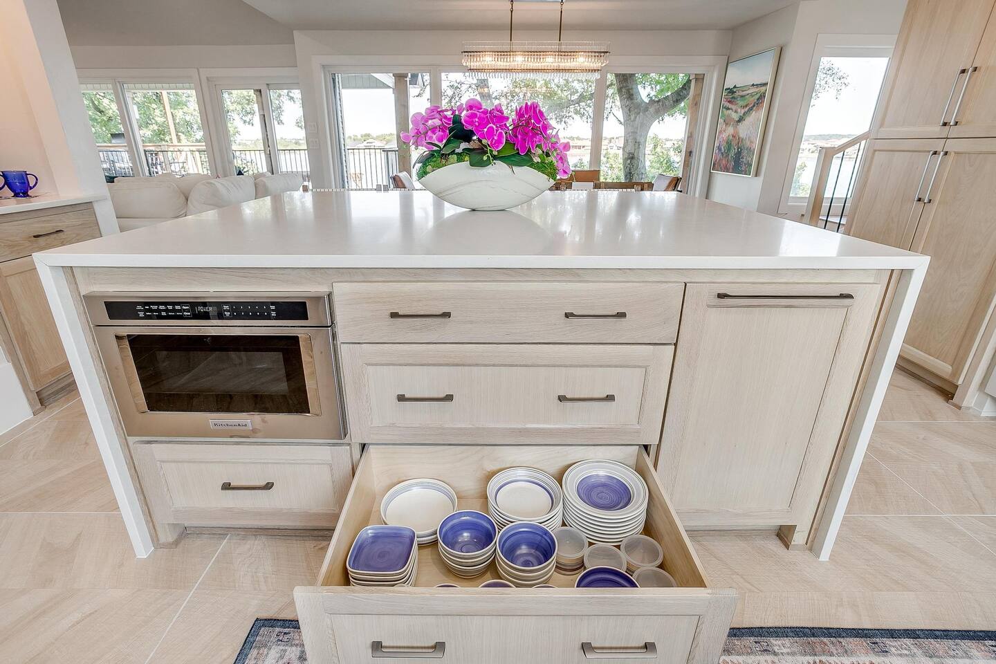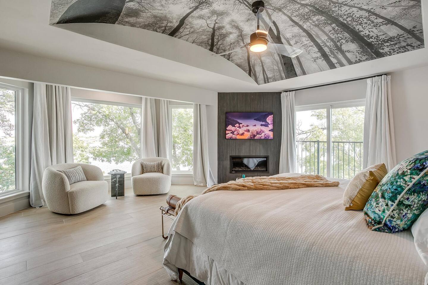 Welcome to Rough Creek Falls—your private lakefront escape tucked away in a peaceful cul-de-sac. This beautifully remodeled 4-bedroom retreat features 2 full and 2 half bathrooms, custom design touches, and sweeping water views. With space to comfortably host up to 12 guests, it’s the perfect setting for family vacations, group getaways, or a restful recharge surrounded by nature and style. Outdoor Spaces: Arrive to a long driveway that fits 6 vehicles, with additional street parking available. The front yard features a grassy area shaded by large trees. Step onto the front porch that flows into a large wrap around deck complete with Lake Granbury views, a hot tub, Adirondack chairs, a small balcony with an outdoor dining table for 4, and a comfortable couch—all overlooking scenic Lake Granbury. The deck extends to the back of the house, revealing a large pergola-covered dining area with seating for 8, a wood-burning firepit surrounded by Adirondack chairs, and a grill. Follow the stone path along the home and pass the beautiful waterfall feature as you make your way down to the private boat dock. Here, you’ll find a shaded area with fans and seating for two, perfect for fishing or soaking in the views. Please note: The boat parked on site is off-limits to guests, but you’re welcome to enjoy the dock. Additionally, the water near the dock can have rougher conditions, especially for kayaks or paddleboards. We recommend extra caution for those using these, especially inexperienced paddlers. Additionally, the water is very deep immediately off the dock, making it less suitable for wading but great for diving and boating. Main Level: Upon entering the home, you’ll find a welcoming entryway that flows into the butler’s pantry and a colorful half bath featuring a washer and dryer and a unique blue concrete sink. The adjoining gourmet kitchen is fully stocked and features a large gas stove, full-sized refrigerator, wine fridge, ice maker, coffee station, and a spacious island with additional bar seating. It’s perfect for family meals and entertaining! The dining area features a custom solid white oak table that seats 8 under a stunning chandelier, offering panoramic lake views. The adjacent living room includes a large sectional, a fun blue accent chair, and a Samsung Frame TV. Note: The fireplace in the living room is not available for use. Just off the dining area is the master suite, featuring a king-sized bed, electric fireplace, Samsung Frame TV, and a bay window seating area with lake views. The en-suite bathroom includes dual vanities, a walk-in shower, and a spacious walk-in closet—perfect for extended stays. Lower Level: Downstairs, the second living area is perfect for groups or families, featuring two custom-built double sized bunk beds, a cozy sectional sofa, a half bath, and a Samsung Smart TV. There’s a game cabinet filled with board games, a card table for 4, and a desk area for anyone needing a dedicated workspace. The dark, moody decor and vintage accents like framed newspaper clippings and an antique gumball machine give the space a unique personality! Upper Level: The upper level hosts three beautifully decorated bedrooms: - Bedroom 1: Double bunk bed, ideal for families or groups needing flexible sleeping arrangements. - Bedroom 2: Queen bed with closet space and cozy decor. - Bedroom 3: Queen bed with gorgeous lake views—wake up to stunning water vistas every morning! The shared full bathroom features a shower/tub combo and a spacious vanity to accommodate everyone’s needs. Key Details: - Sleeping Arrangements: 4 bedrooms plus additional sleeping space in the lower-level lounge. - Bathrooms: 2 full and 2 half bathrooms. - Parking: Long driveway fits 6 vehicles; additional parking on the street. - Outdoor Amenities: Hot tub, large deck, pergola dining area, firepit, grill, Blackstone, and private boat dock. - Indoor Amenities: Gourmet kitchen, Samsung Frame TVs, game cabinet, and dedicated desk space. - Fireplaces & Boat Use: Fireplaces and boat are not available for guest use. - Wi-Fi & Entertainment: High-speed internet throughout the home. Perfect for Any Occasion: Whether you’re looking to enjoy mornings on the porch, gather for meals under the pergola, fish off the dock, or explore Lake Granbury, Rough Creek Falls has something for everyone. Book now and create memories at this one-of-a-kind lakeside retreat!