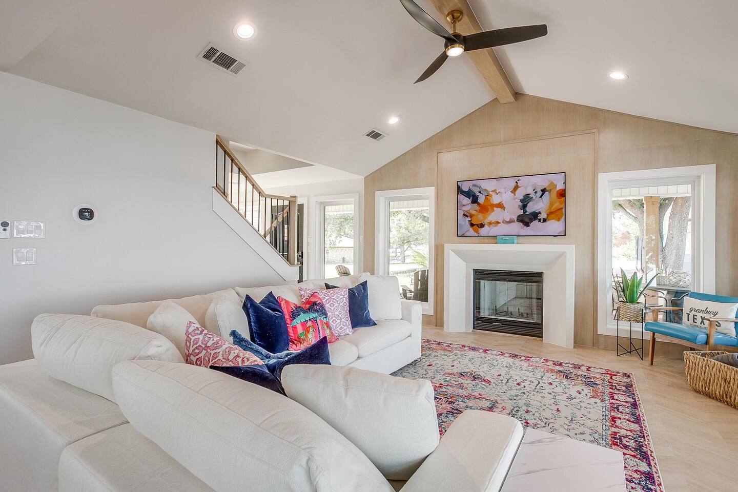 Escape to Rough Creek Falls, a stunning 4-bedroom lakefront retreat with breathtaking views, and endless charm. Enjoy morning coffee on the deck, relax in the hot tub under towering trees overlooking Lake Granbury or fish off the private dock. With a gourmet kitchen, 2 full and 2 half bathrooms, and multiple entertainment areas, it’s perfect for gatherings. Whether you’re here for adventure or relaxation, this newly remodeled oasis has everything you need for an unforgettable stay