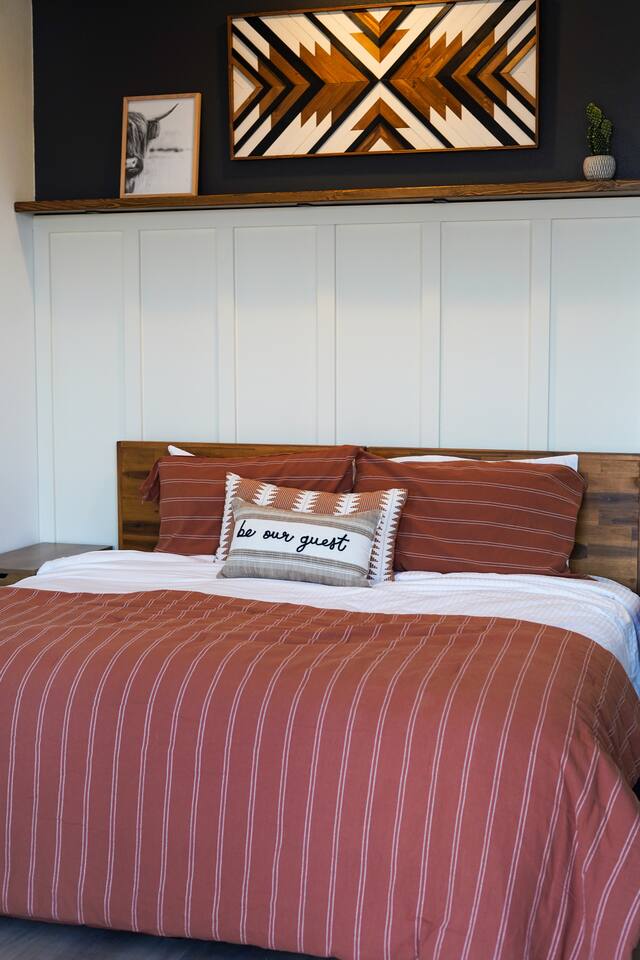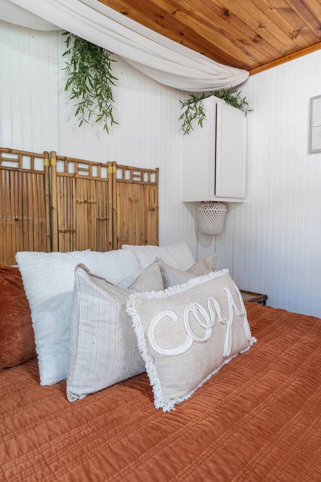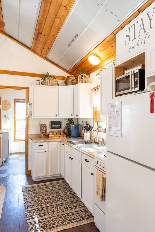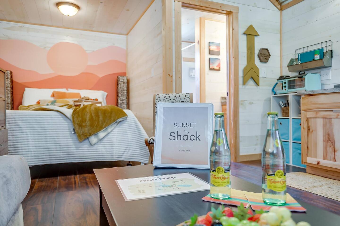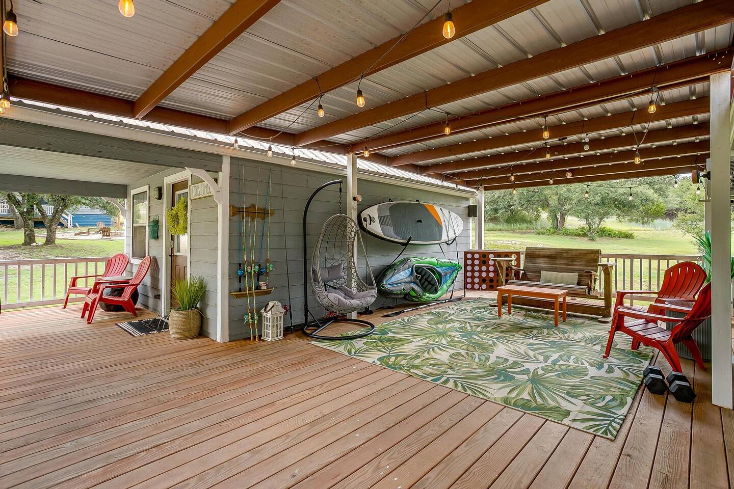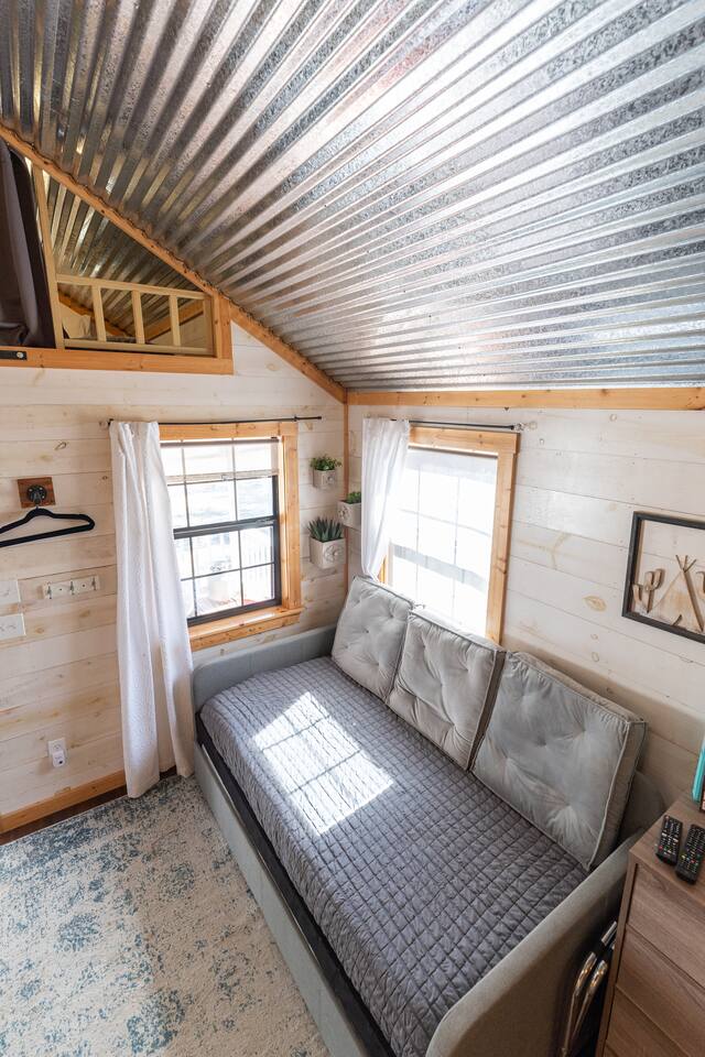 Wake Up in a Rustic Paradise... Picture waking up to the chirping of birds, enjoying the serenity of a picturesque valley filled with trees and charming landscapes. Nestled in the heart of the ranch, you'll find: Casa Blanca: When you enter our Ranch, Casa Blanca is your first stop! This newly built casa Blanca home boasts 5 King Suites and a Grand Hall. Each Villa features a kitchenette with fridge, mini freezer, full en-suite bathroom with shower, couch and eating area. The Grand Hall, which we've dubbed "The Gathering Room" boasts a large open space for your party to come together to cook meals in our brand new kitchen, fuel at our coffee bar, and eat at our large 10- seat dining table. The 32’ pool can be found just out the backyard. Additional sleeping accommodations: There are 4 twin-size air mattresses stored in the laundry room. These are available for guests to set up as needed—perfect for children or to accommodate additional guests in the Gathering Room or any of the Villas. Bed Configuration Option King beds in Villas 2, 3, 4, and 5 can be separated into twin beds prior to your arrival for a $50 per room fee. Please note, due to mattress toppers, this service may be unavailable after check in. Next, If you take the gravel road passed Casa Blanca, you will find a 3 acre valley with 3 COZY CABINS: Your first Cabin is Bamboo Bungalow A cozy 350 square foot getaway, perfect for couples or individuals. Inside you'll find a Bamboo oasis with a fully equipped kitchen and a comfortable king-sized bed. You can also relax outside on the wrap-around deck, rocking chairs, grill your favorite meat on the Weber gas grill, and savor your meal at the shaded picnic table. A stone's throw down the gravel road from Bamboo Bungalow is Cactus Cottage and Sunset Shack. These two cabins are connected by an ample 800 square foot covered deck where you can relish quality time with family while keeping an eye on the kids. Cactus Cottage You'll find the Cactus Cottage tailored to families with adorable Cactus décor complete with a comfy queen-sized bed, a day bed & trundle bed, and two adorable lofts perfect for the young ones. At night, peek out the bunk windows to catch a glimpse of the wildlife. There is a full sized bathroom with a shower/tub combo and single sink, as well as a kitchenette with full sized refrigerator. Sunset Shack The cozy Sunset Shack is outfitted with Sunset vibes décor! Inside you'll find a newly upgraded queen sized bed and comfortable sectional sofa. Above the living space, there is a ladder access to two more lofts with bean bags and coloring supplies, making it an ideal spot for a small family. A kitchenette boasts all the amenities you'll need (Keurig, Mini Fridge, Electric Cooktop) as well as a full bathroom with sink and vanity. Skyview Ranch Outdoor Amenities: 32’ pool Hydropool Swim Spa: When you need to cool off from the Texas heat, our 17 ft. long and 8 ft. wide hydro swim spa provides both swim and spa options in one delightful experience. Hiking: Hike through endless trails on the full 34 acre ranch and explore the beauty of our peaceful surroundings. Game Arena: We also offer exciting recreational activities such as our game arena with a horseshoe pit, tetherball court, and comfy seating. Fire Pits: We have a new updated stone firepit with swinging hammock chairs and 6 Adirondack chairs perfect for roasting smores under the starry night skies. Fishing: Bring your fishing poles as the pond off the dock is fully stocked! Outdoor Dining: If you're in the mood for a delightful picnic, you'll love our tree-shaded area featuring four picnic tables with enough seating for 24 and enchanting string lights. And don't forget to take a moment to relax on our inviting swing - it's pure magic! Pets: Our property is dog friendly! We allow dogs during your stay for a non-refundable $75 pet fee per pet. EV Charger: Tesla EV charger is installed and easily accessible to guests. Events: Events welcome! Inquire for pricing. Don't hesitate to contact us to find out more. Photography Sessions: With the incredible views at Skyview Ranch, it is a great place to take family photos! Message us about our recommended photographer! Pizza Oven Package: Ask us about our outdoor Pizza Oven package to be able to make your own individual sized 8" pizzas! How far it is to.... Granbury: Historic Granbury Square: 4.6 miles Glen Rose: Fossil Rim Wildlife Center: 12 miles Dinosaur Valley State Park: 13 miles Big Rocks Park: 15 miles Stephenville: Hard Eight BBQ: 23 miles Hico: Wiseman House Chocolates: 22 miles Fort Worth Historic Fort Worth Stockyards: 64 miles