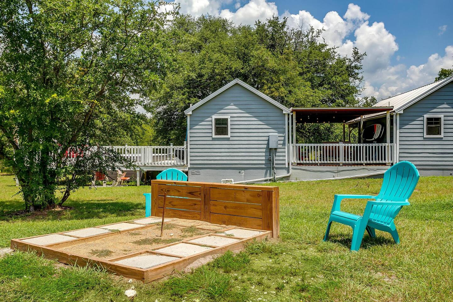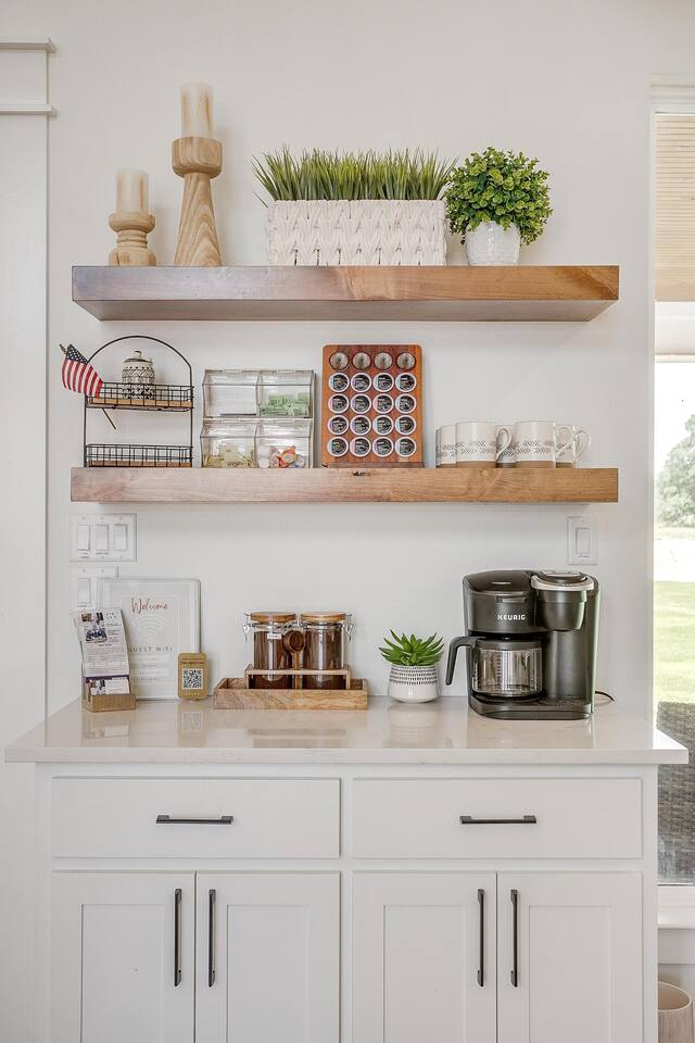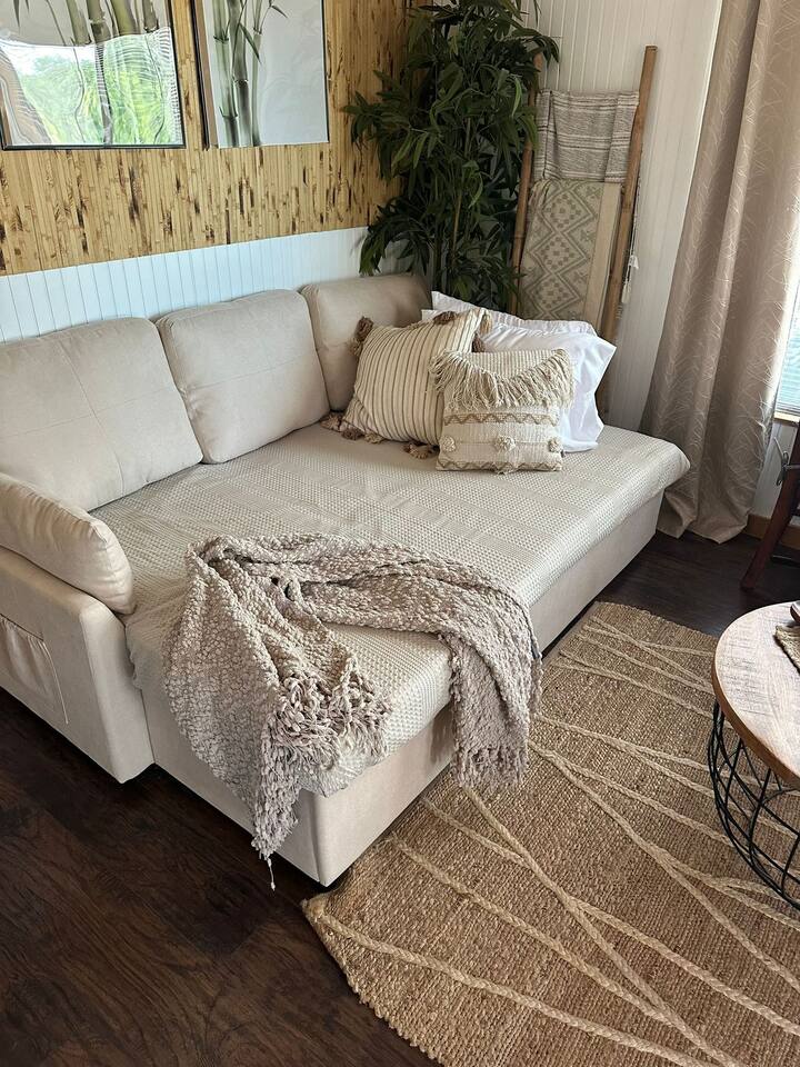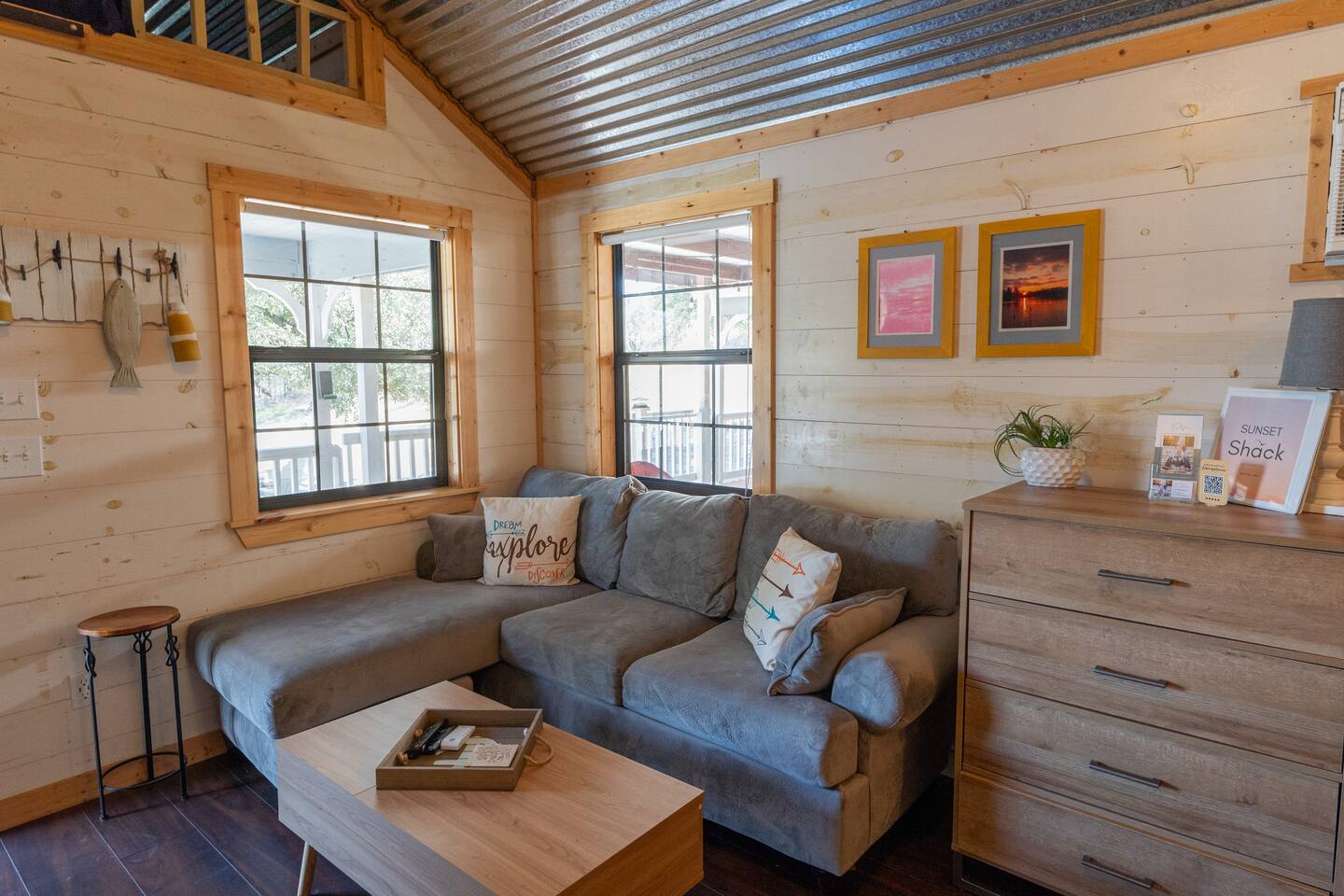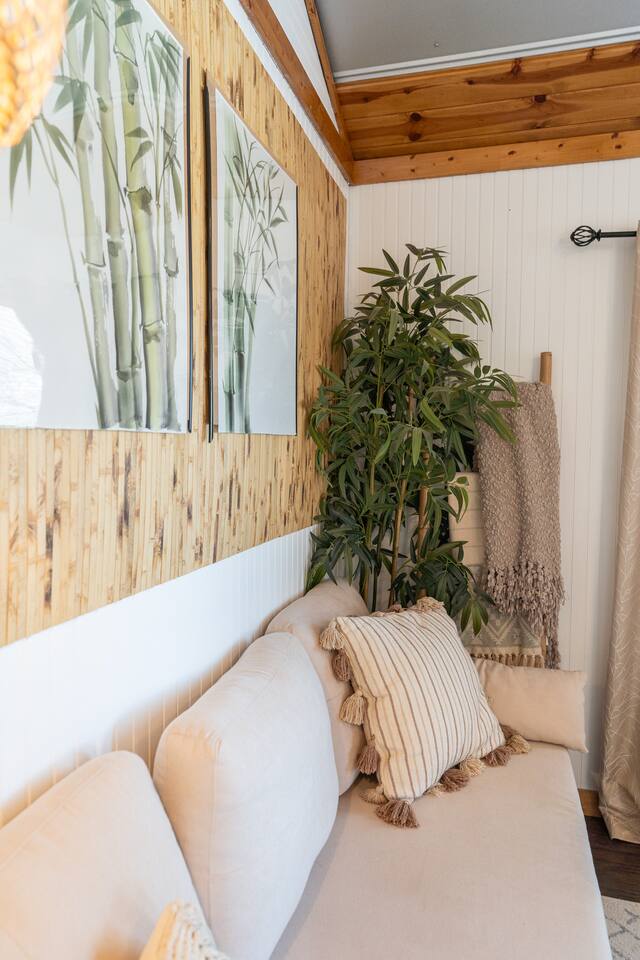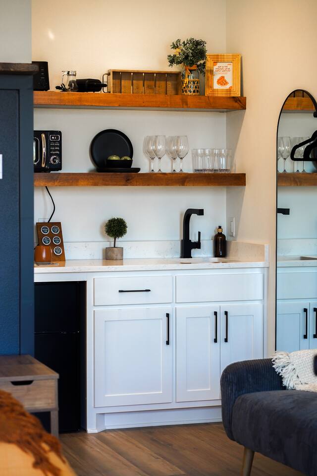 Wake Up in a Rustic Paradise... Picture waking up to the chirping of birds, enjoying the serenity of a picturesque valley filled with trees and charming landscapes. Nestled in the heart of the ranch, you'll find: Casa Blanca: When you enter our Ranch, Casa Blanca is your first stop! This newly built casa Blanca home boasts 5 King Suites and a Grand Hall. Each Villa features a kitchenette with fridge, mini freezer, full en-suite bathroom with shower, couch and eating area. The Grand Hall, which we've dubbed "The Gathering Room" boasts a large open space for your party to come together to cook meals in our brand new kitchen, fuel at our coffee bar, and eat at our large 10- seat dining table. The 32’ pool can be found just out the backyard. Additional sleeping accommodations: There are 4 twin-size air mattresses stored in the laundry room. These are available for guests to set up as needed—perfect for children or to accommodate additional guests in the Gathering Room or any of the Villas. Bed Configuration Option King beds in Villas 2, 3, 4, and 5 can be separated into twin beds prior to your arrival for a $50 per room fee. Please note, due to mattress toppers, this service may be unavailable after check in. Next, If you take the gravel road passed Casa Blanca, you will find a 3 acre valley with 3 COZY CABINS: Your first Cabin is Bamboo Bungalow A cozy 350 square foot getaway, perfect for couples or individuals. Inside you'll find a Bamboo oasis with a fully equipped kitchen and a comfortable king-sized bed. You can also relax outside on the wrap-around deck, rocking chairs, grill your favorite meat on the Weber gas grill, and savor your meal at the shaded picnic table. A stone's throw down the gravel road from Bamboo Bungalow is Cactus Cottage and Sunset Shack. These two cabins are connected by an ample 800 square foot covered deck where you can relish quality time with family while keeping an eye on the kids. Cactus Cottage You'll find the Cactus Cottage tailored to families with adorable Cactus décor complete with a comfy queen-sized bed, a day bed & trundle bed, and two adorable lofts perfect for the young ones. At night, peek out the bunk windows to catch a glimpse of the wildlife. There is a full sized bathroom with a shower/tub combo and single sink, as well as a kitchenette with full sized refrigerator. Sunset Shack The cozy Sunset Shack is outfitted with Sunset vibes décor! Inside you'll find a newly upgraded queen sized bed and comfortable sectional sofa. Above the living space, there is a ladder access to two more lofts with bean bags and coloring supplies, making it an ideal spot for a small family. A kitchenette boasts all the amenities you'll need (Keurig, Mini Fridge, Electric Cooktop) as well as a full bathroom with sink and vanity. Skyview Ranch Outdoor Amenities: 32’ pool Hydropool Swim Spa: When you need to cool off from the Texas heat, our 17 ft. long and 8 ft. wide hydro swim spa provides both swim and spa options in one delightful experience. Hiking: Hike through endless trails on the full 34 acre ranch and explore the beauty of our peaceful surroundings. Game Arena: We also offer exciting recreational activities such as our game arena with a horseshoe pit, tetherball court, and comfy seating. Fire Pits: We have a new updated stone firepit with swinging hammock chairs and 6 Adirondack chairs perfect for roasting smores under the starry night skies. Fishing: Bring your fishing poles as the pond off the dock is fully stocked! Outdoor Dining: If you're in the mood for a delightful picnic, you'll love our tree-shaded area featuring four picnic tables with enough seating for 24 and enchanting string lights. And don't forget to take a moment to relax on our inviting swing - it's pure magic! Pets: Our property is dog friendly! We allow dogs during your stay for a non-refundable $75 pet fee per pet. EV Charger: Tesla EV charger is installed and easily accessible to guests. Events: Events welcome! Inquire for pricing. Don't hesitate to contact us to find out more. Photography Sessions: With the incredible views at Skyview Ranch, it is a great place to take family photos! Message us about our recommended photographer! Pizza Oven Package: Ask us about our outdoor Pizza Oven package to be able to make your own individual sized 8" pizzas! How far it is to.... Granbury: Historic Granbury Square: 4.6 miles Glen Rose: Fossil Rim Wildlife Center: 12 miles Dinosaur Valley State Park: 13 miles Big Rocks Park: 15 miles Stephenville: Hard Eight BBQ: 23 miles Hico: Wiseman House Chocolates: 22 miles Fort Worth Historic Fort Worth Stockyards: 64 miles