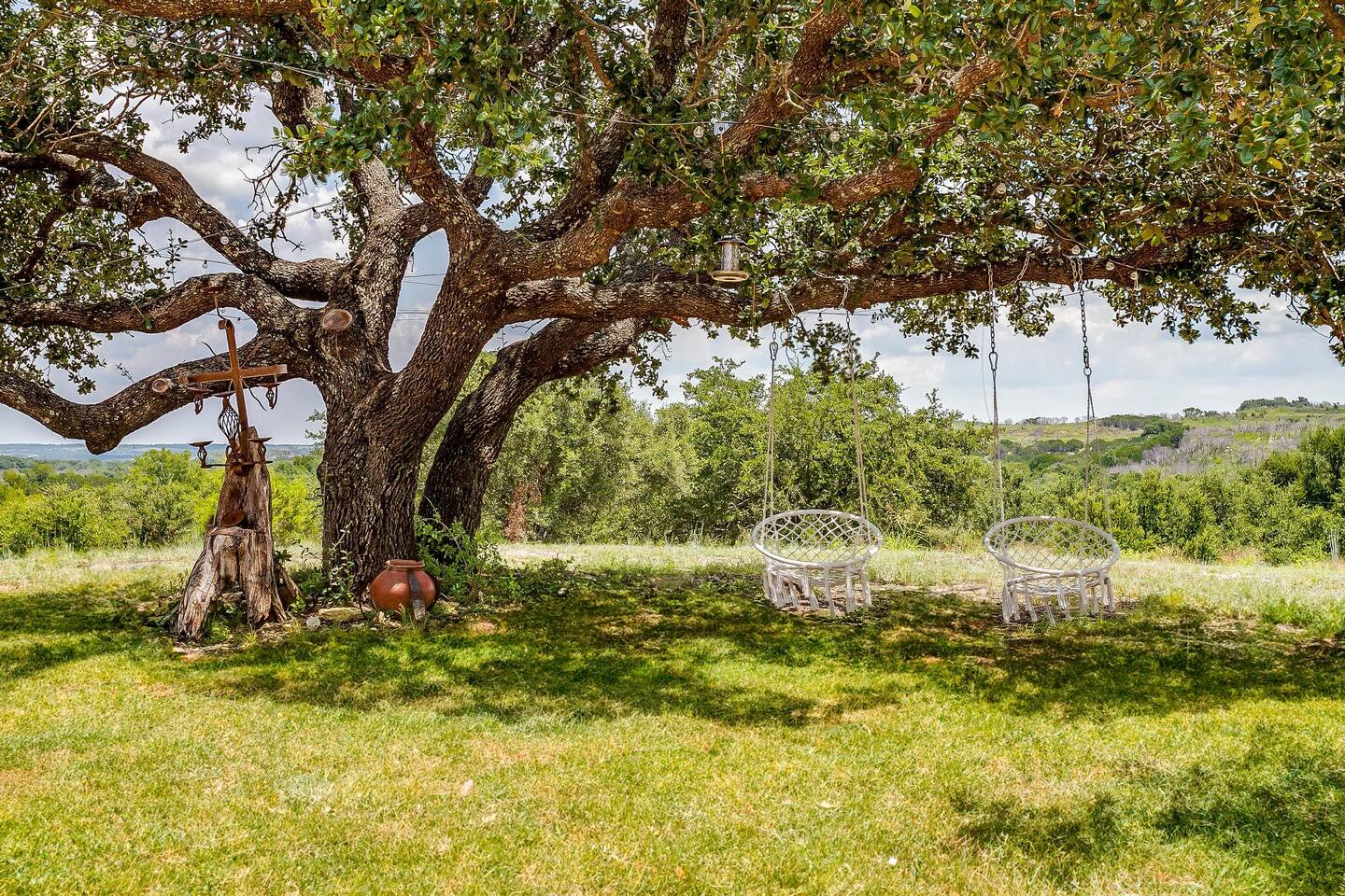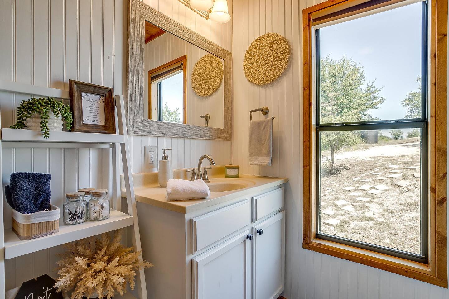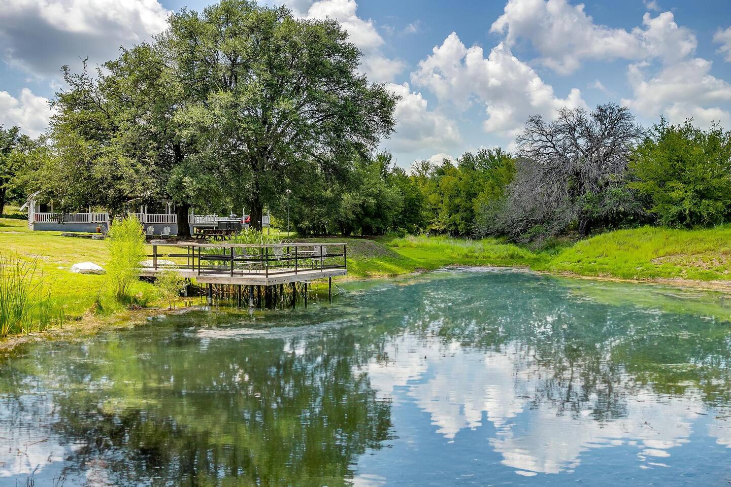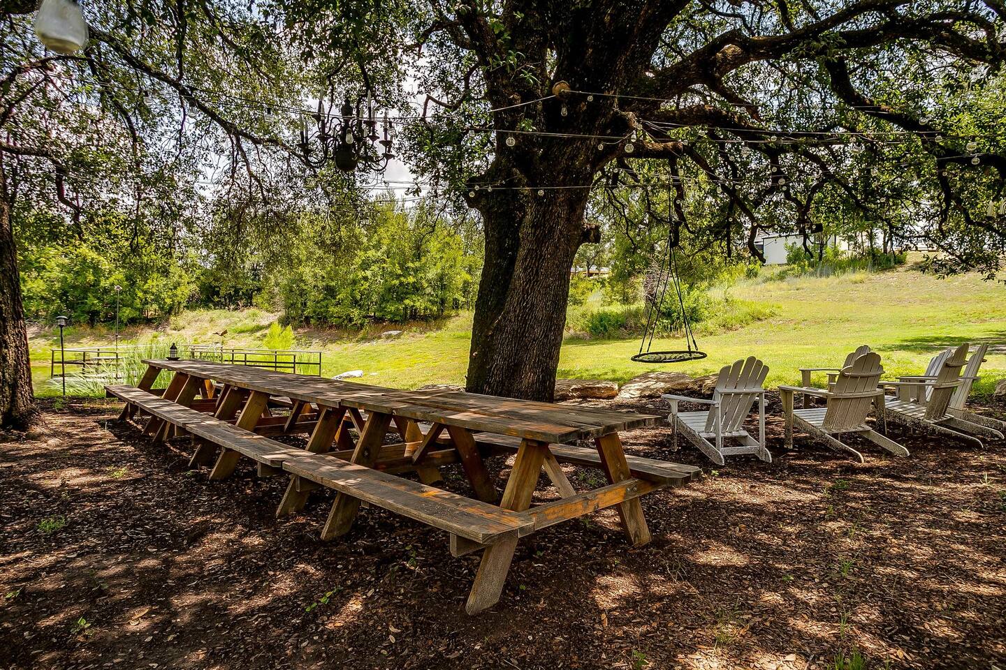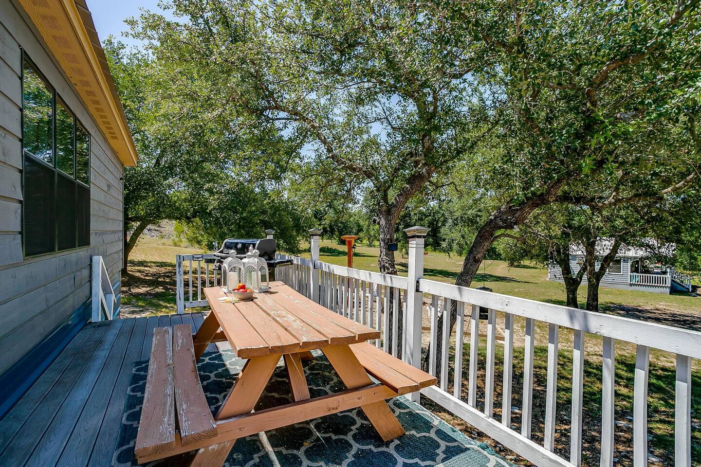 The drive into the property on Farm to Market Road 51, regardless of which side you coming from is a breathtaking drive! Surrounded by lush trees and peaceful farmlands, the beauty of the Texas Rolling Hills does not disappoint! You will be staying at a family ranch on 34 acres outside of city limits.