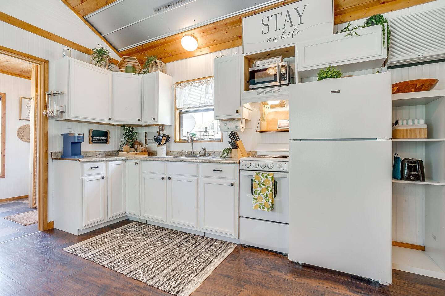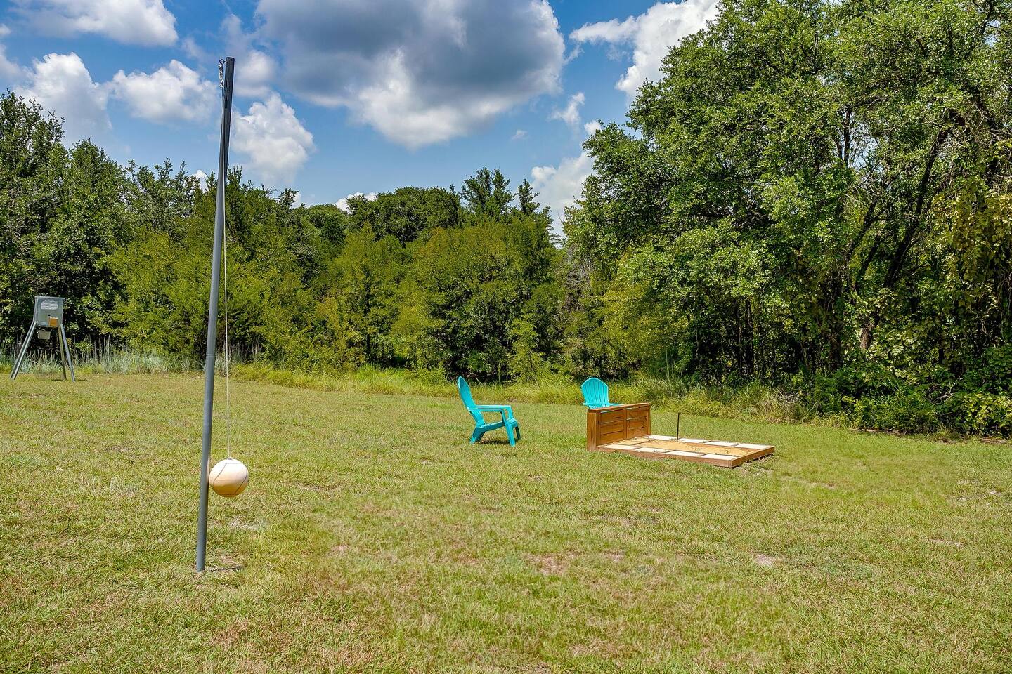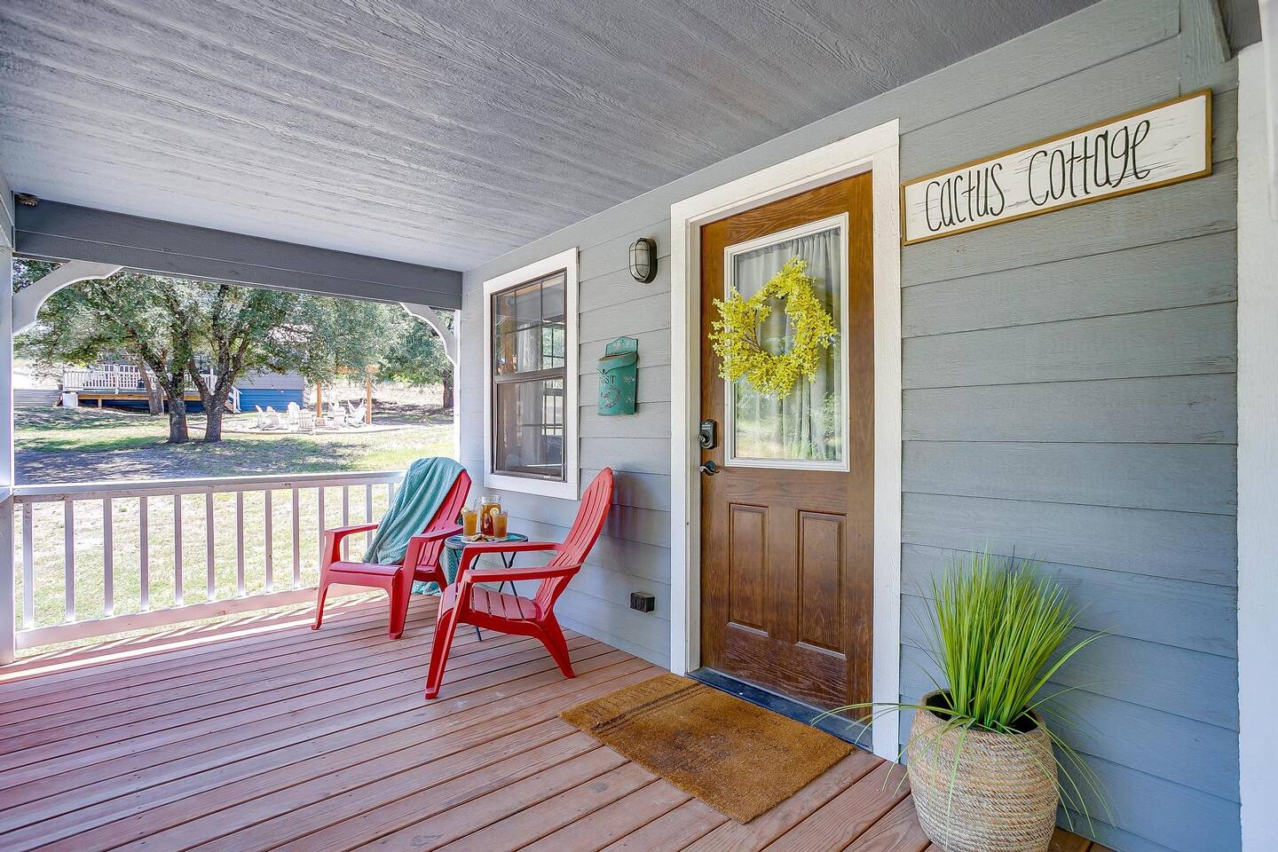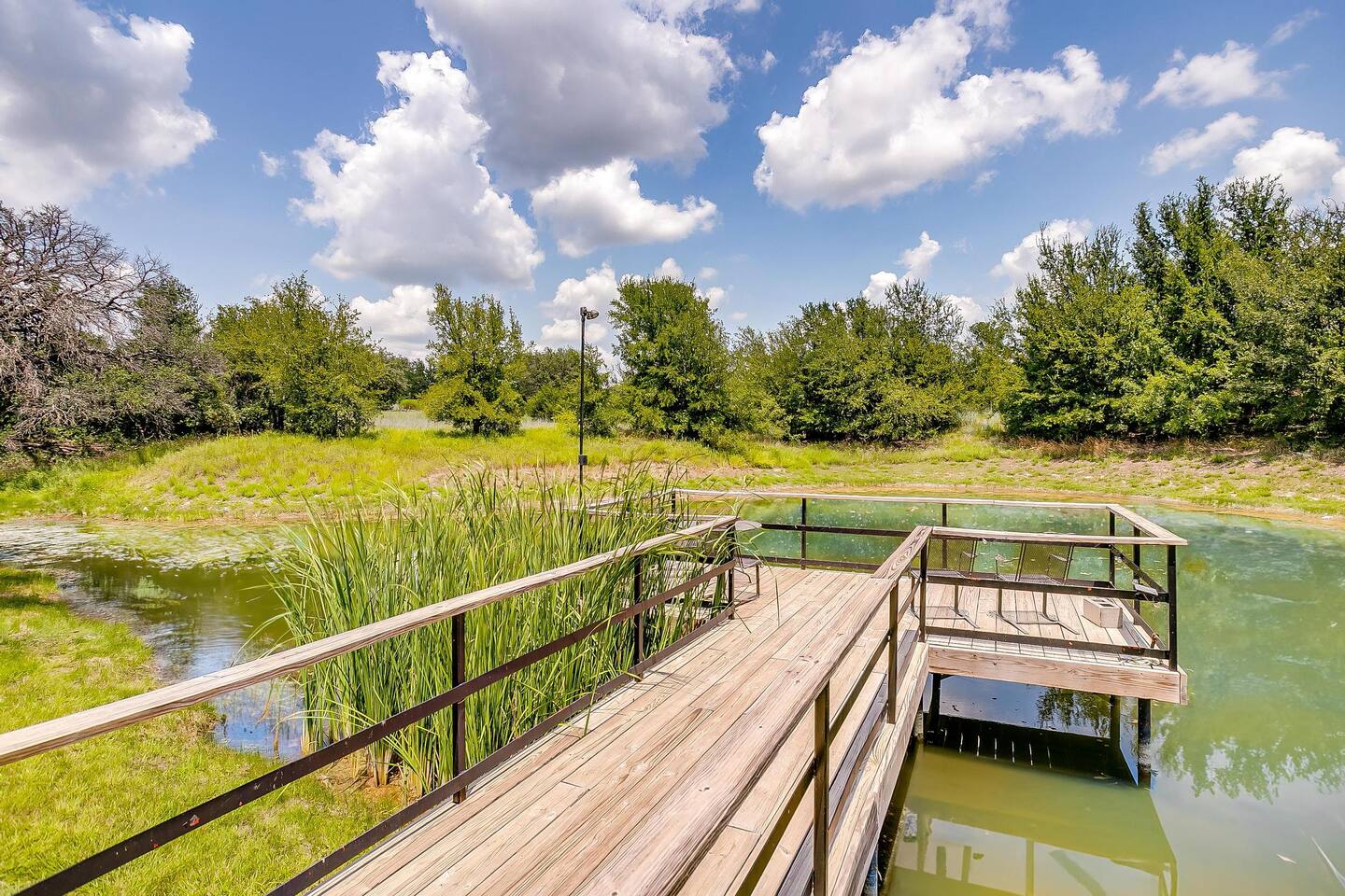The drive into the property on Farm to Market Road 51, regardless of which side you coming from is a breathtaking drive! Surrounded by lush trees and peaceful farmlands, the beauty of the Texas Rolling Hills does not disappoint! You will be staying at a family ranch on 34 acres outside of city limits.