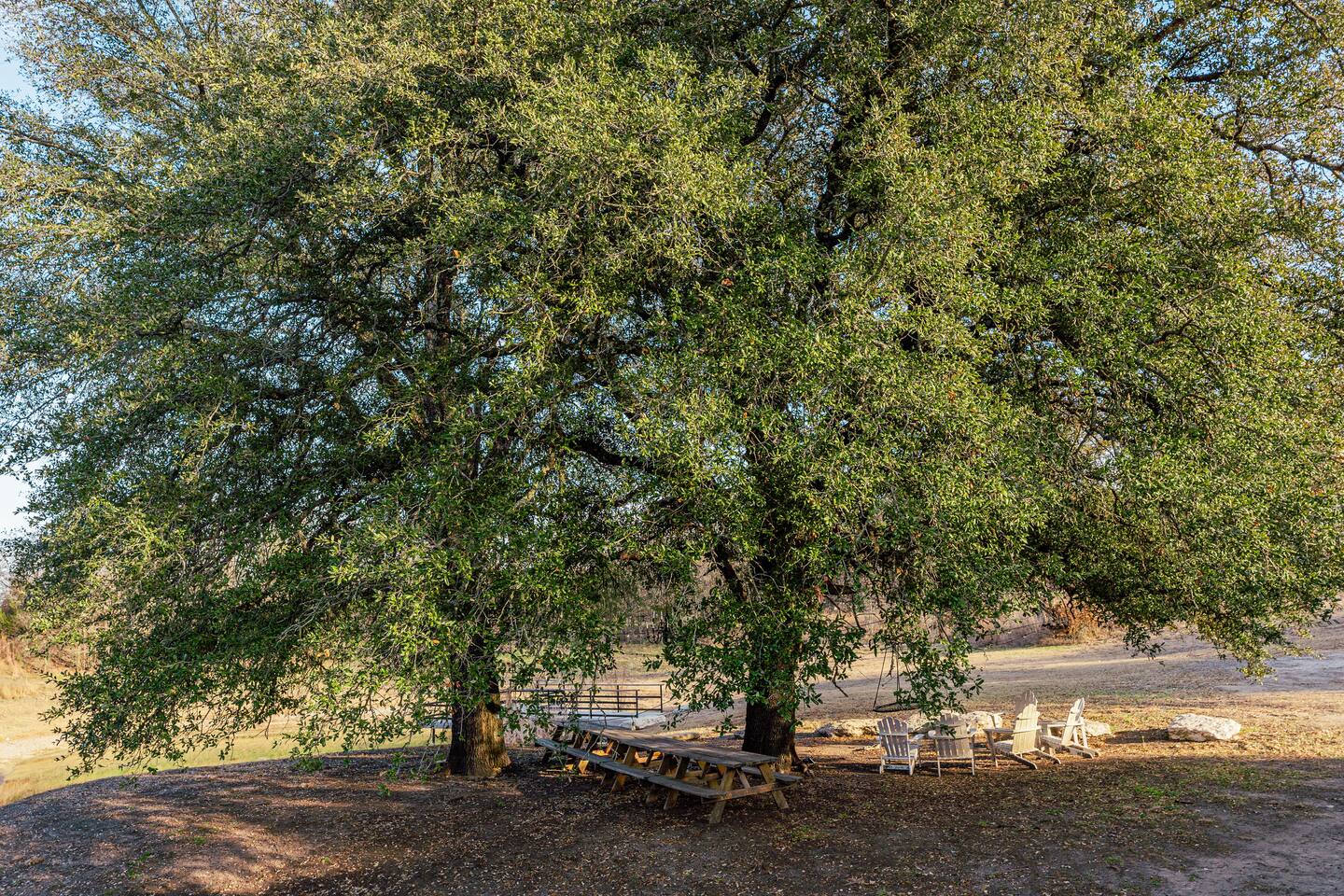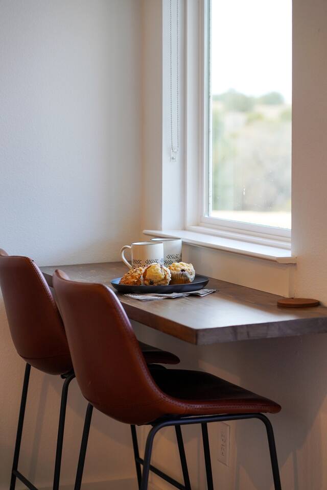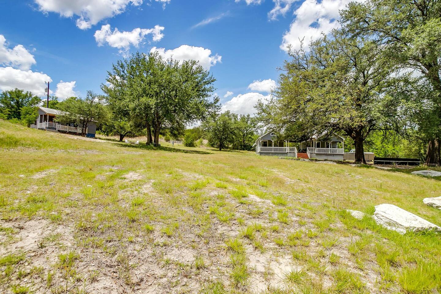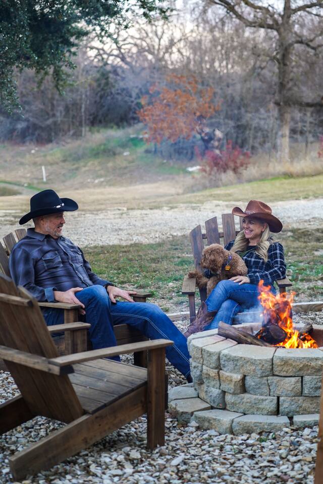 Coming in from either side of Farm to Market Road 51, you would be driving through Texas Rolling Hills with beautiful lush trees, farmlands and peaceful settings. The property is right off of highway 51, only a 10 minute drive to Dinosaur Valley State Park and a 25 minute drive to Historic Granbury Square. As you enter the ranch, you can park on the side of the boutique hotel or follow the gravel road down to the three cabins where you can park in front of or beside each cabin. There is ample space for your entire party to park comfortably.