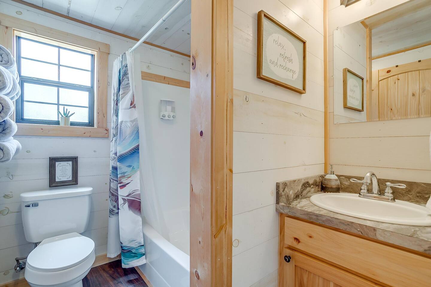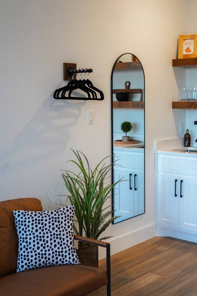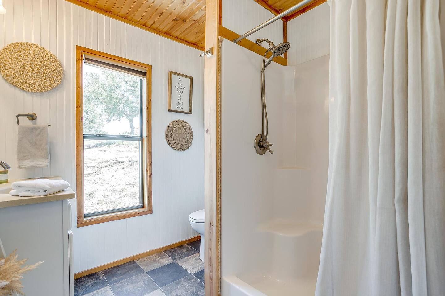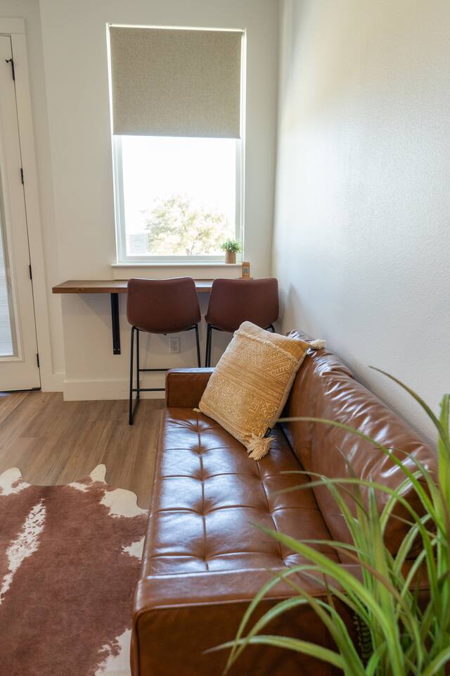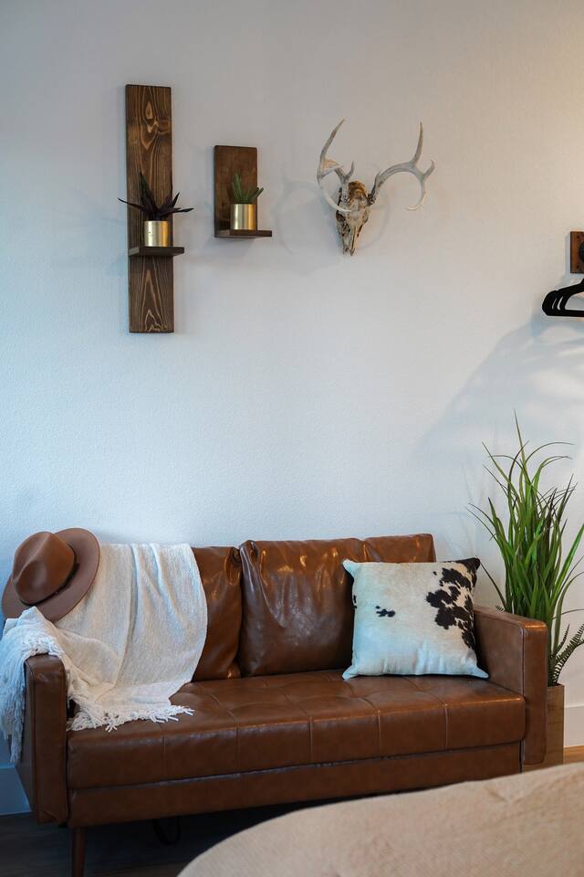 Coming in from either side of Farm to Market Road 51, you would be driving through Texas Rolling Hills with beautiful lush trees, farmlands and peaceful settings. The property is right off of highway 51, only a 10 minute drive to Dinosaur Valley State Park and a 25 minute drive to Historic Granbury Square. As you enter the ranch, you can park on the side of the boutique hotel or follow the gravel road down to the three cabins where you can park in front of or beside each cabin. There is ample space for your entire party to park comfortably.