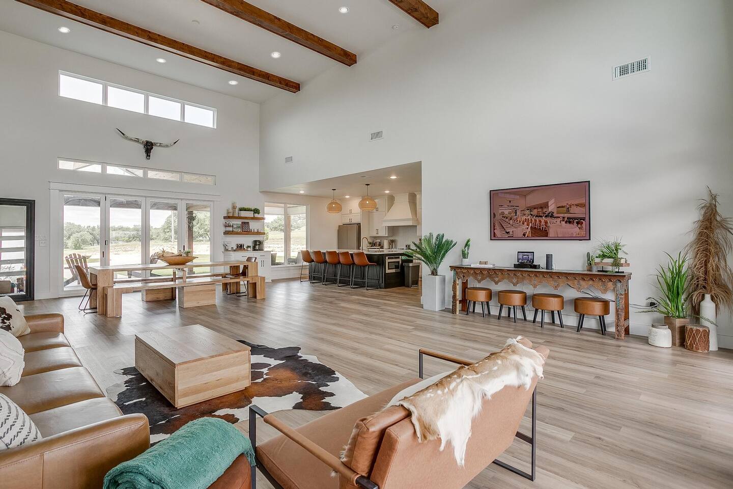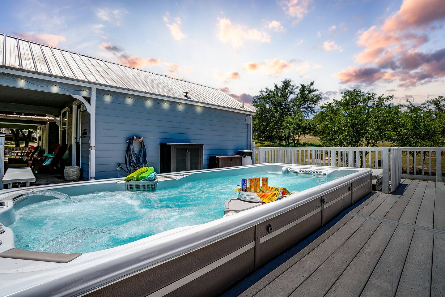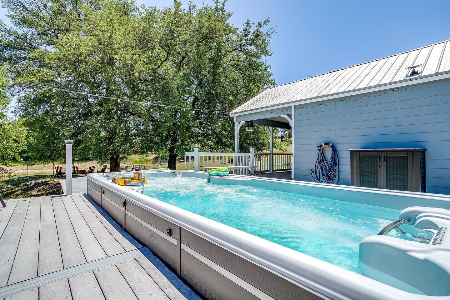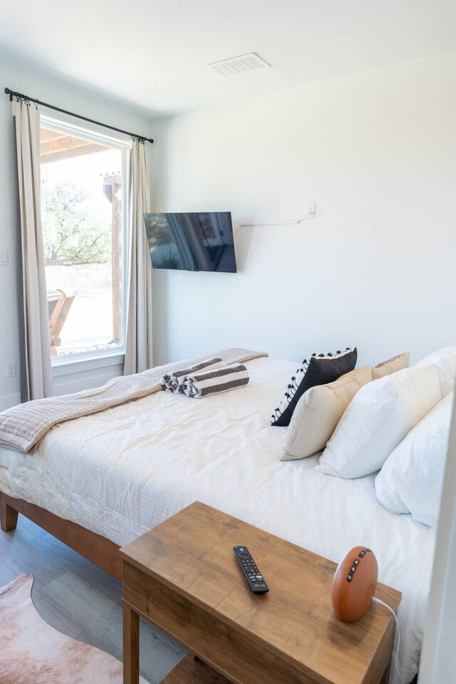 Swim Spa Temperature: The swim spa is heated from October through April then converted into a swimming pool from May through September. Swim Spa and Pool Maintenance Schedule: To maintain the highest standards of cleanliness and safety, the pool is professionally serviced on a regular schedule. Service typically occurs every Wednesday. AC Temperature Settings: To ensure consistent comfort and energy efficiency, the thermostats at Casa Blanca are set to operate within a preset cooling range of 69°F to 73°F. This range was recommended by our HVAC technician and aligns with the sleep preferences of most guests. If you’d like your room a little warmer, you’re welcome to turn the AC off. To cool it down again, simply switch it back on—the system will resume within the preset range. The auto mode cannot be set below 69°F or above 73°F. Pet Friendly: We are pet-friendly and welcome 3 well-behaved dogs for a non-refundable pet fee of $75 per pet. Please kindly refrain from allowing pets on the furniture during your stay. Failure to comply may result in an additional $250 cleaning fee. Wildlife: Experience the Beauty of Texas Wildlife on Our Peaceful Ranch! Here on the ranch we have deer and turkeys roam free. New Construction: Any newly constructed sleeping spaces on the property are not included in your reservation. These spaces may be made available for use on a case-by-case basis and will require an additional reservation fee if approved.