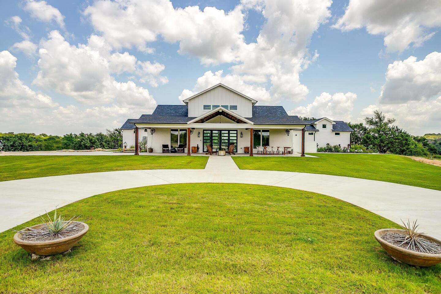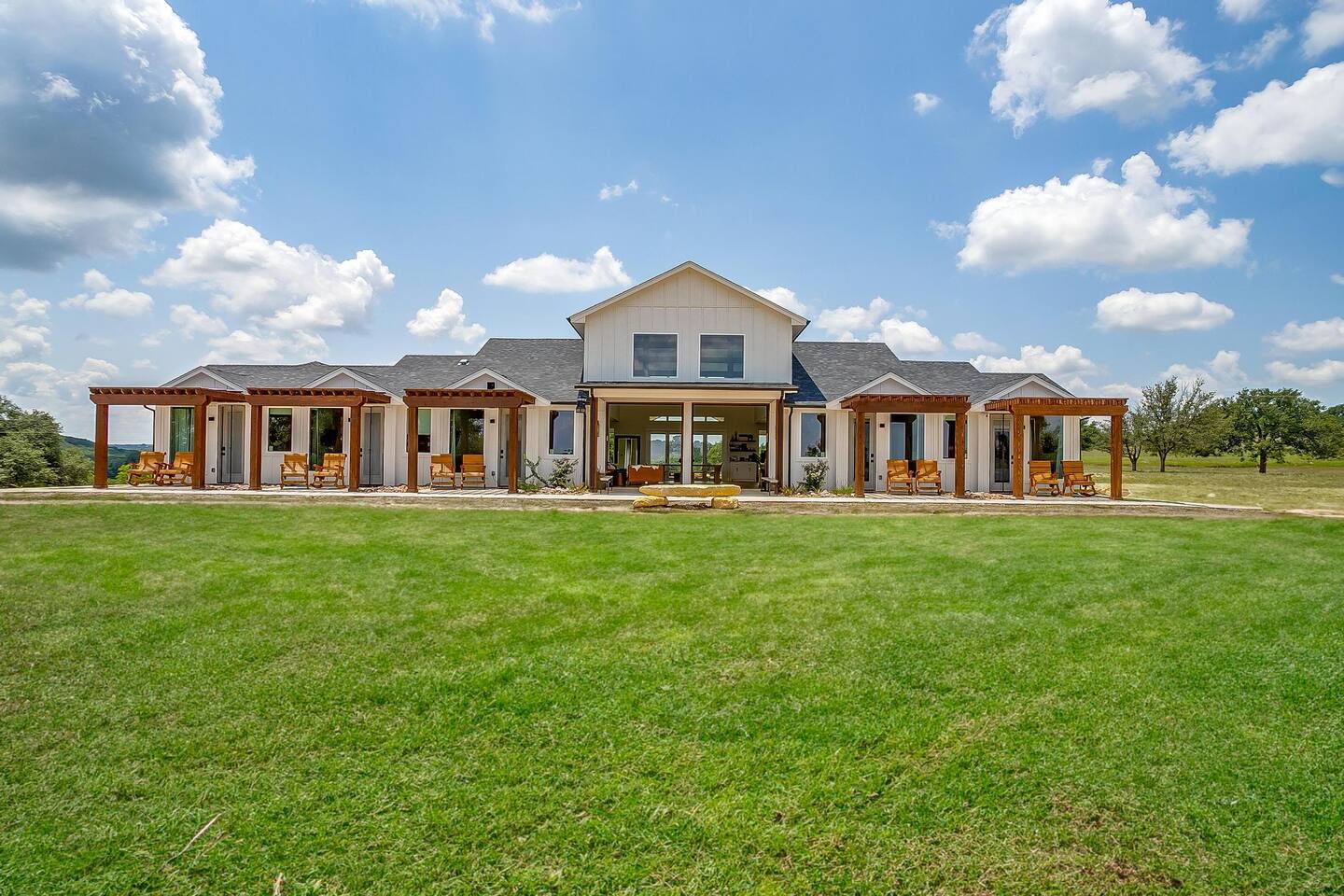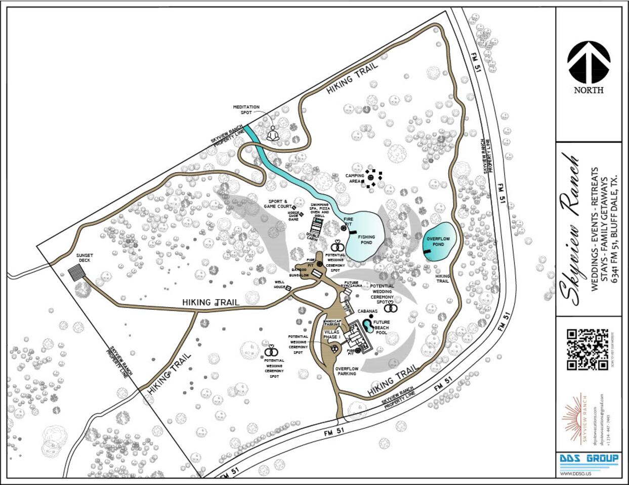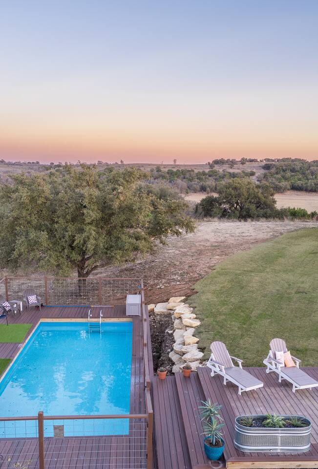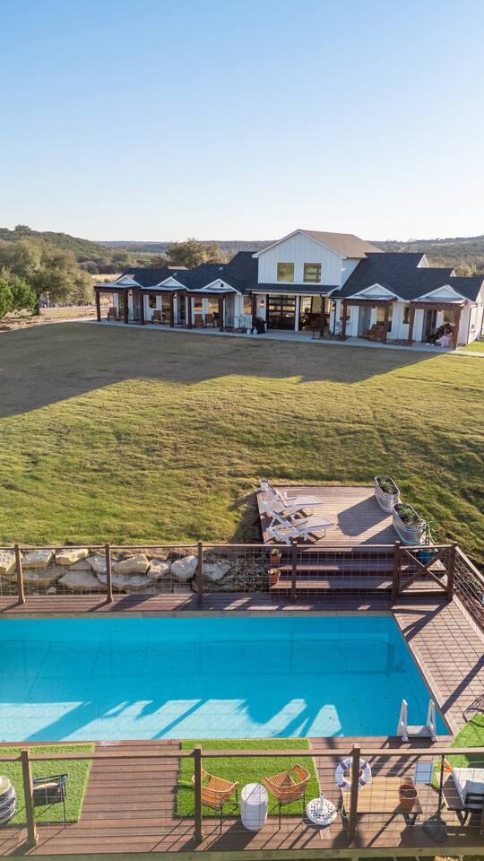 Discover your own 34-acre retreat at Skyview Ranch—tucked between Granbury and Glen Rose. Enjoy exclusive access to 5 private villas, 3 cozy cabins, a spacious Gathering Room, 32’ pool, hydro swim spa, stocked fishing pond, hiking trails, fire pits, game arena, outdoor dining areas, and more. Skyview Ranch can comfortably accommodate 30 guests so it is perfect for group getaways, family retreats, or celebrations with plenty of space to relax, connect, and explore.