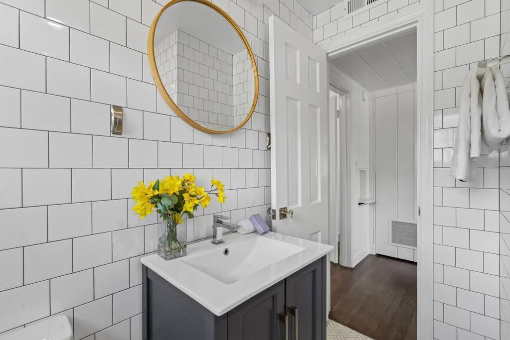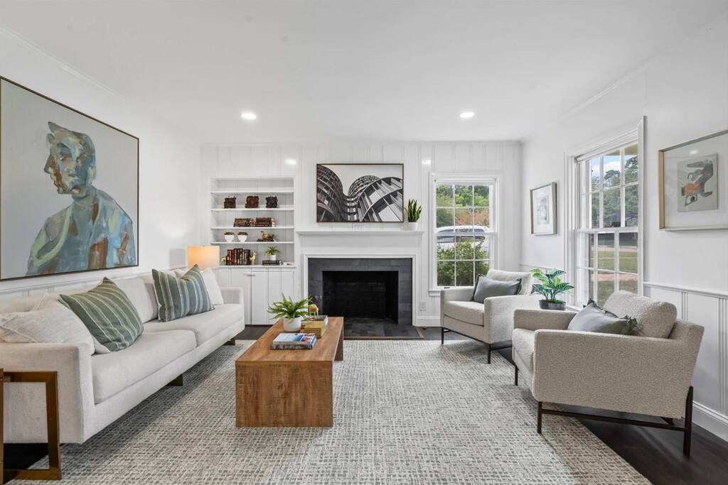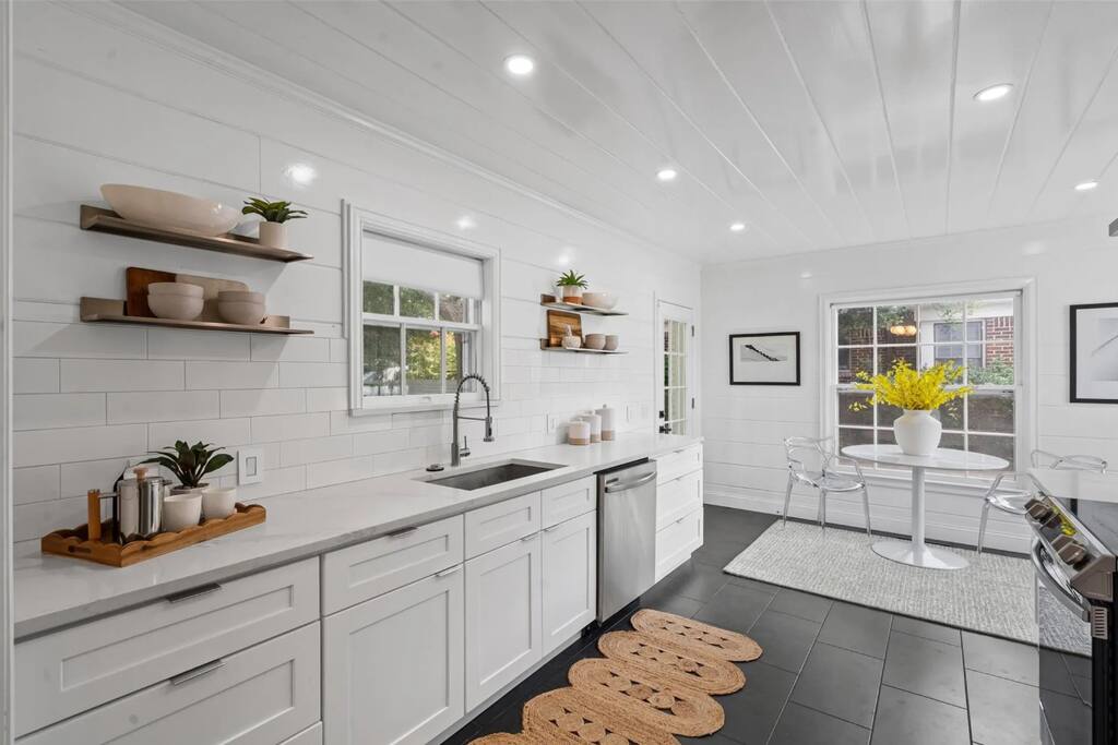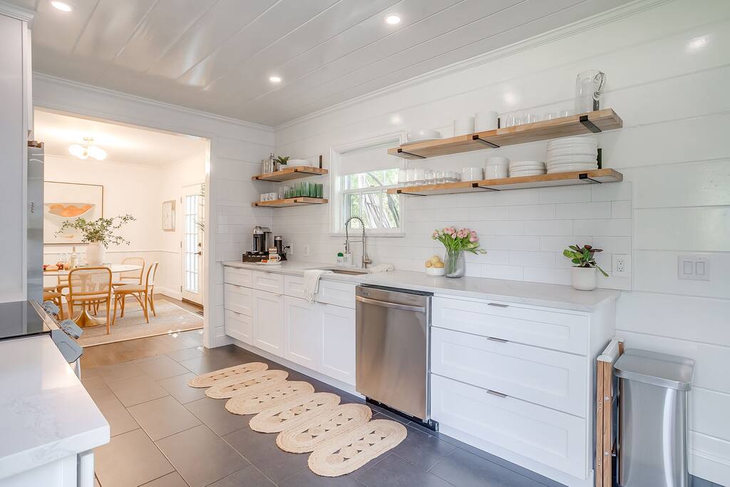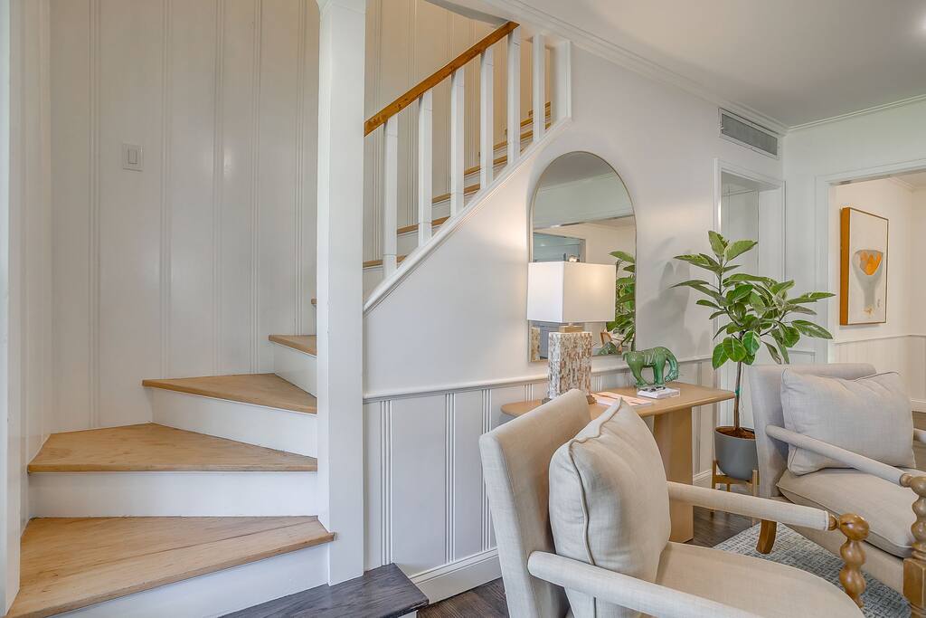 Step inside to find an inviting open-concept layout, complete with refinished hardwood floors, fresh interior paint, and abundant natural light. The updated kitchen features quartz countertops, stainless steel appliances, and custom cabinetry—ideal for home-cooked meals. The spacious living area flows seamlessly into the dining room, creating the perfect space for gatherings. The primary suite includes a private en-suite bath, while two additional bedrooms share a modern, fully updated bathroom. The backyard offers a peaceful retreat with a covered patio and lush lawn.